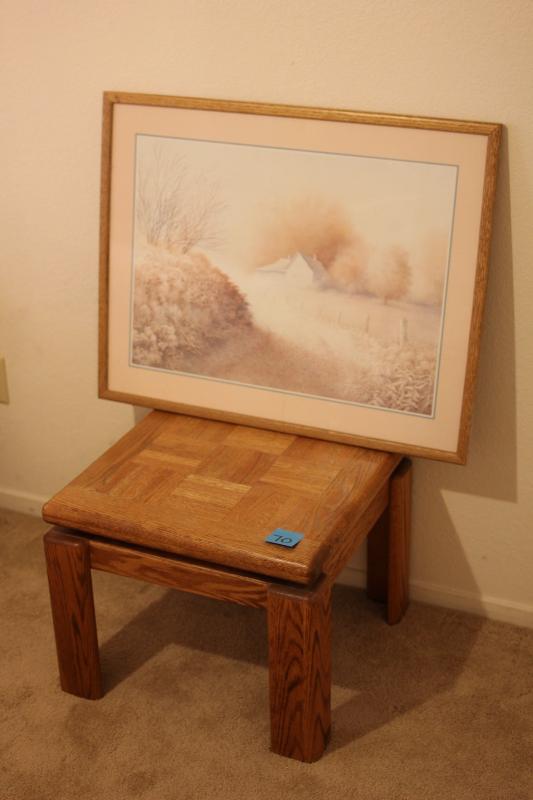 Great decor pieces! Table is solid wood - great for chalk paint or keep the way it is. Print is beautiful soft colors.