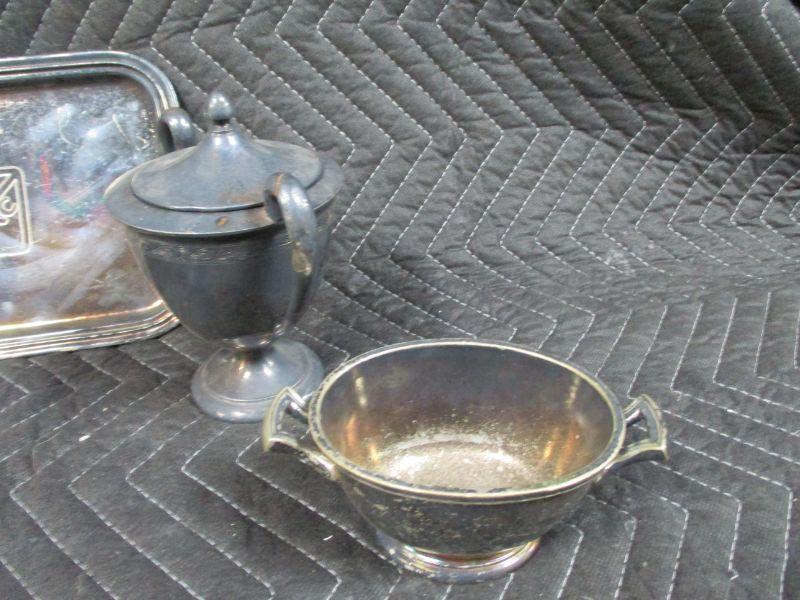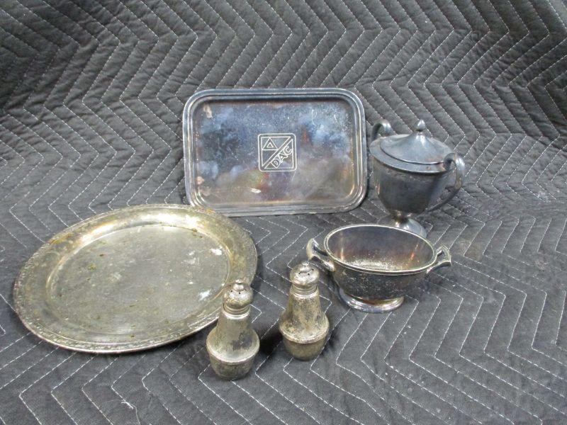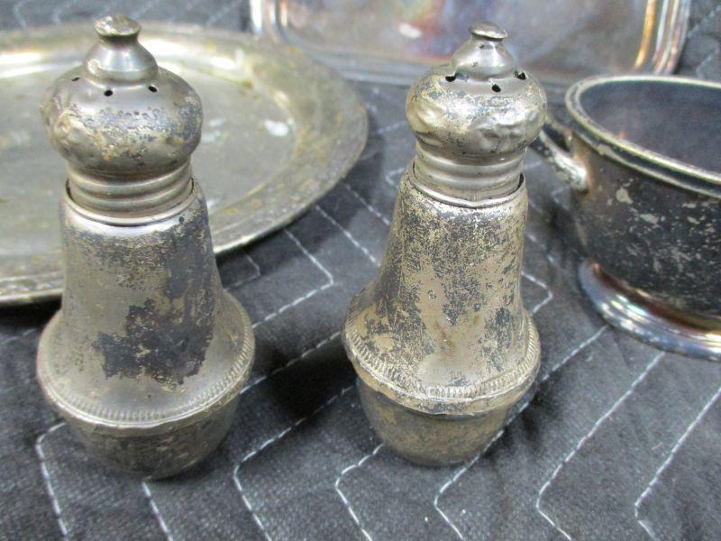 Silver Plated Serving Items & Sterling Weighted Salt & Pepper Shakers