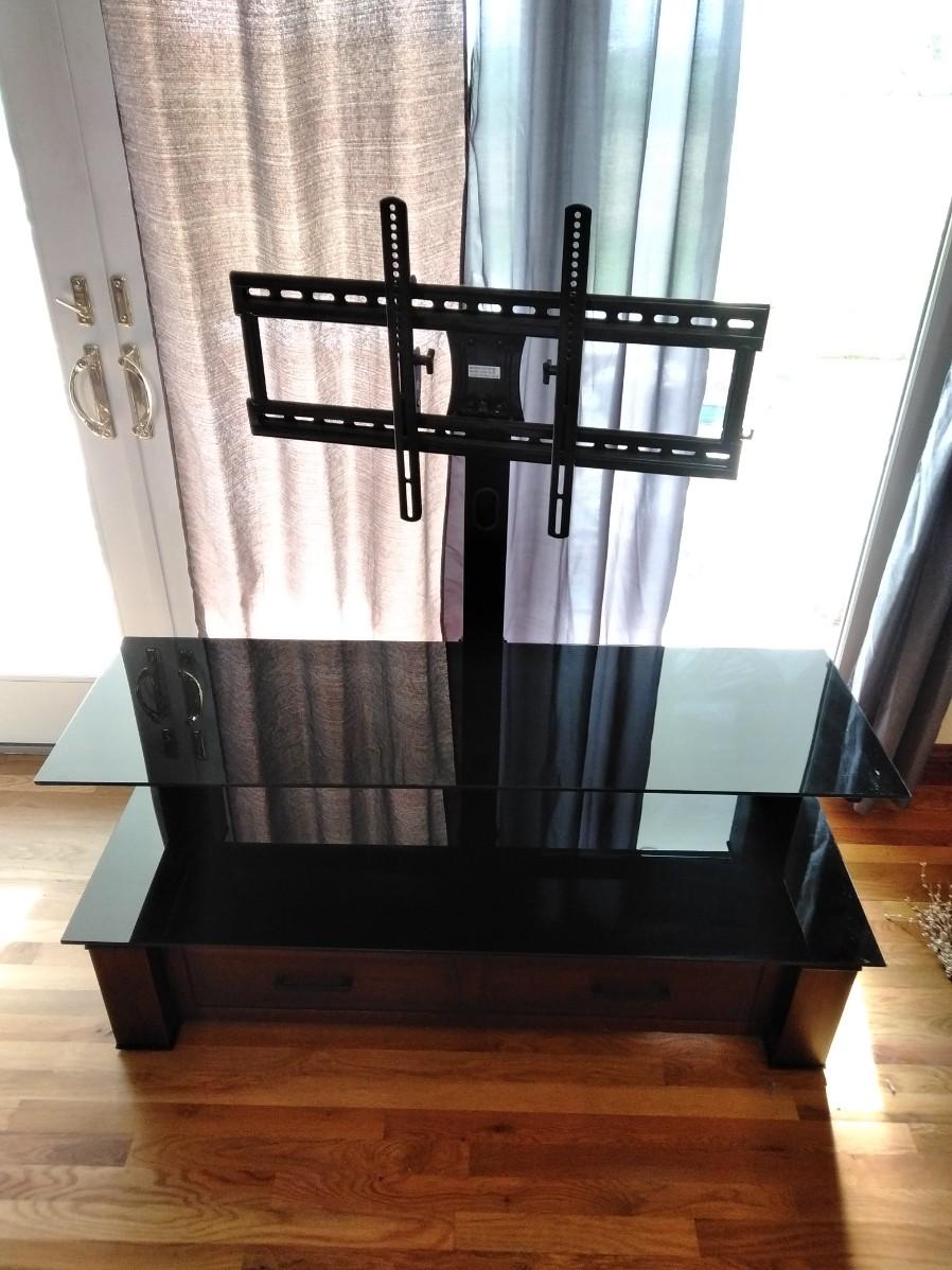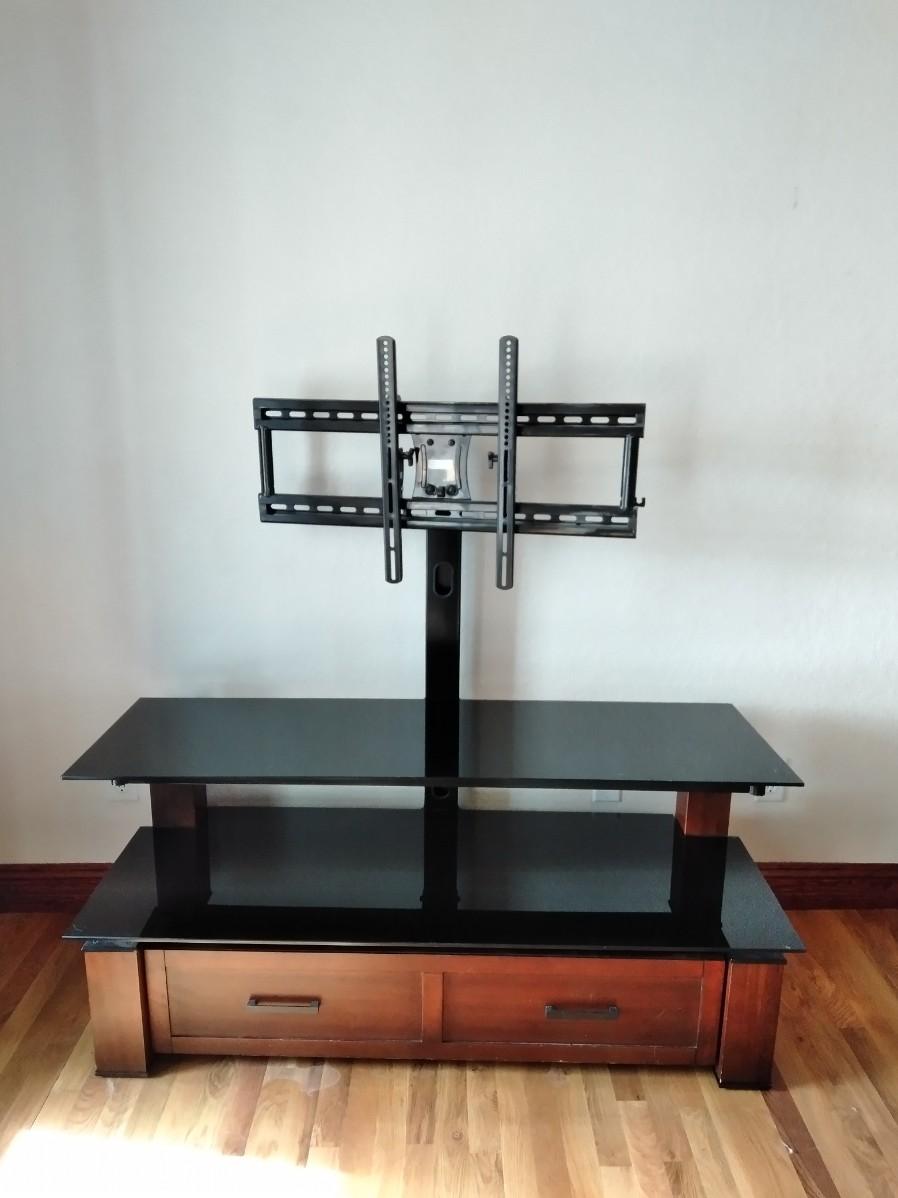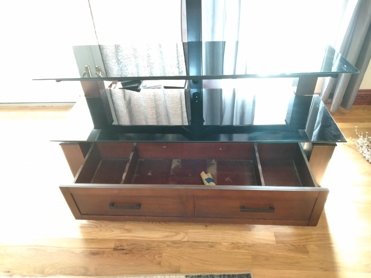 TELEVISION STAND WITH LONG DRAWER 24" X 54" X 17" (HAD A 65" FLAT SCREEN TV SITTING ON IT)