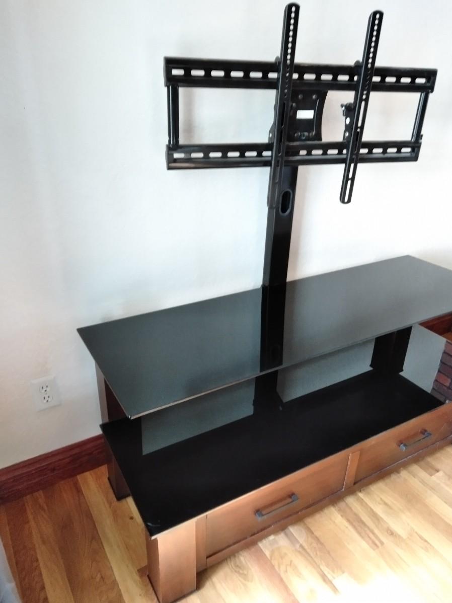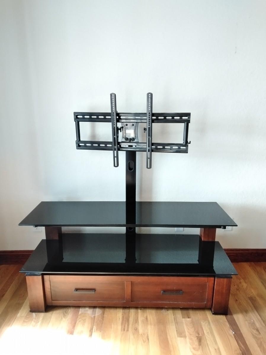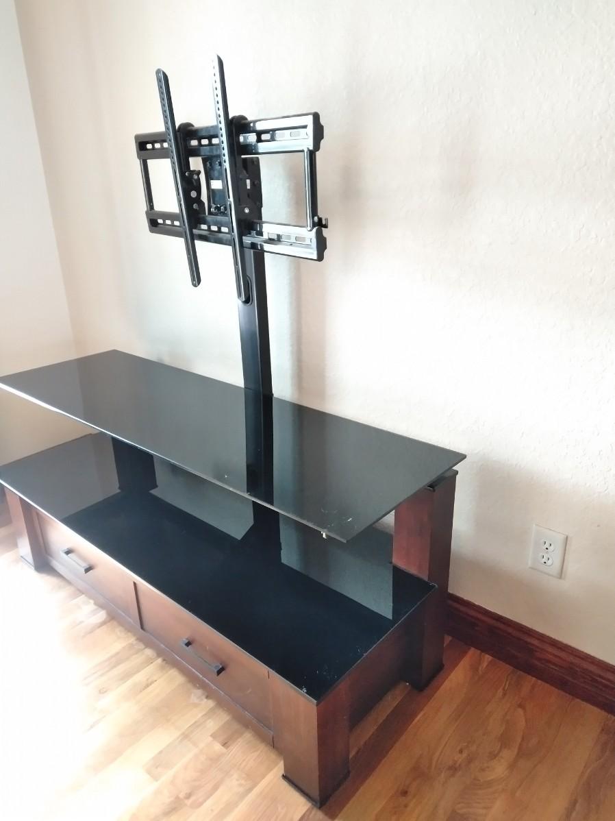TELEVISION STAND WITH LONG DRAWER 24" X 54" X 17" (HAD A 65" FLAT SCREEN TV SITTING ON IT)