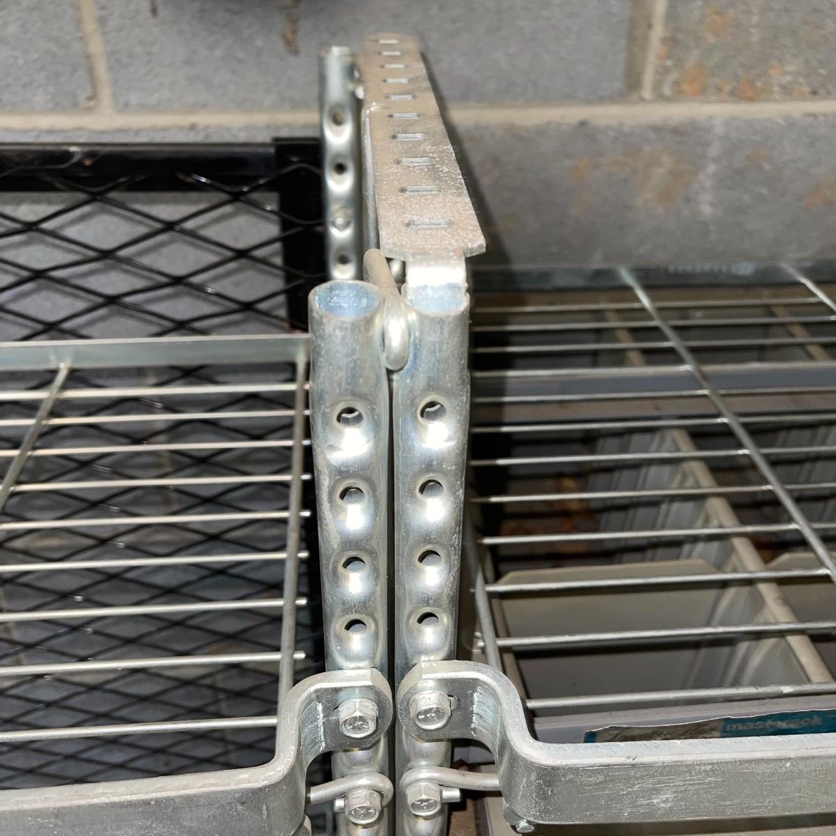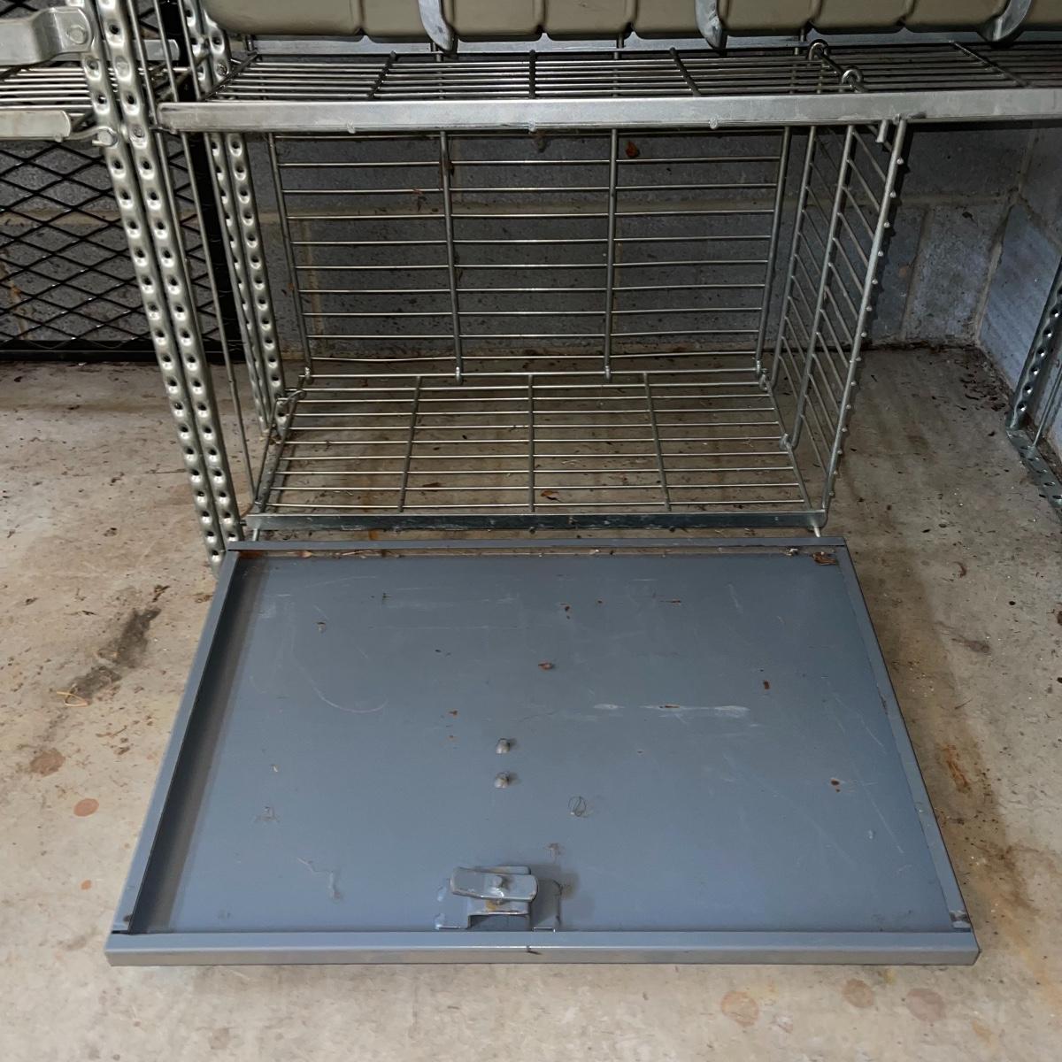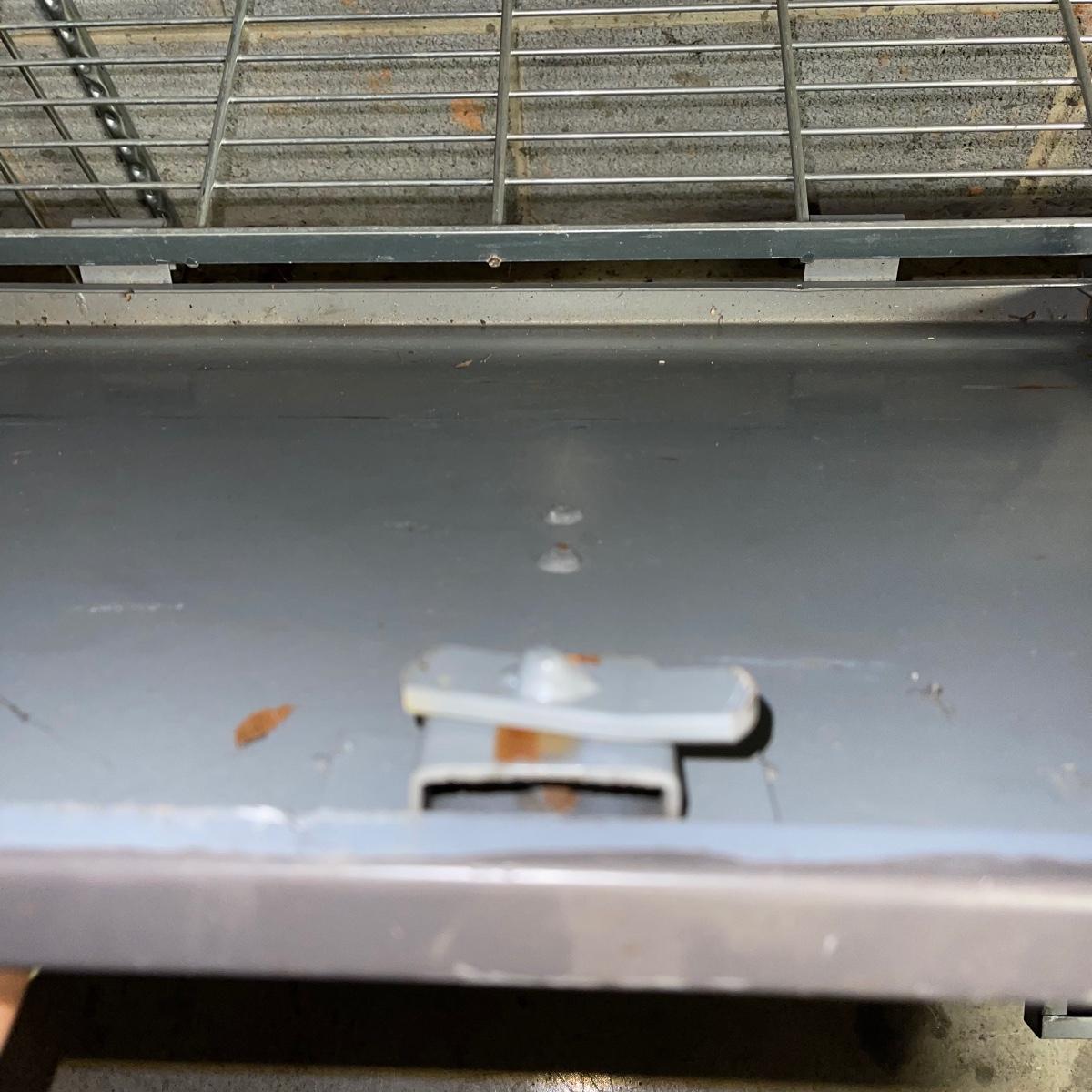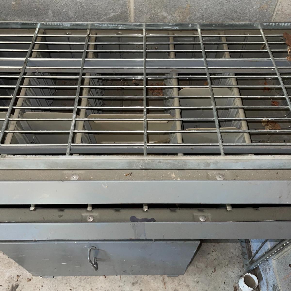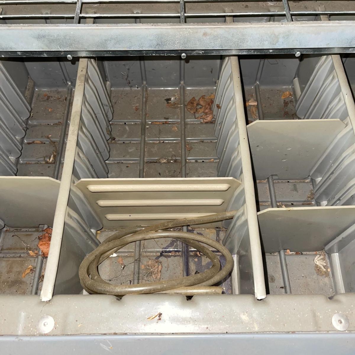 Looking for more storage shelves? Look no further. These metal shelving units include a 49” wide x 12.5” deep x 75.5” tall five shelf unit with two metal cabinet doors. The next units are 37” wide x 44.5” tall, the unit with drawers is 21” deep due to the drawers and the other is 13.5” deep. These two shelves are connected and they appear to be welded together. One of the two has two large plastic drawers with various compartments and a metal cabinet door, the other just has two metal shelves. All three shelving units are slightly worn from use as garage storage but with a good dusting can be cleaned up nicely.