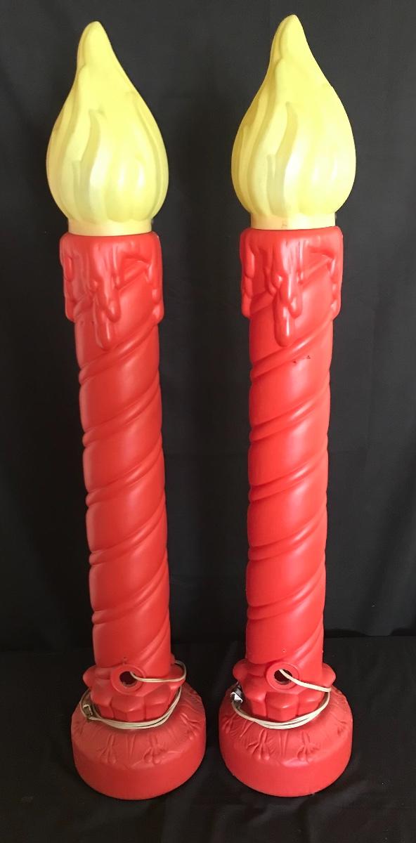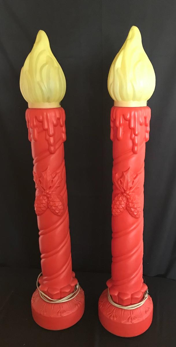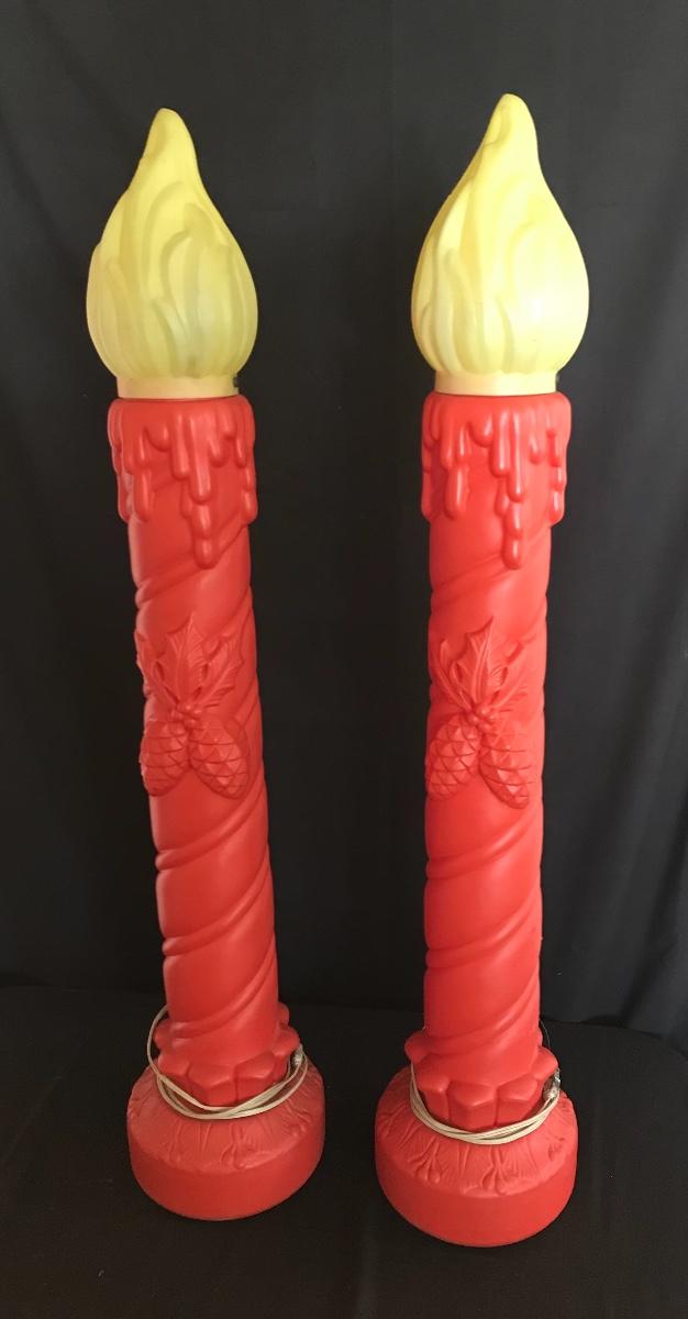 Pair of Vintage Christmas Blow Mold Candle Decorations - Base is 8 inches in diameter and 38 inches tall. Untested. The pictures show condition, measurements if taken, and what is included in the lot. Due to the large amount that we photograph and the time frame, we are not always able to take measurements. All items unless noted, are pre-owned and have been used. If you purchased furniture, you must bring help. We do not allow one person to carry large furniture out on their own. Bring help, tools and a truck for the safety of our client’s homes, and your personal safety. Company policy. Thank you.