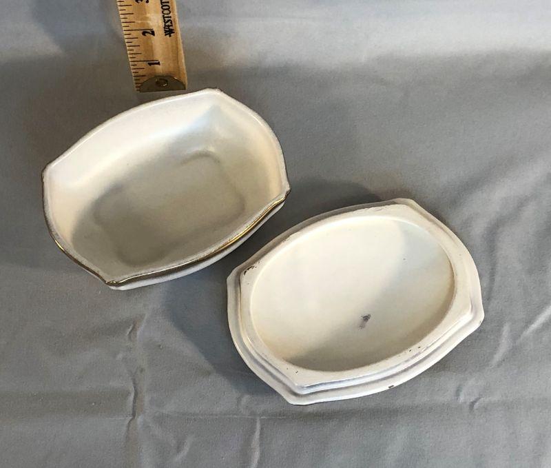 This box is in excellent condition and was made between 1940s-1970s. It is just over 5" long, 4" wide, and about 1.5" in height.