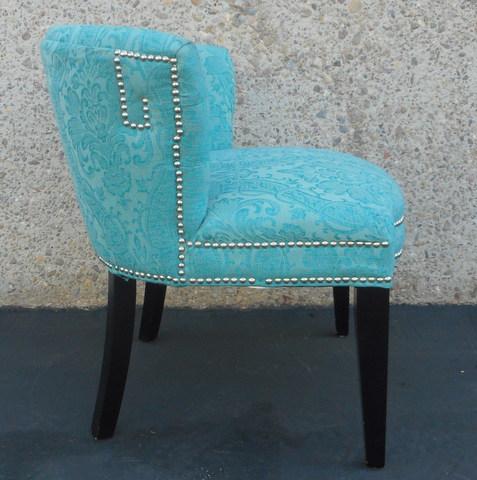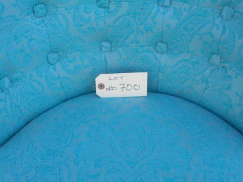 Lot 700 - Blue Brocade Low Back Chair w/ Nailhead Trim