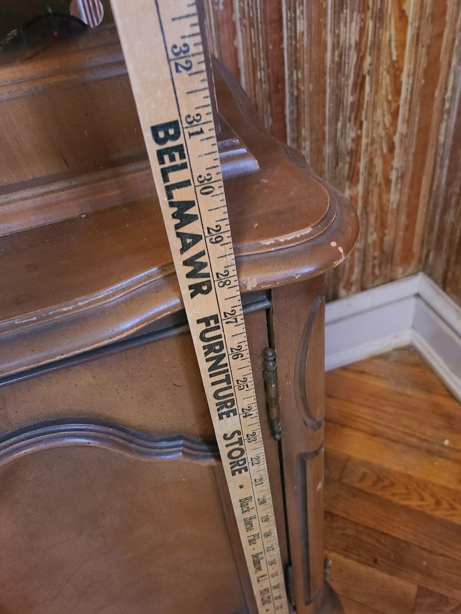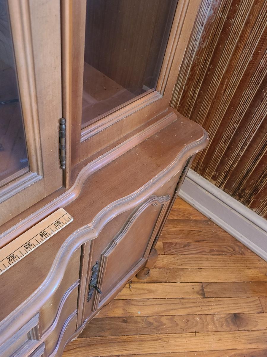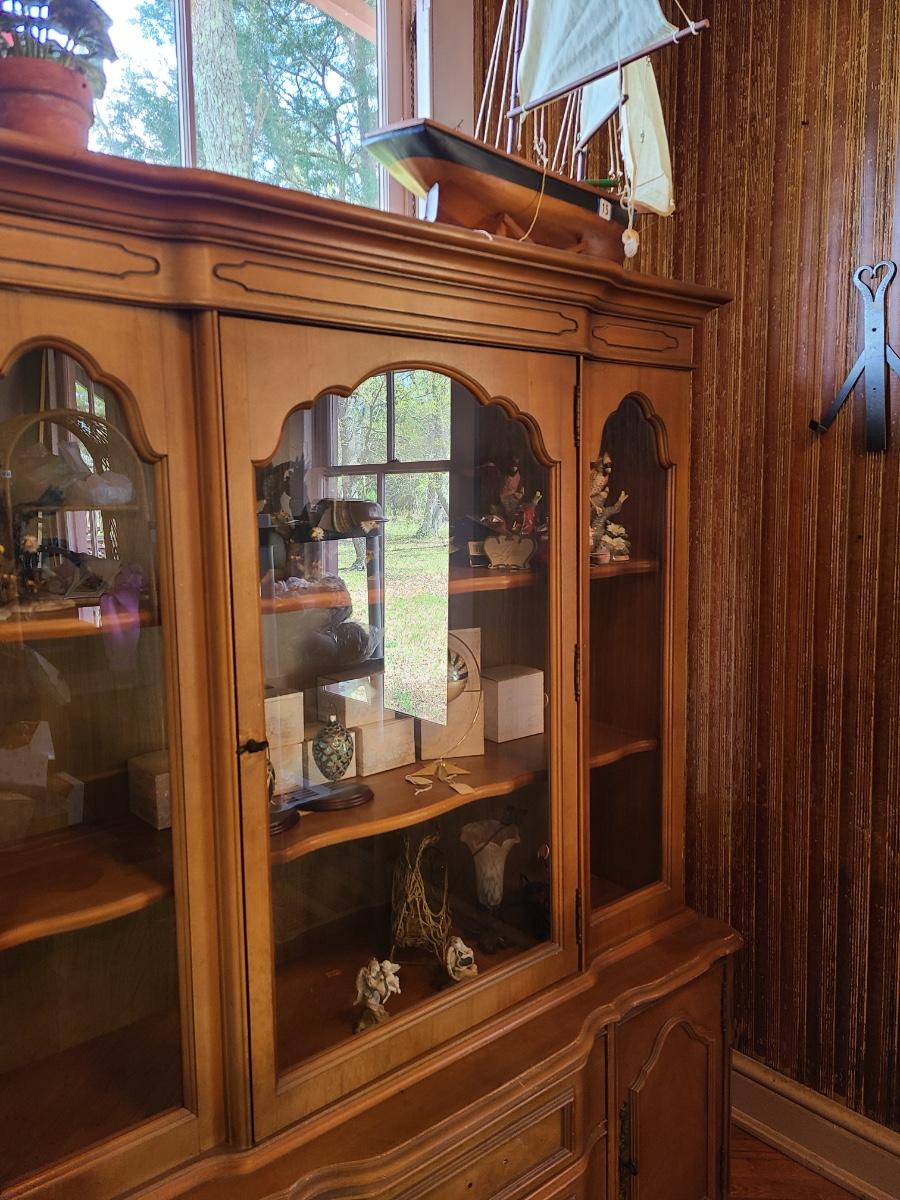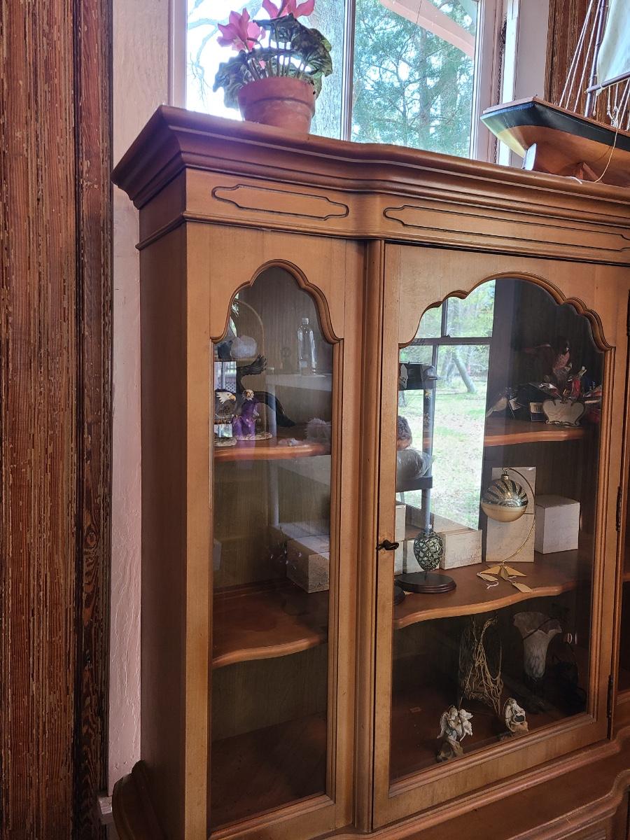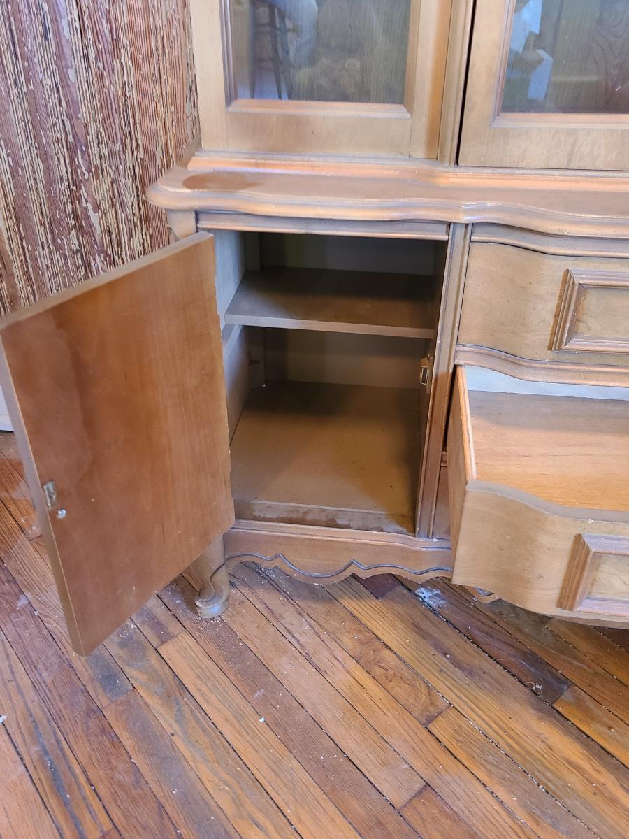 This is for the cabinet only. Solid wood, shows wear due to age. Perfect for home or store. Needs dusting. Is one solid piece. It was used in store for displaying merchandise. Please see all pictures as they are the best representation of the items. The pictures show condition, measurements if taken, and what is included in the lot. Due to the large amount that we photograph and the time frame, we are not always able to take measurements. All items unless noted, are pre-owned and have been used. If you purchased furniture, you must bring help. We do not allow one person to carry large furniture out on their own. Bring help, tools and a truck for the safety of our client’s homes, and your personal safety. Any damages that result to the property including walls, and floors due to moving of the furniture will be charged to the buyer. Company policy. Thank you.