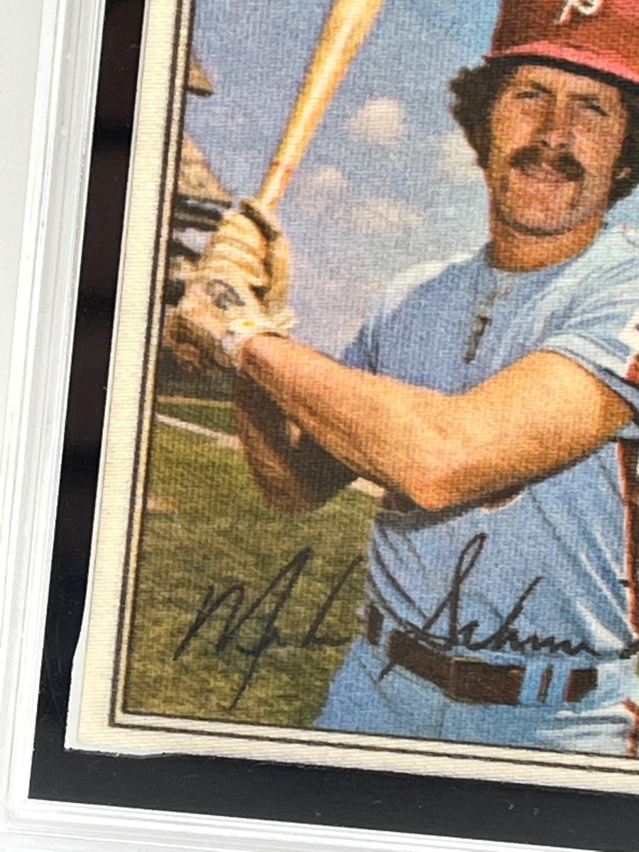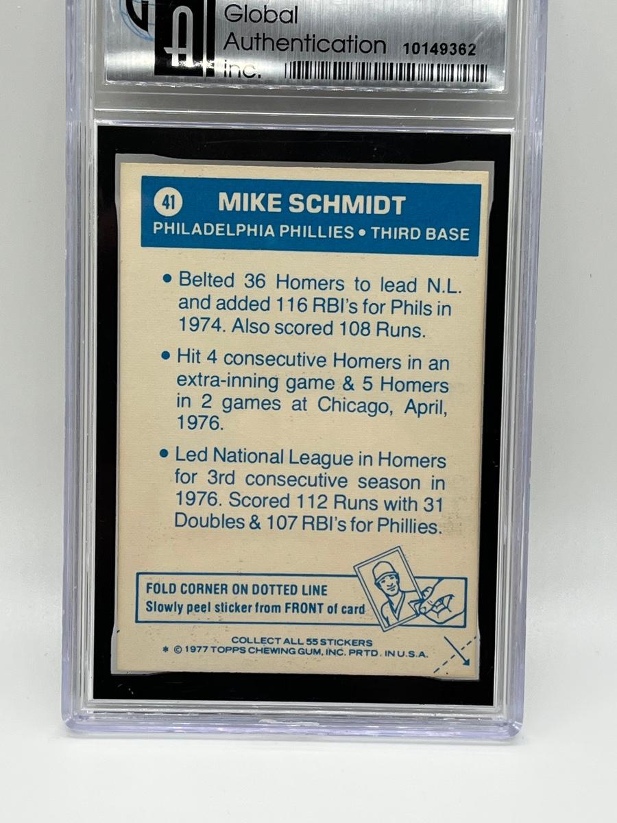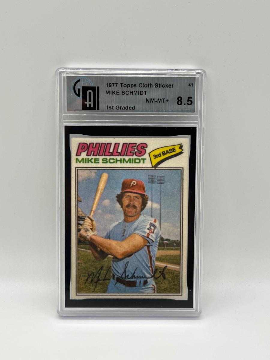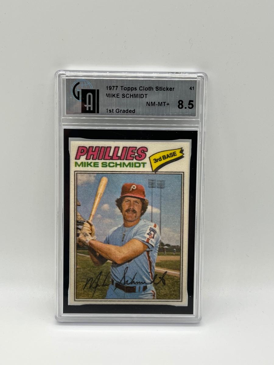 LOT 5: Mike Schmidt Graded 8.5 1977 Topps Cloth Sticker - Global Authentication