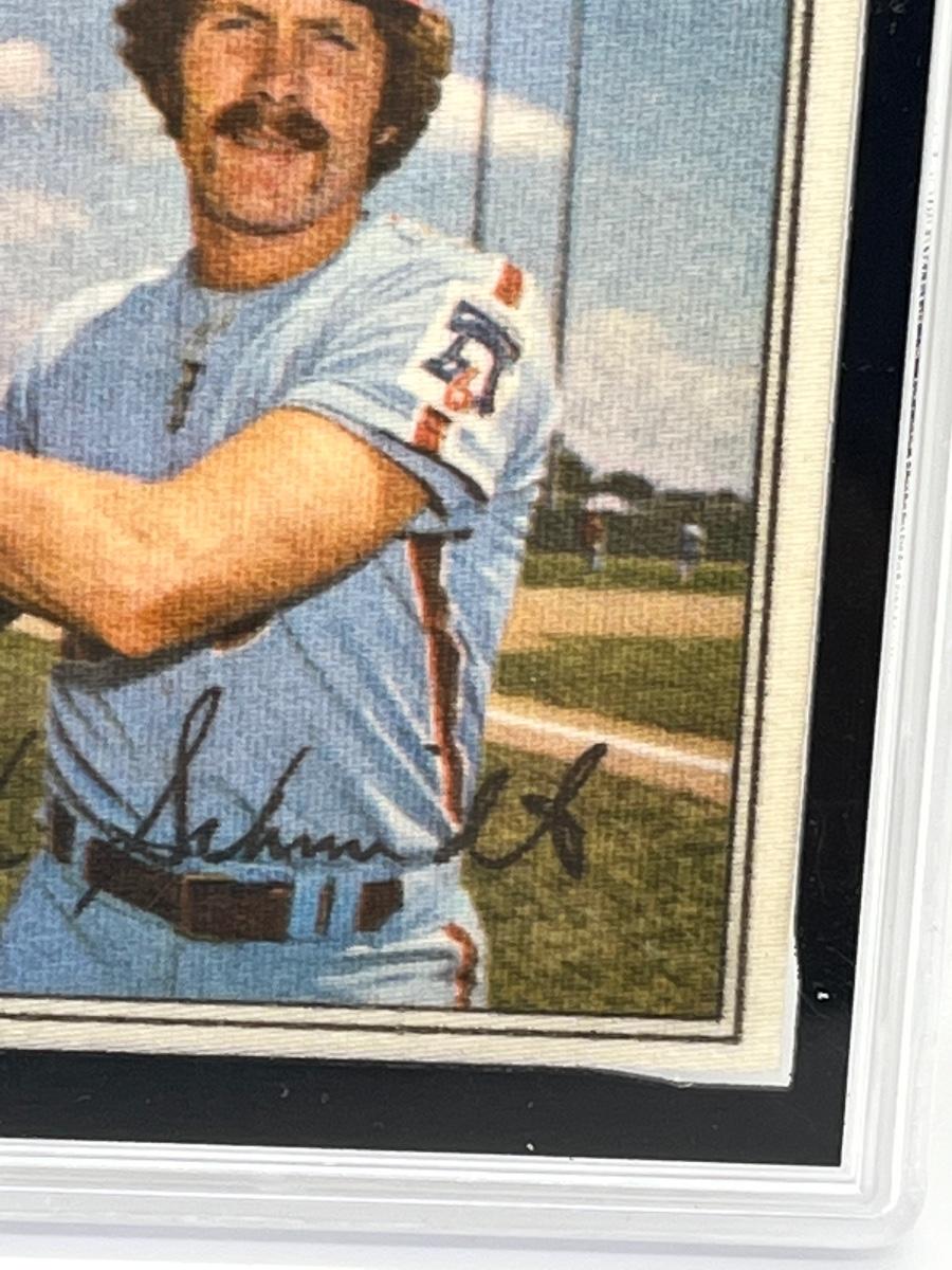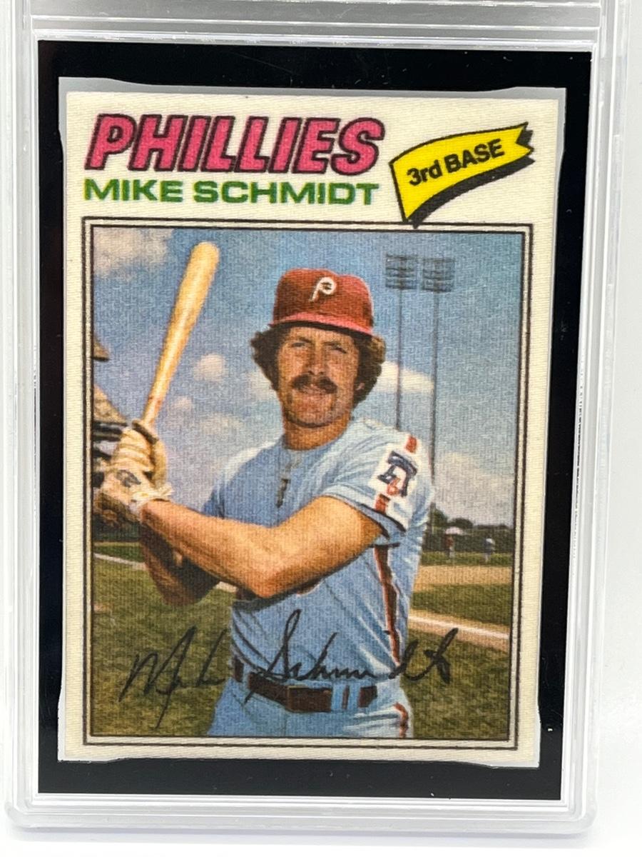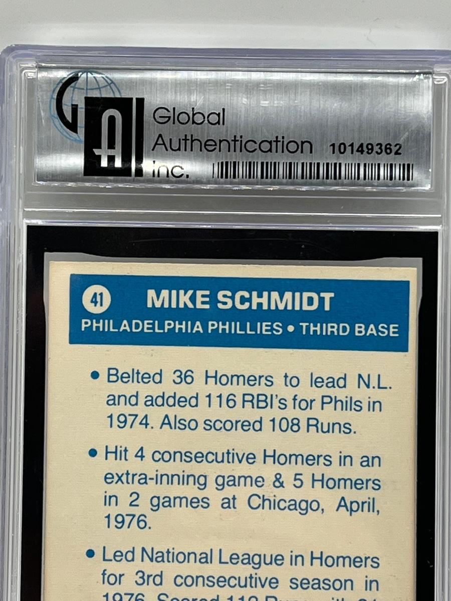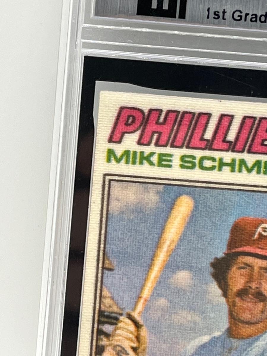 LOT 5: Mike Schmidt Graded 8.5 1977 Topps Cloth Sticker - Global Authentication