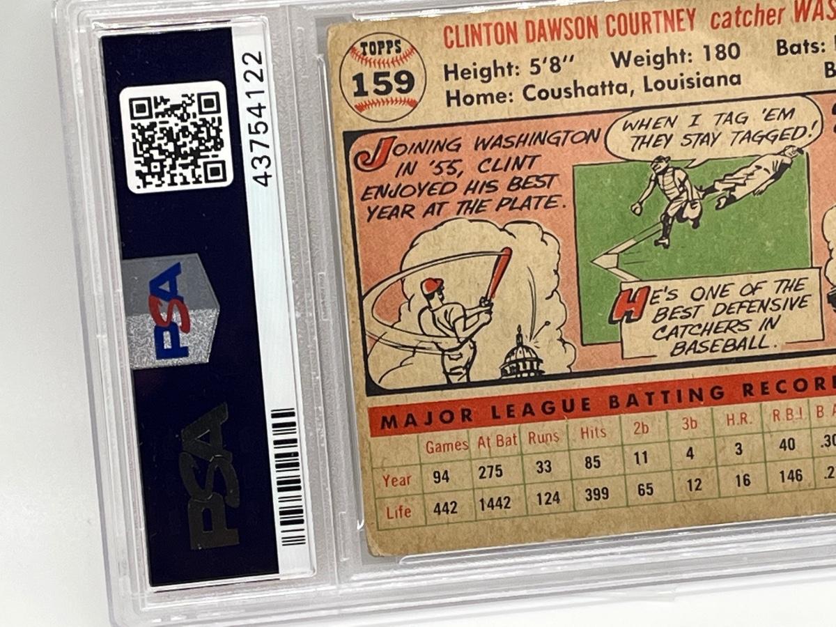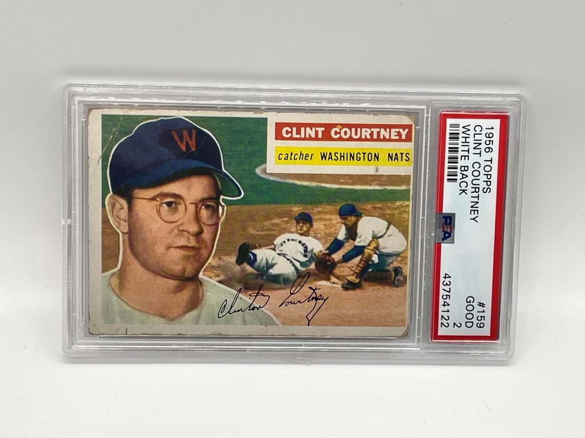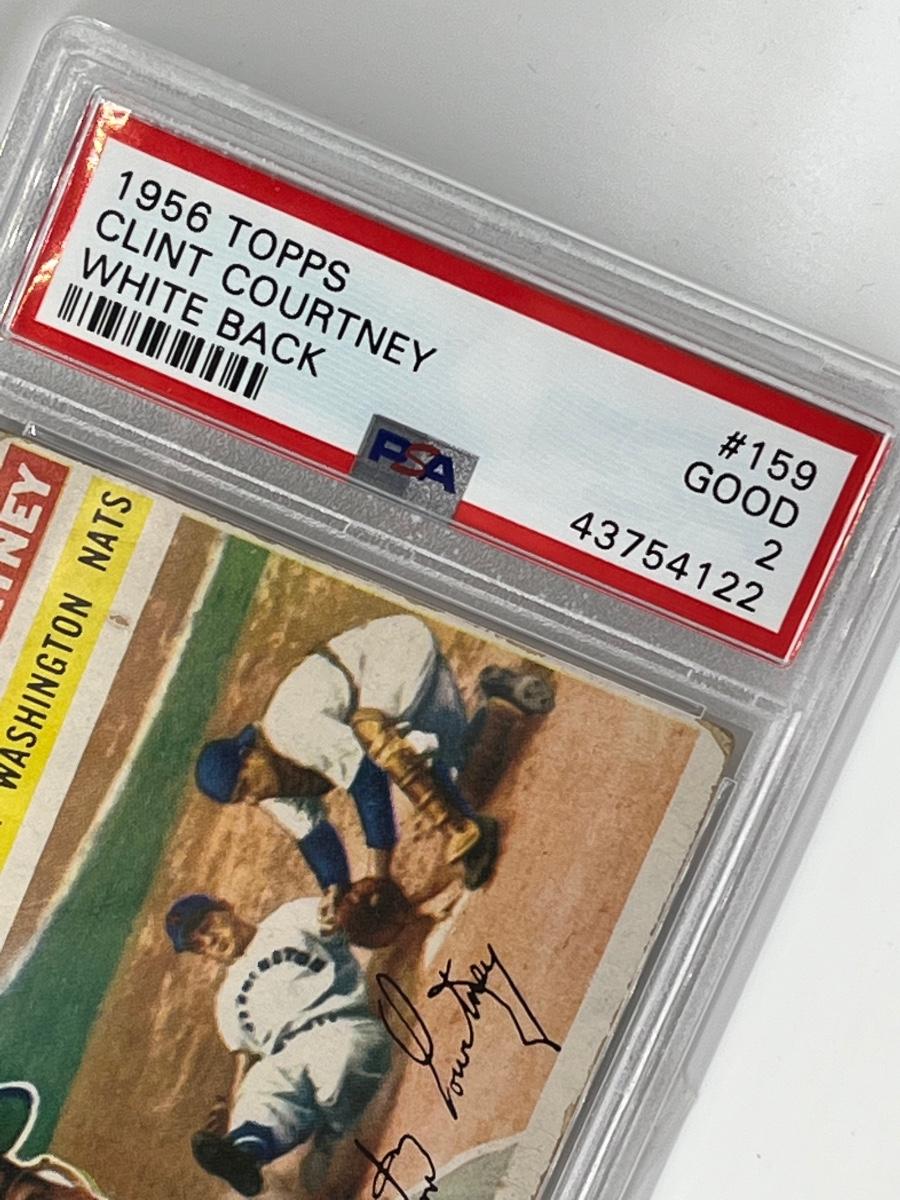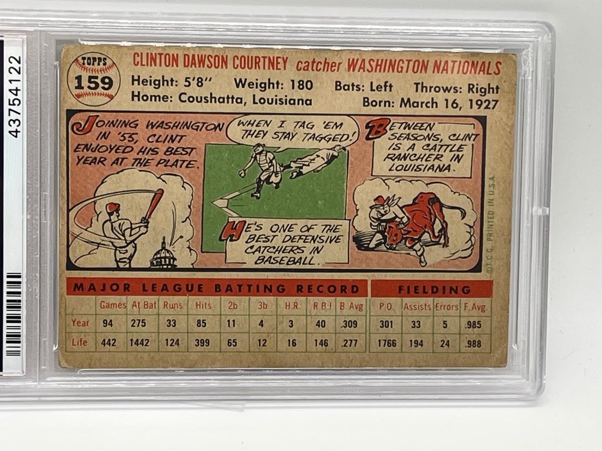 1956 Topps Clint Courtney #159 White Back PSA Graded 2 - Good Baseball Card. Please see all pictures as they are the best representation of the items. The pictures show condition, measurements if taken, and what is included in the lot. Due to the large amount that we photograph and the time frame, we are not always able to take measurements. All items unless noted, are pre-owned and have been used. If you purchased furniture, you must bring help. We do not allow one person to carry large furniture out on their own. Bring help, tools and a truck for the safety of our client’s homes, and your personal safety. Any damages that result to the property including walls, and floors due to moving of the furniture will be charged to the buyer. Company policy. Thank you.