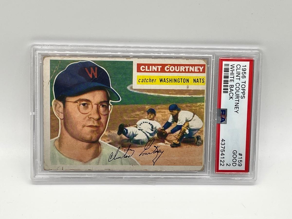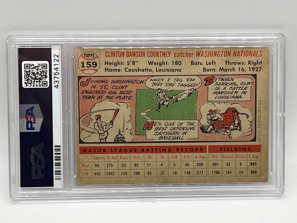 LOT 9: 1956 Topps Clint Courtney #159 White Back PSA Graded 2 - Good Baseball Card