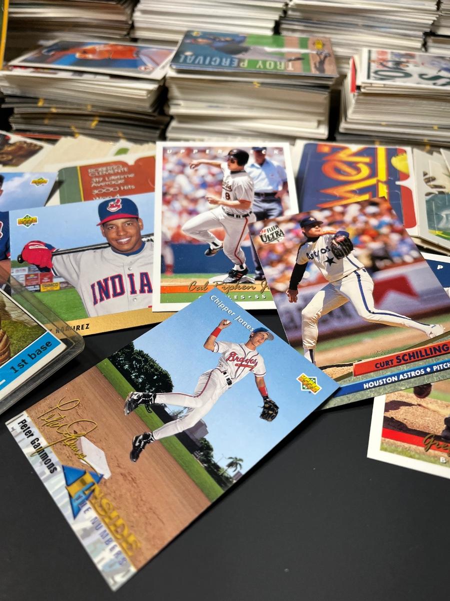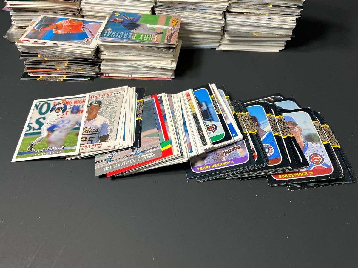 Big Lot of Assorted Baseball Cards - Mostly 80s, 90s - Stars & Commons - Ripken, Ryan & More. Various years, players, makers and conditions, Some cards are sticking together. Please see all pictures as they are the best representation of the items. The pictures show condition, measurements if taken, and what is included in the lot. Due to the large amount that we photograph and the time frame, we are not always able to take measurements. All items unless noted, are pre-owned and have been used. If you purchased furniture, you must bring help. We do not allow one person to carry large furniture out on their own. Bring help, tools and a truck for the safety of our client’s homes, and your personal safety. Any damages that result to the property including walls, and floors due to moving of the furniture will be charged to the buyer. Company policy. Thank you.