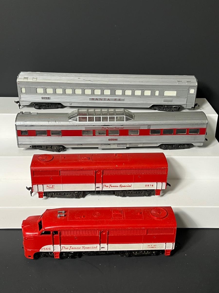HO Scale Lionel Trains - Texas Special and Santa Fe. Please see all pictures as they are the best representation of the items. The pictures show condition, measurements if taken, and what is included in the lot. Due to the large amount that we photograph and the time frame, we are not always able to take measurements. All items unless noted, are pre-owned and have been used. If you purchased furniture, you must bring help. We do not allow one person to carry large furniture out on their own. Bring help, tools and a truck for the safety of our client’s homes, and your personal safety. Any damages that result to the property including walls, and floors due to moving of the furniture will be charged to the buyer. Company policy. Thank you.