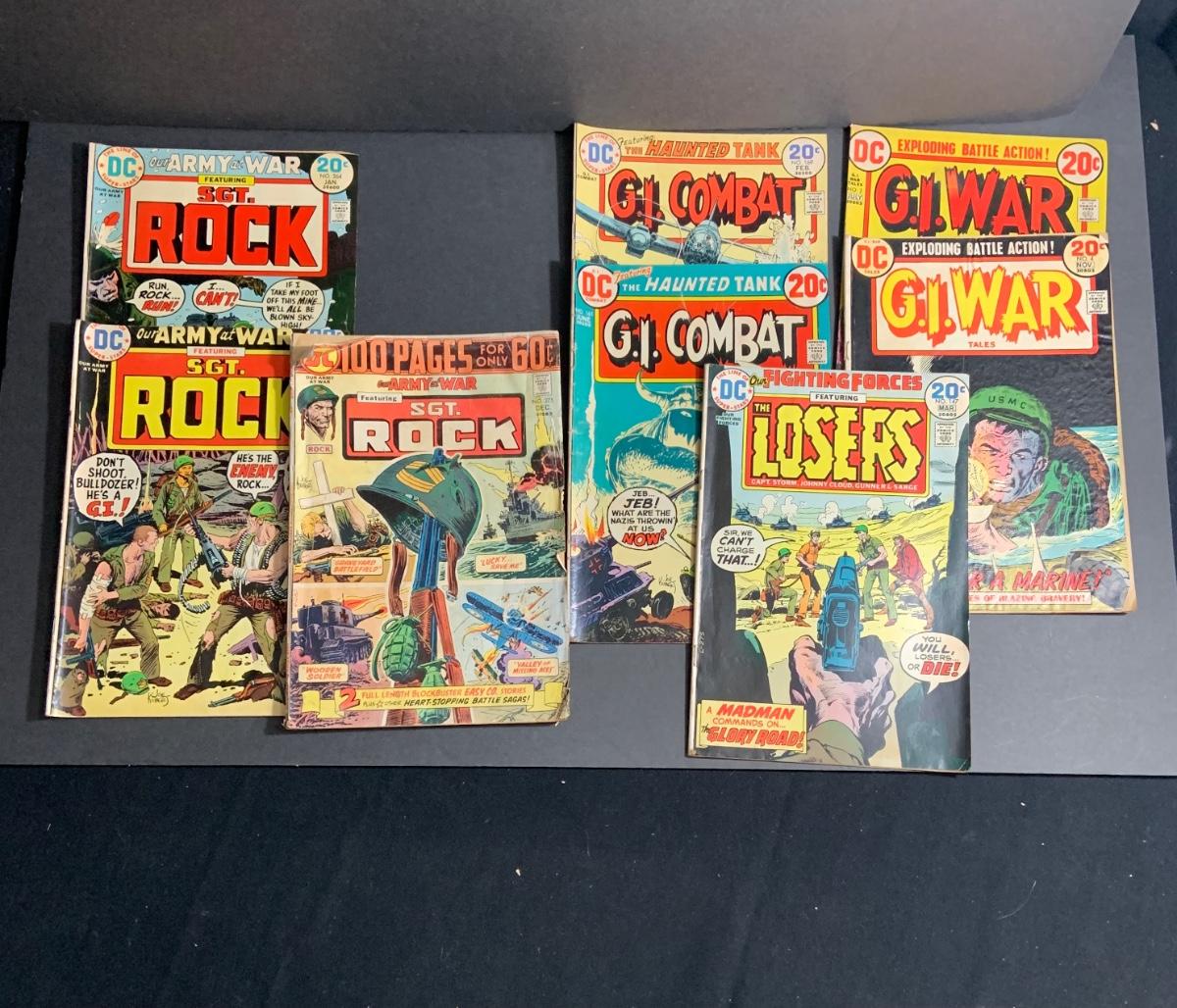 LOT:58: Lot of 8 DC Comic Books - (3) Sgt Rock; (2) G I Combat; (2) GI Wars; and Fighting Forces Losers.
