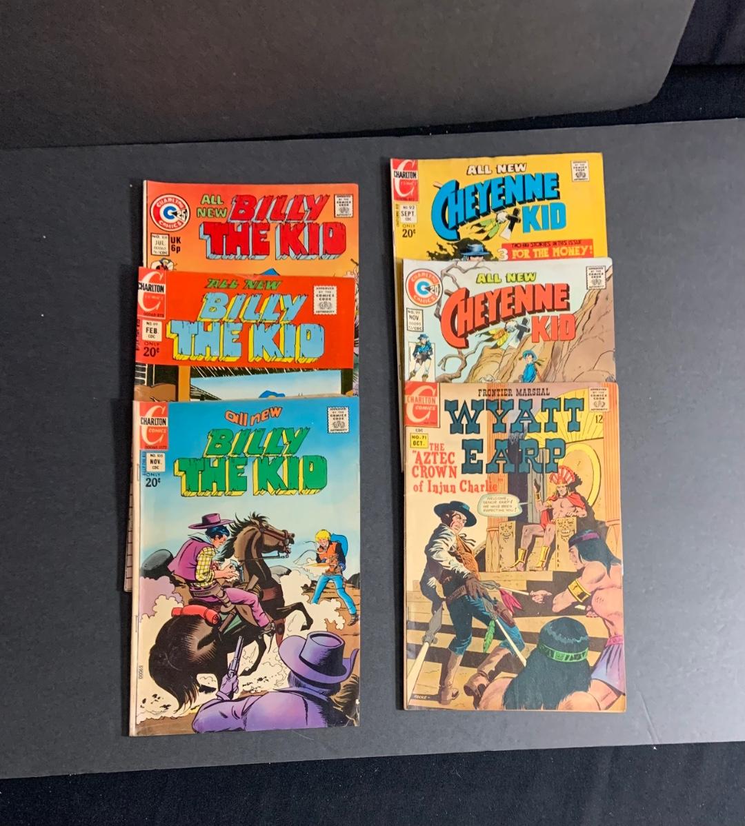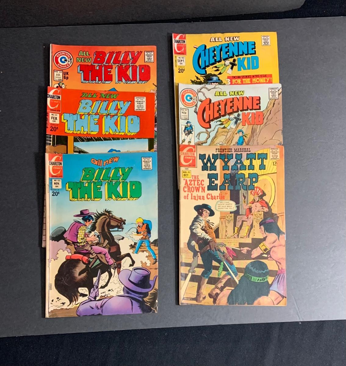 LOT:80: Lot of 6 Charlton Comic Books - (3) Billy the Kid; (2) Cheyenne Kid; Wyatt Earp