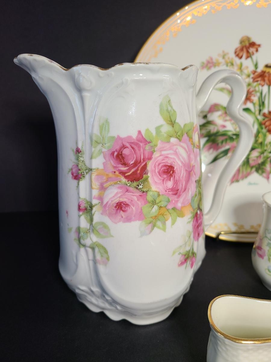 Lot 102: Boehm Bouquet Plate, Royal Copenhagen Trinket Dish, and Rose Pitcher Set