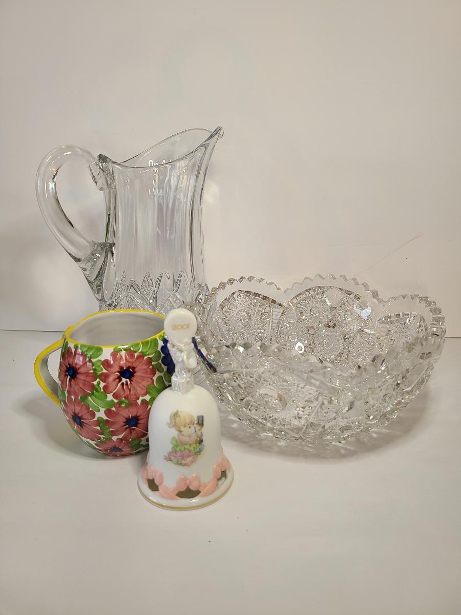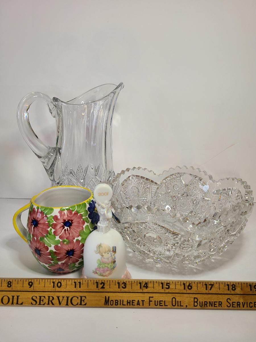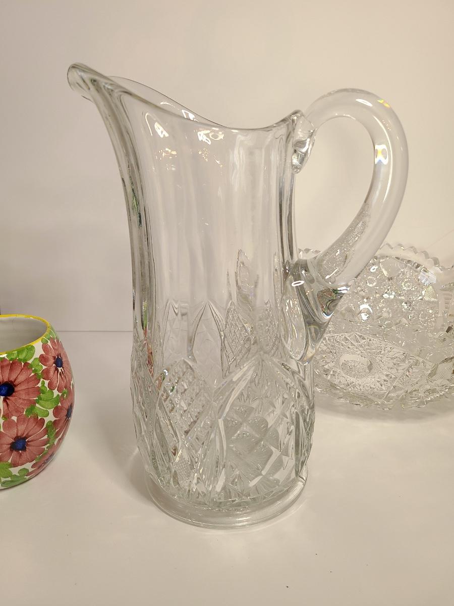 Lot 136: Crystal Cut Bowl, Glass Pitcher and More (As-Is)
