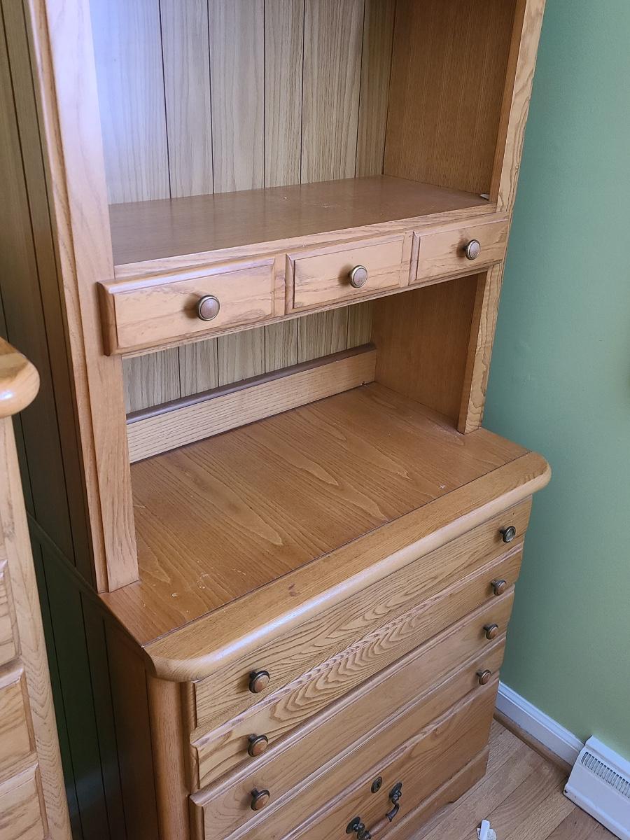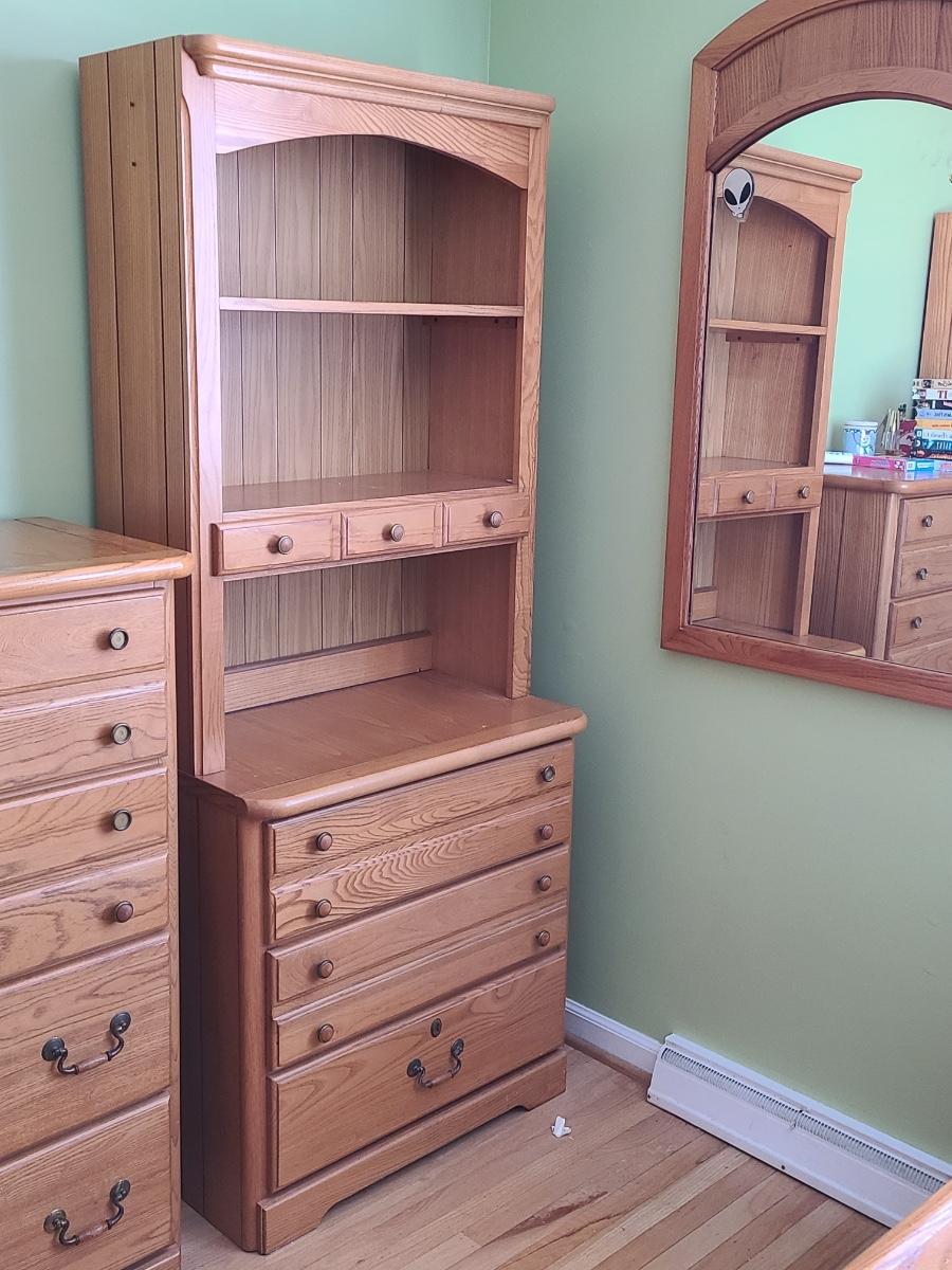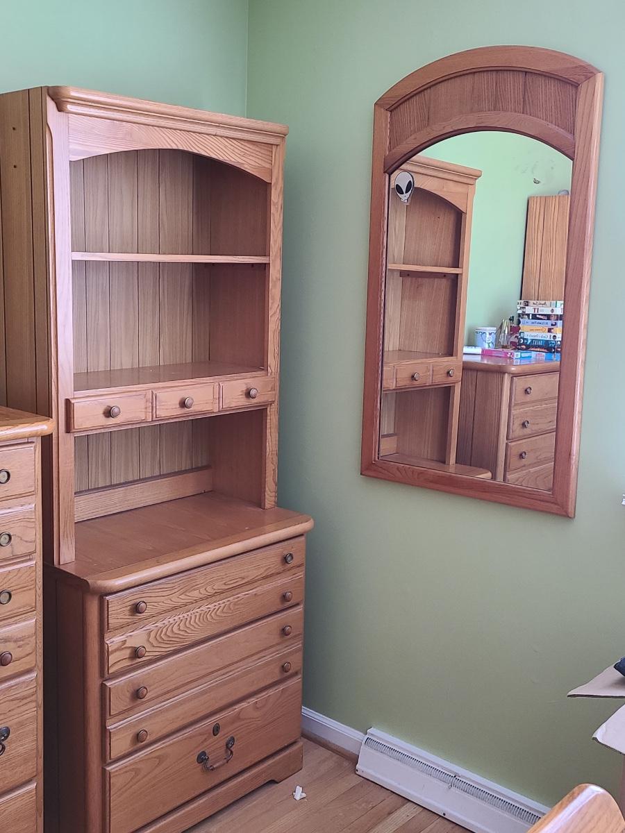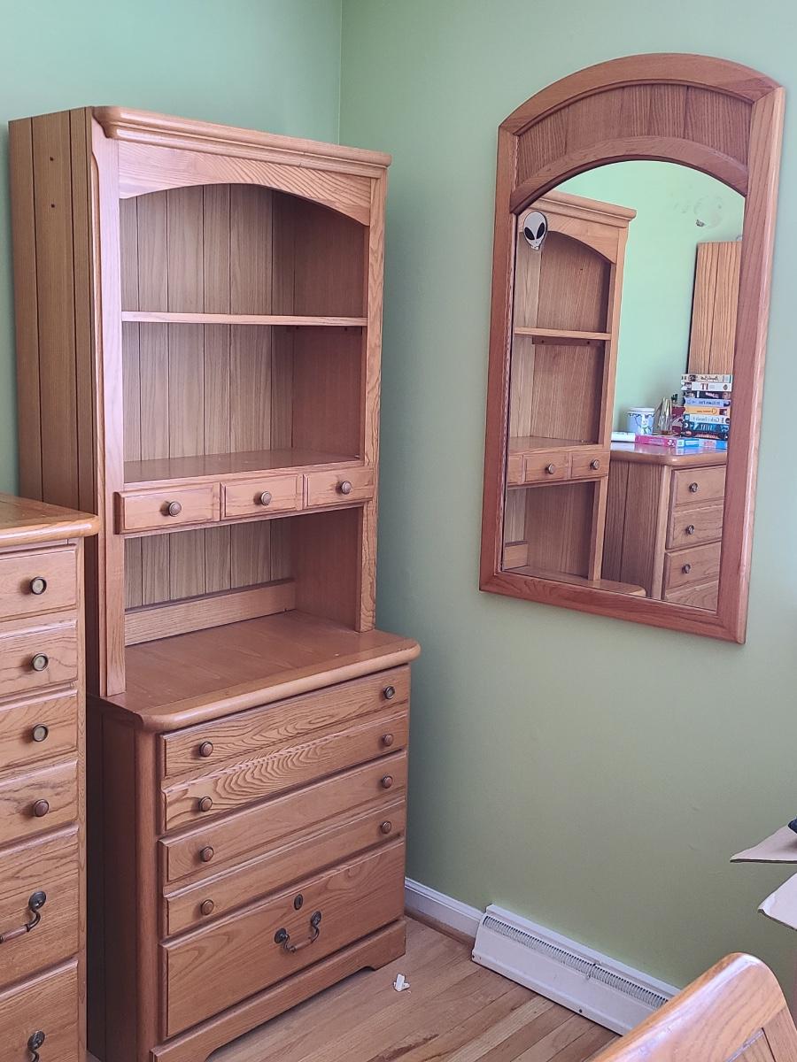 Lot 701S: Bassett Thin Hutch Bookeshelf/ Dresser & Mirror