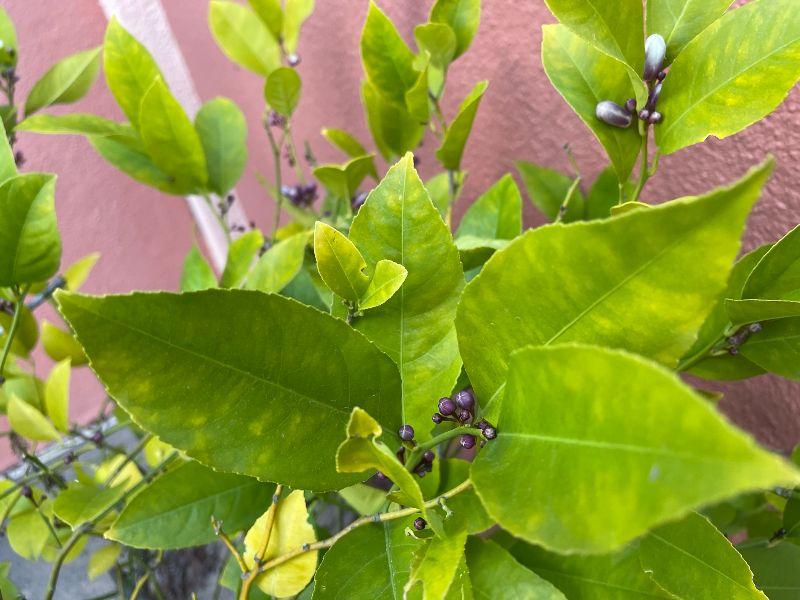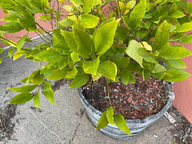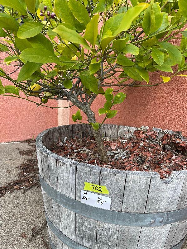 Half wine barrel with lemon tree