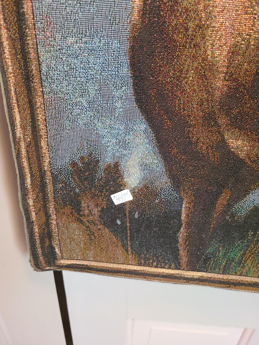 These are new old stock, but show dust/dirt from hanging in store. The fronts look good, the backs show fading. These are larger in size. We do not have measurements at this time. Please see all pictures as they are the best representation of the items. The pictures show condition, measurements if taken, and what is included in the lot. Due to the large amount that we photograph and the time frame, we are not always able to take measurements. All items unless noted, are pre-owned and have been used. If you purchased furniture, you must bring help. We do not allow one person to carry large furniture out on their own. Bring help, tools and a truck for the safety of our client’s homes, and your personal safety. Any damages that result to the property including walls, and floors due to moving of the furniture will be charged to the buyer. Company policy. Thank you.