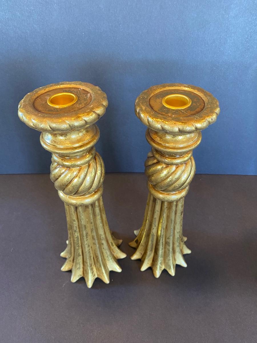 Keepsake box has beautiful gold and blue ornate detail. Set of gold candlesticks that also double as a vase. 8x10 Photo frame. Please see all pictures as they are the best representation of the items. The pictures show condition, measurements if taken, and what is included in the lot. Due to the large amount that we photograph and the time frame, we are not always able to take measurements. All items unless noted, are pre-owned and have been used. If you purchased furniture, you must bring help. We do not allow one person to carry large furniture out on their own. Bring help, tools and a truck for the safety of our client’s homes, and your personal safety. Any damages that result to the property including walls, and floors due to moving of the furniture will be charged to the buyer. Company policy. Thank you.