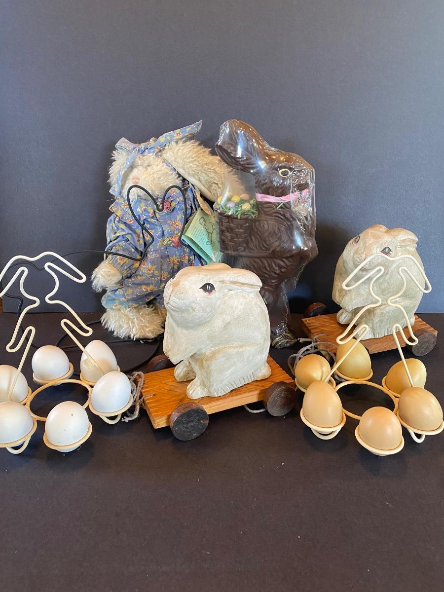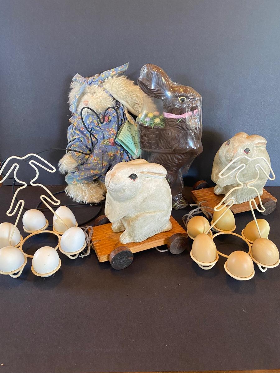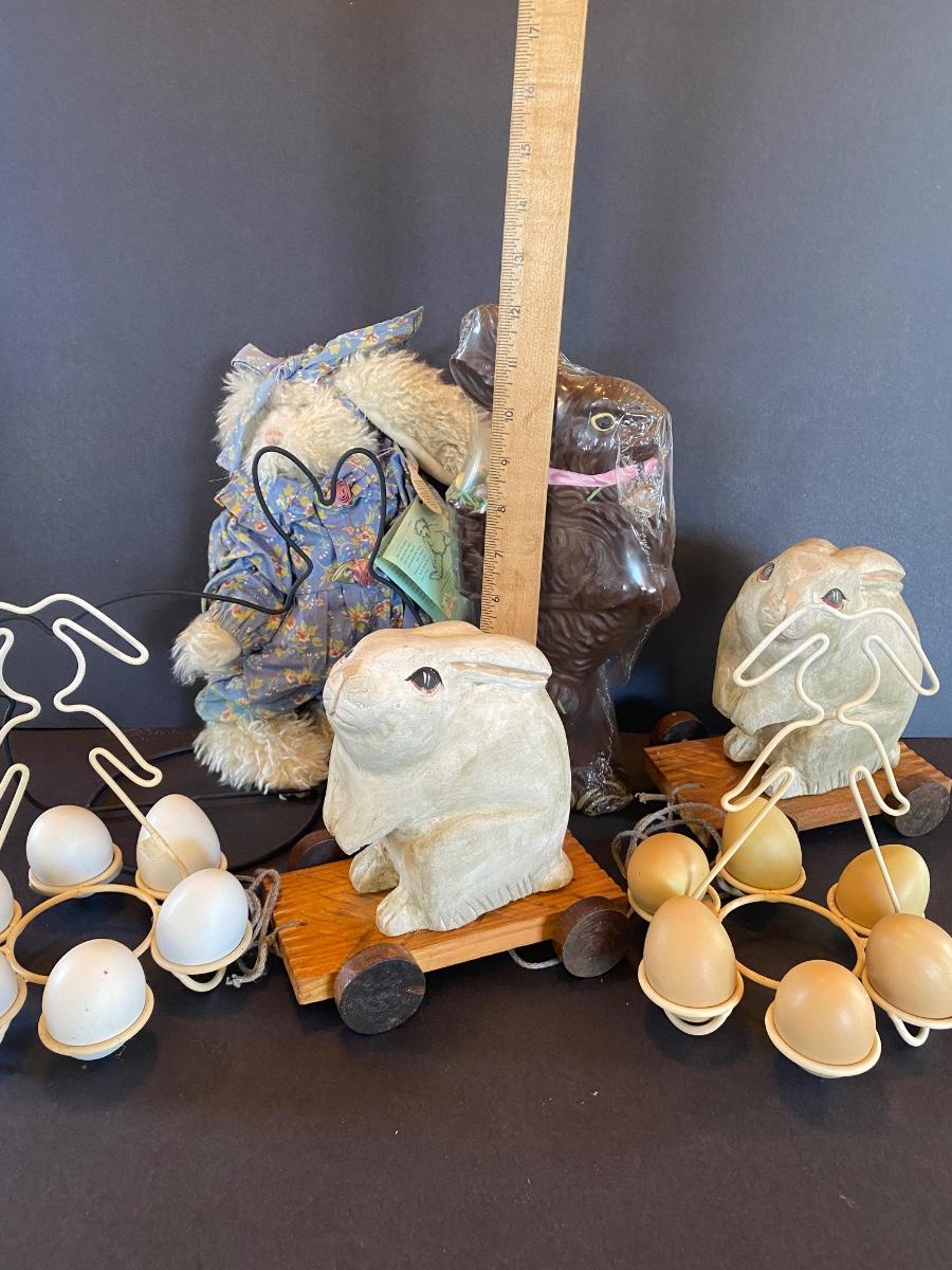 Faux chocolate bunny, wooden rabbits, metal bunny egg holders with wooden eggs, and more. Please see all pictures as they are the best representation of the items. The pictures show condition, measurements if taken, and what is included in the lot. Due to the large amount that we photograph and the time frame, we are not always able to take measurements. All items unless noted, are pre-owned and have been used. If you purchased furniture, you must bring help. We do not allow one person to carry large furniture out on their own. Bring help, tools and a truck for the safety of our client’s homes, and your personal safety. Any damages that result to the property including walls, and floors due to moving of the furniture will be charged to the buyer. Company policy. Thank you.