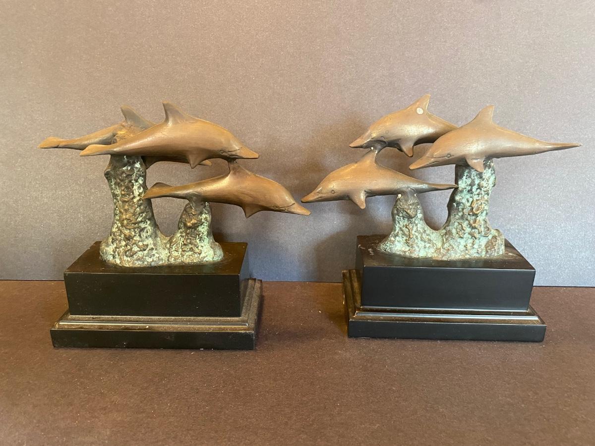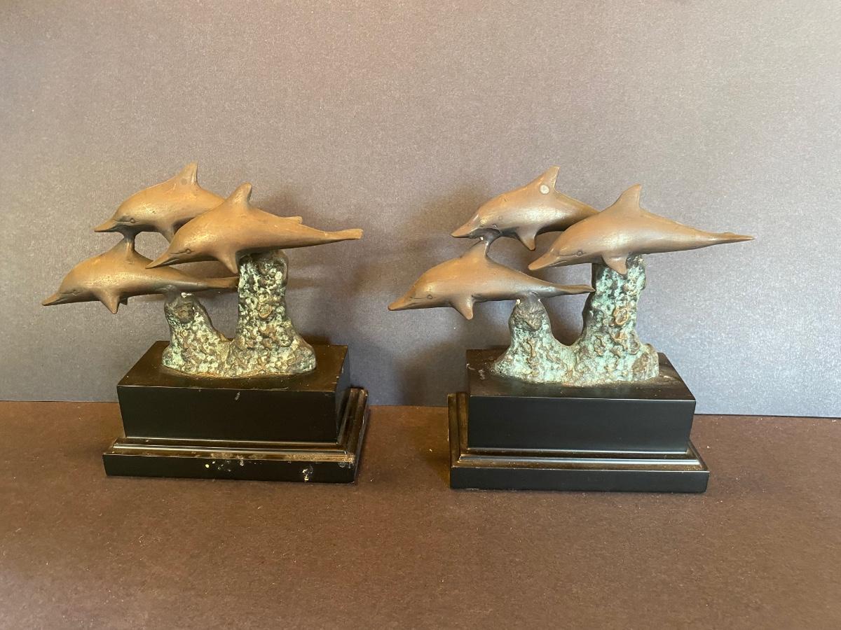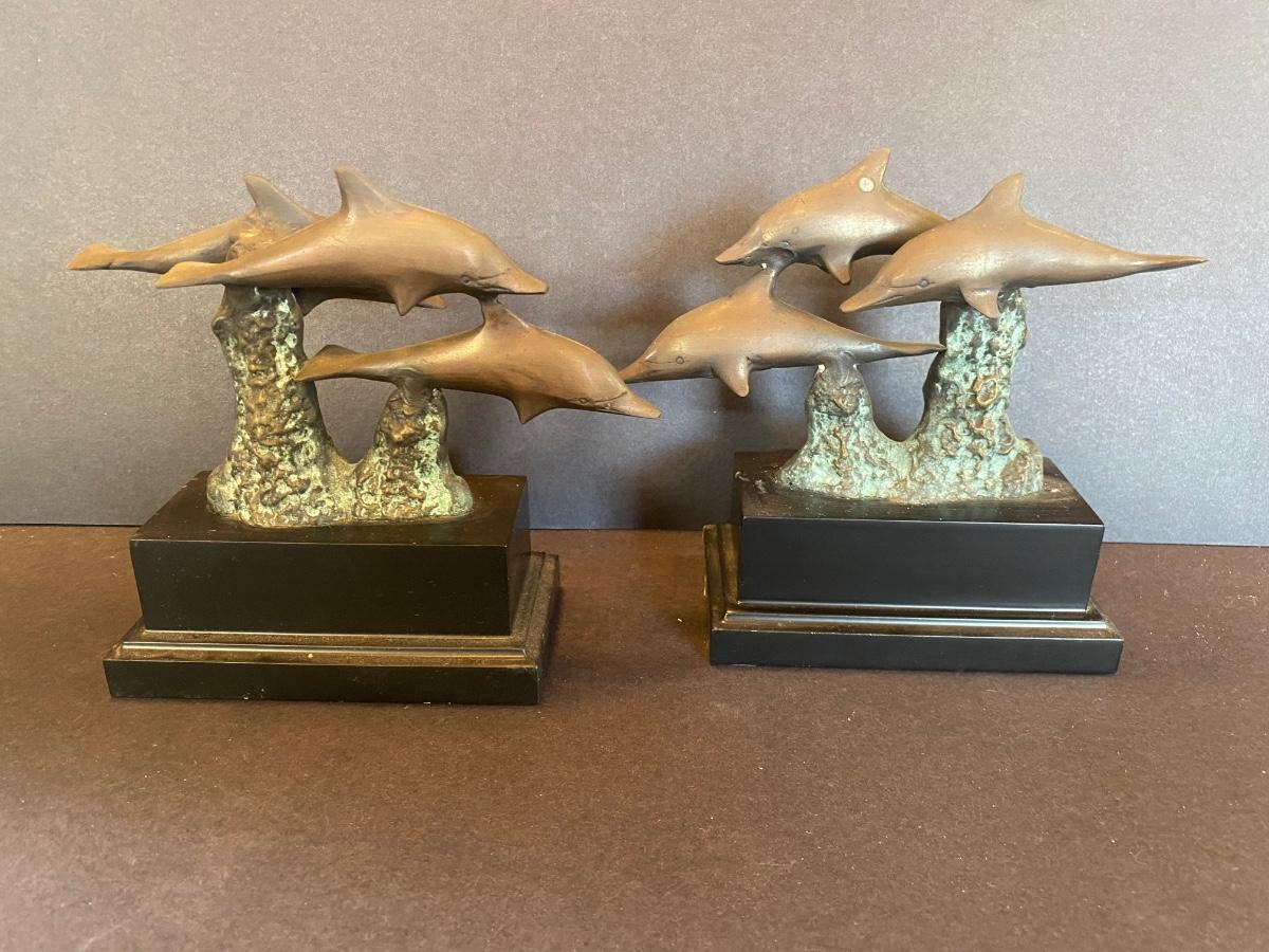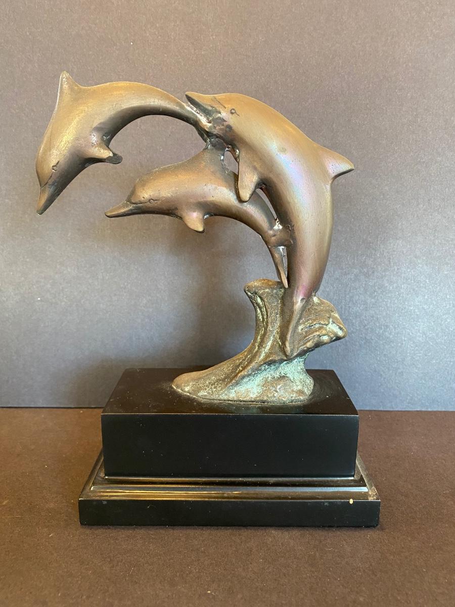 Three statues of dolphins. These were purchased wholesale for resale. The dolphins are brass. Please see all pictures as they are the best representation of the items. The pictures show condition, measurements if taken, and what is included in the lot. Due to the large amount that we photograph and the time frame, we are not always able to take measurements. All items unless noted, are pre-owned and have been used. If you purchased furniture, you must bring help. We do not allow one person to carry large furniture out on their own. Bring help, tools and a truck for the safety of our client’s homes, and your personal safety. Any damages that result to the property including walls, and floors due to moving of the furniture will be charged to the buyer. Company policy. Thank you.