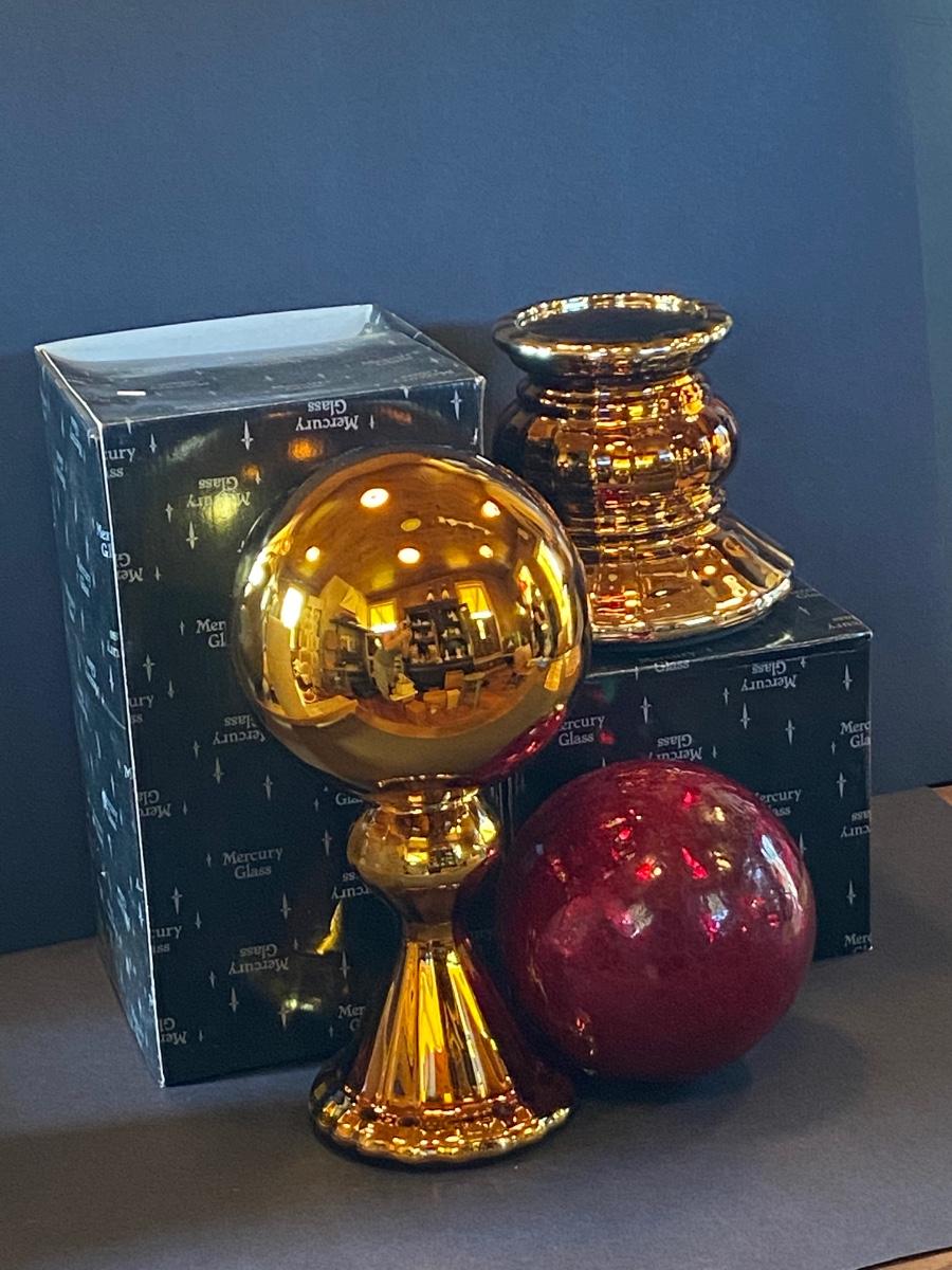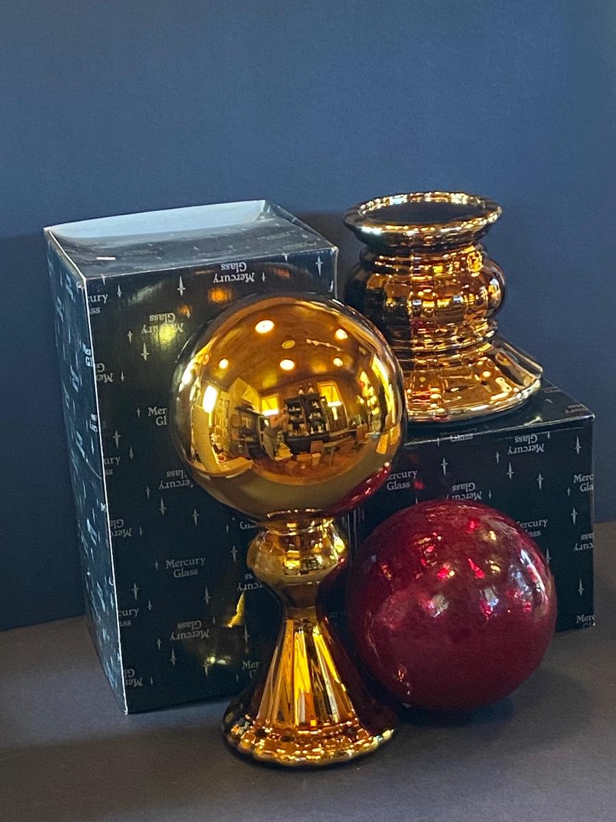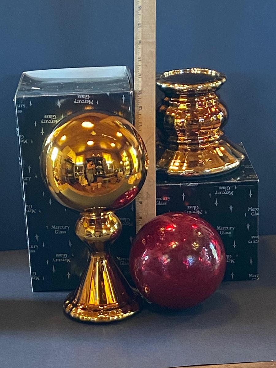 LOT 11G: Department 56 Glass Gazing Ball, Mercury Glass Ornament and more