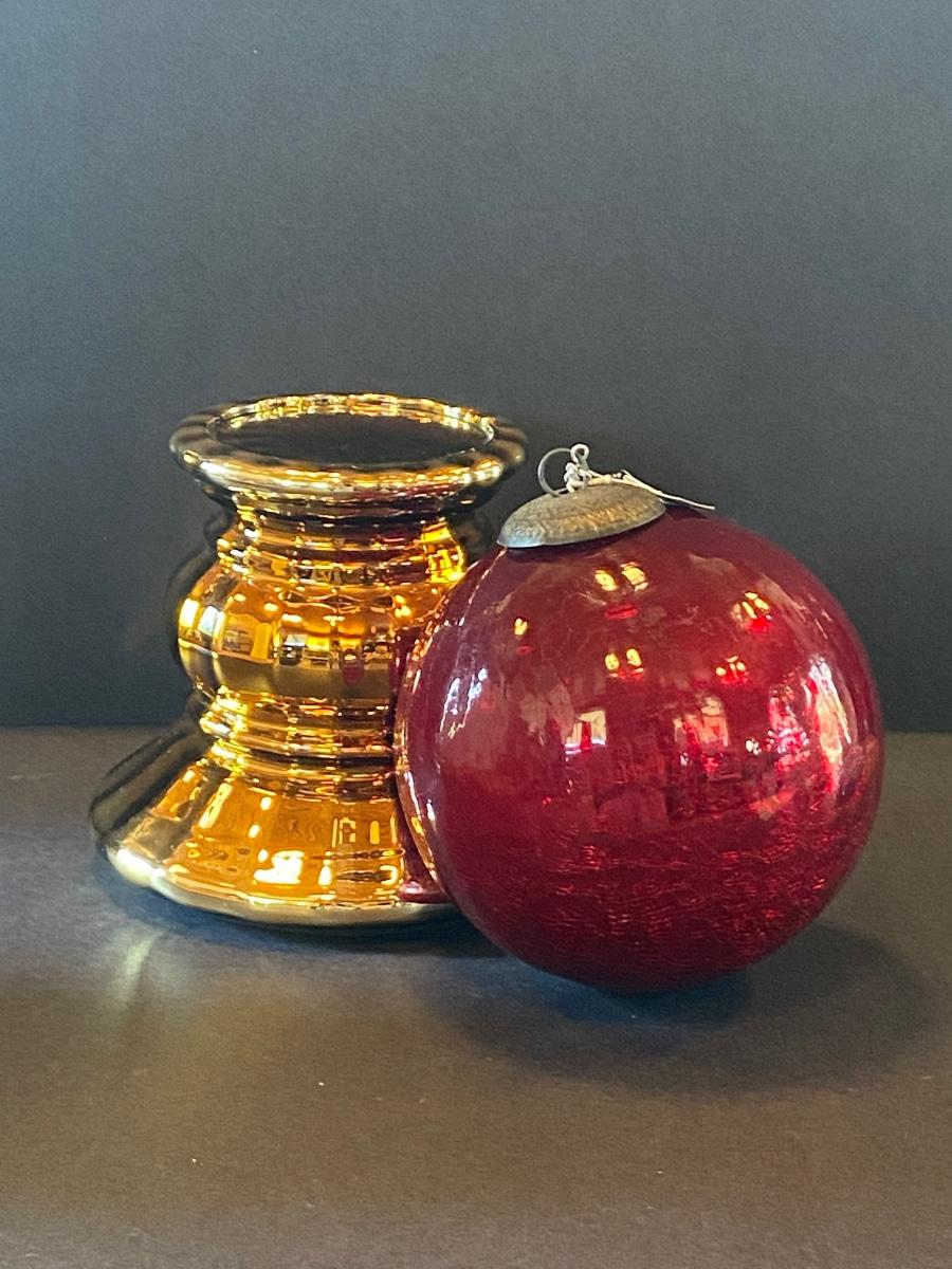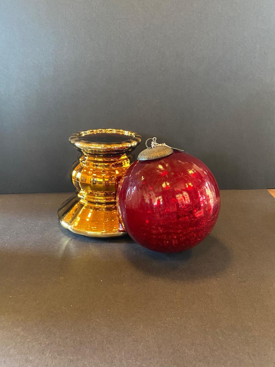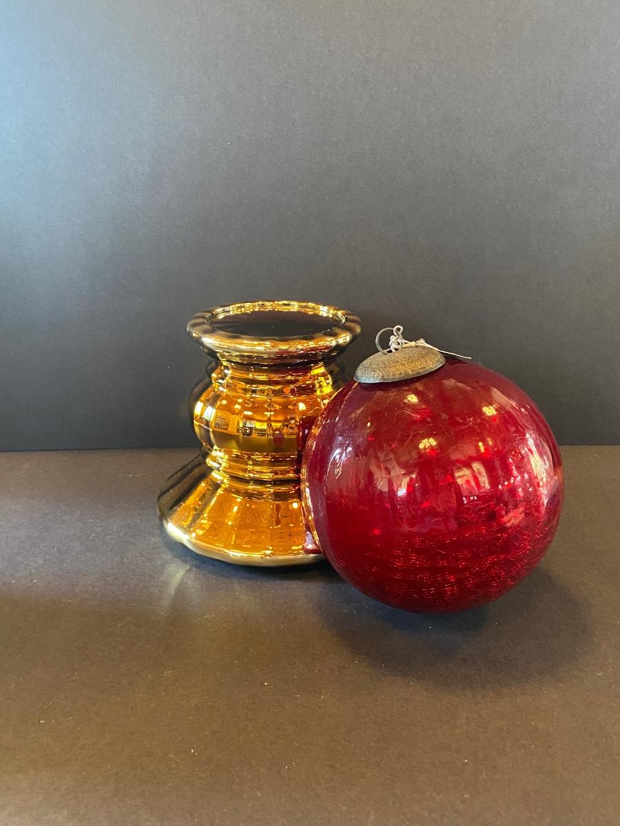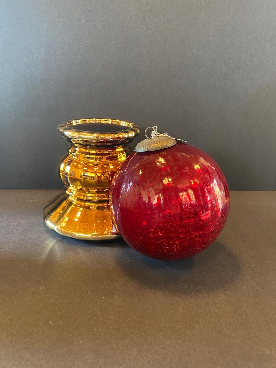 LOT 11G: Department 56 Glass Gazing Ball, Mercury Glass Ornament and more