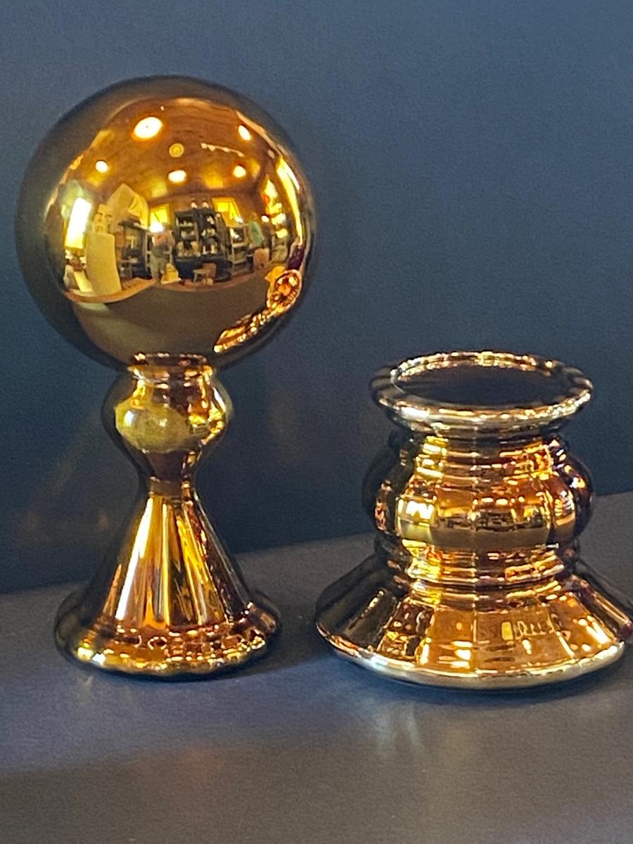 Hand blown glass by Department 56. Gazing ball on stand w original box, stand with original box and red mercury glass holiday ball. Red holiday ball has no maker mark or box. Please see all pictures as they are the best representation of the items. The pictures show condition, measurements if taken, and what is included in the lot. Due to the large amount that we photograph and the time frame, we are not always able to take measurements. All items unless noted, are pre-owned and have been used. If you purchased furniture, you must bring help. We do not allow one person to carry large furniture out on their own. Bring help, tools and a truck for the safety of our client’s homes, and your personal safety. Any damages that result to the property including walls, and floors due to moving of the furniture will be charged to the buyer. Company policy. Thank you.