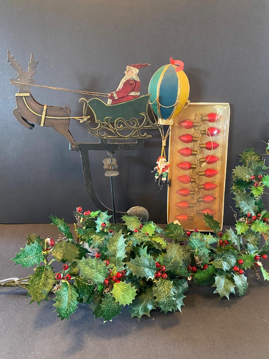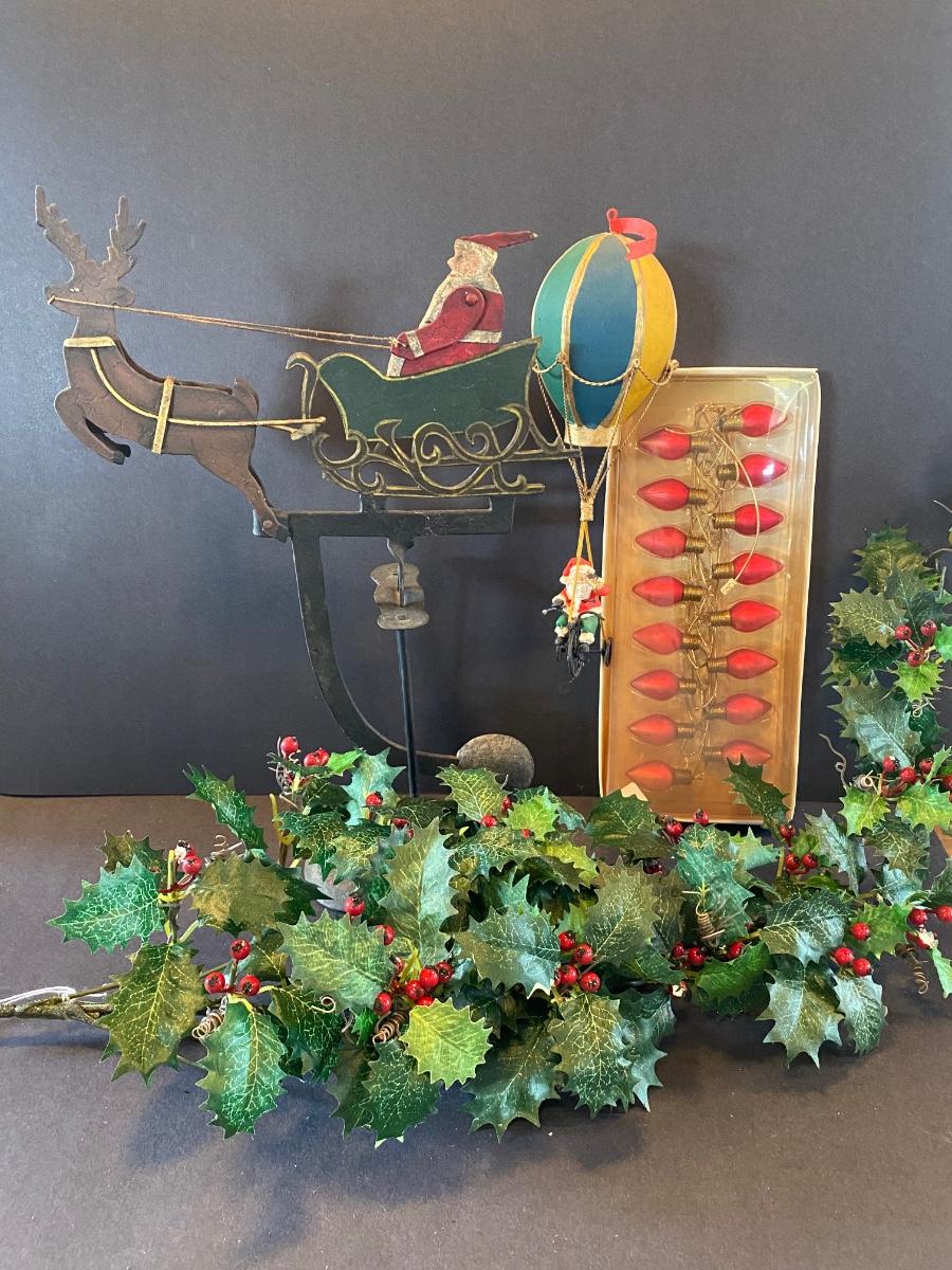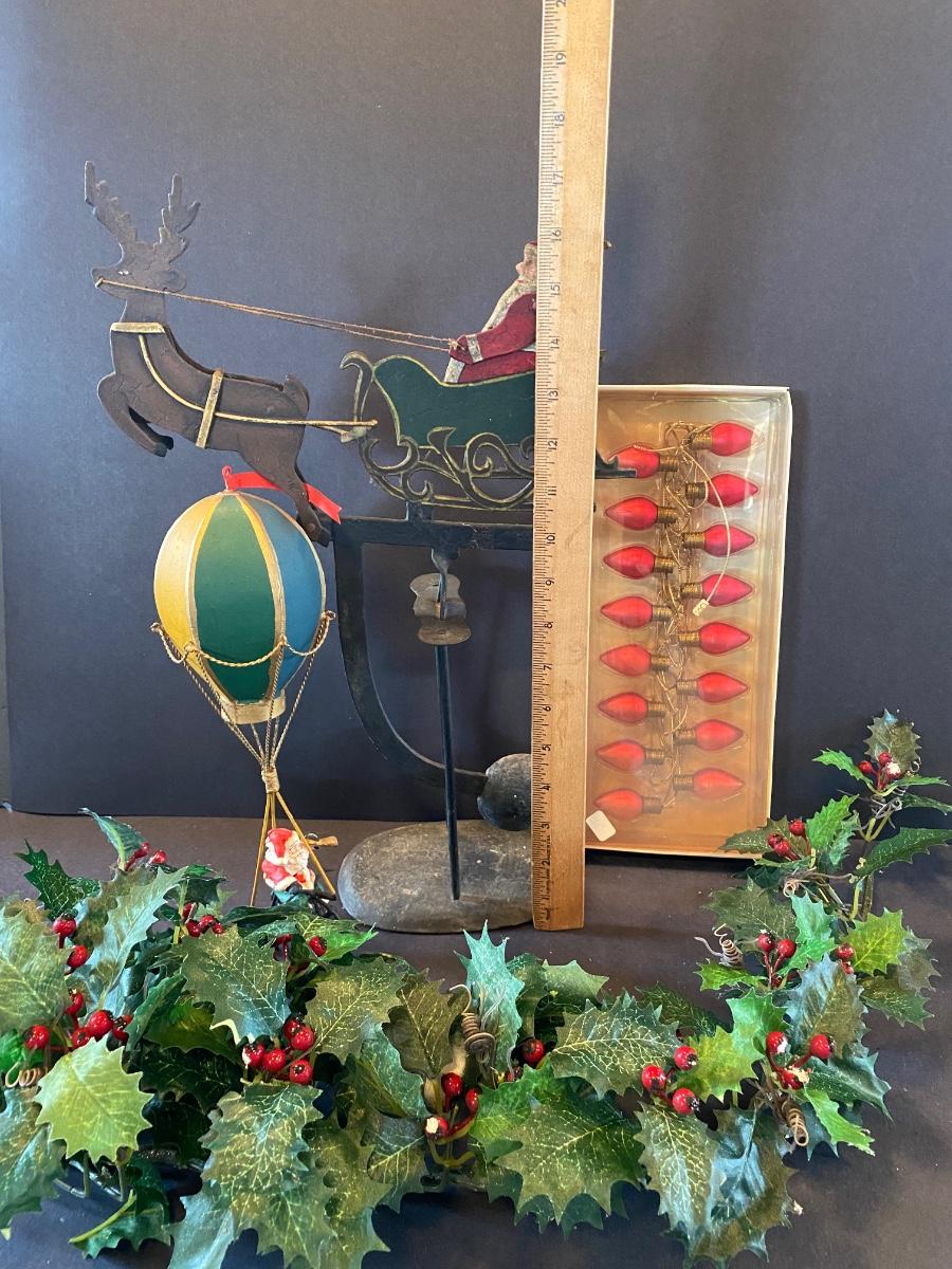 Metal moving Santa on his sleigh. Santa rocks back and forth while his reindeer guides his sleigh. Santa in a colorful hot air balloon with hook on top for hanging. Holly garland and a box of Christmas bulb garland. Please see all pictures as they are the best representation of the items. The pictures show condition, measurements if taken, and what is included in the lot. Due to the large amount that we photograph and the time frame, we are not always able to take measurements. All items unless noted, are pre-owned and have been used. If you purchased furniture, you must bring help. We do not allow one person to carry large furniture out on their own. Bring help, tools and a truck for the safety of our client’s homes, and your personal safety. Any damages that result to the property including walls, and floors due to moving of the furniture will be charged to the buyer. Company policy. Thank you.