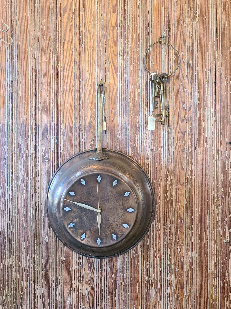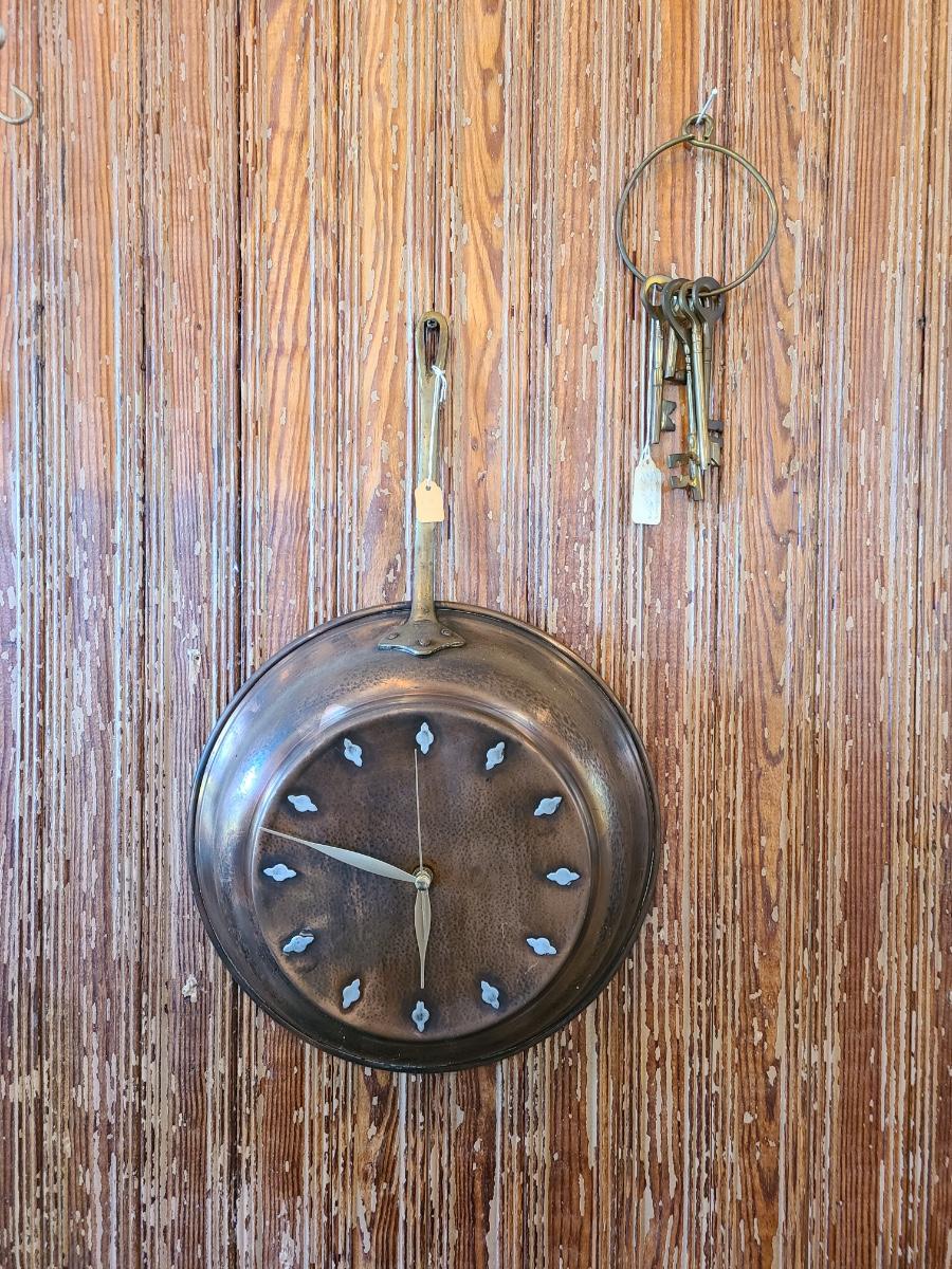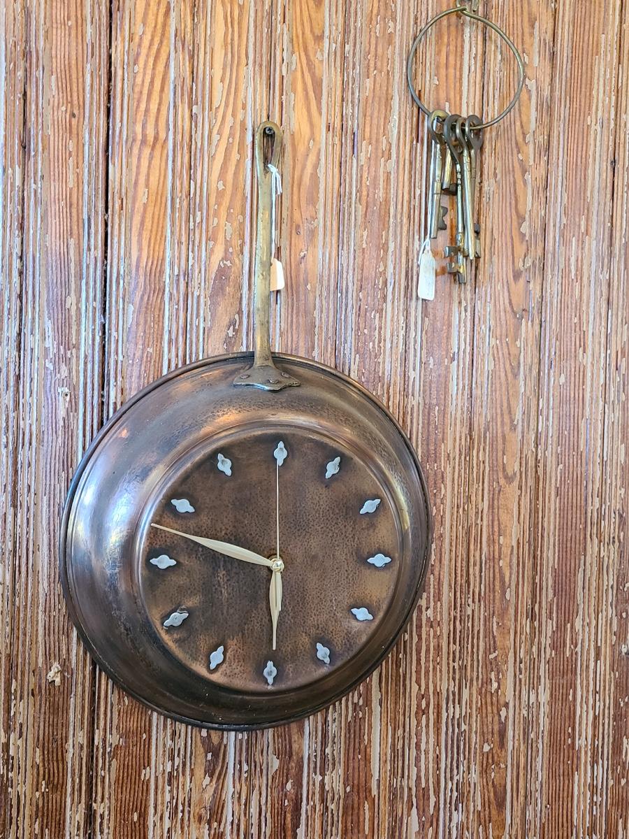 LOT 20C: Copper Pan Clock & Large Brass Keys on Ring