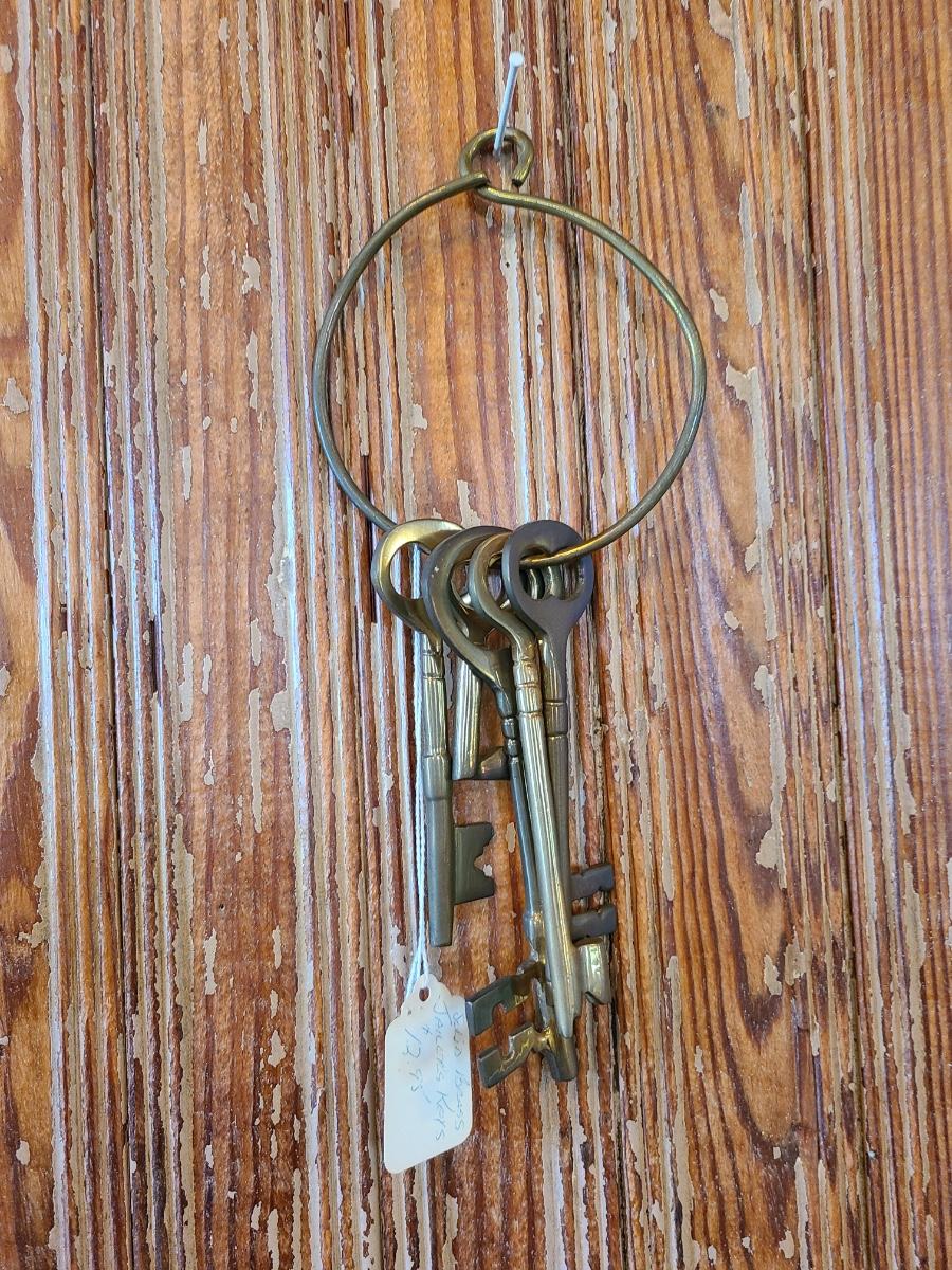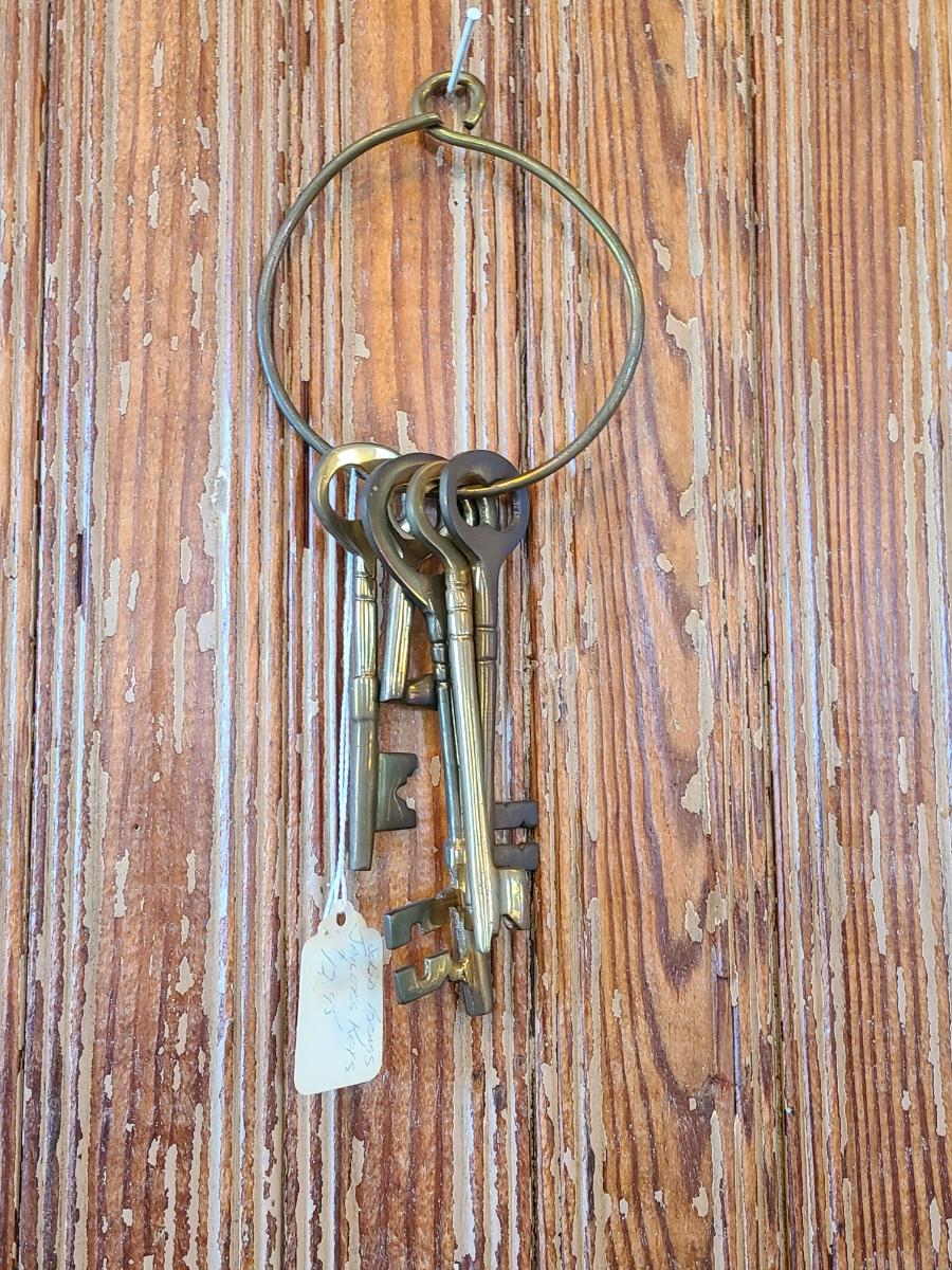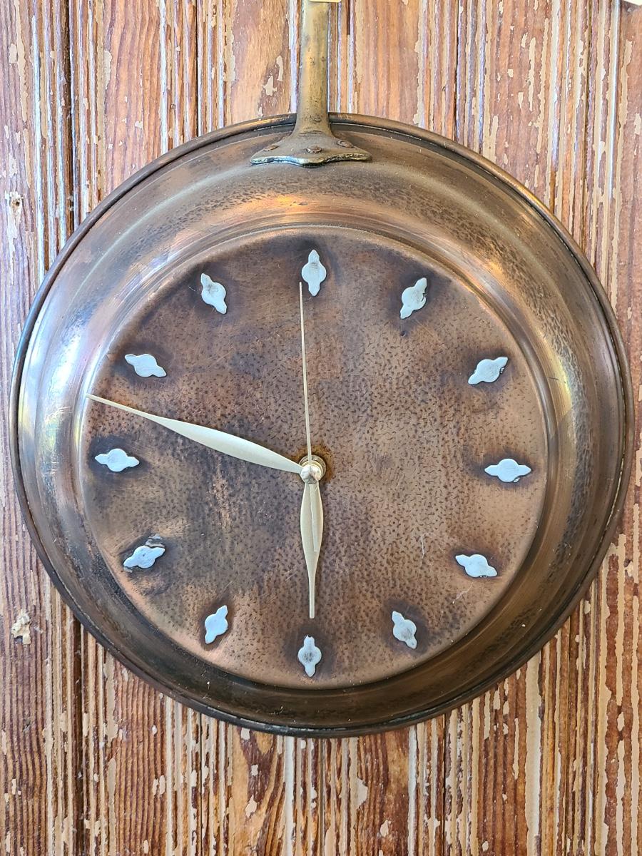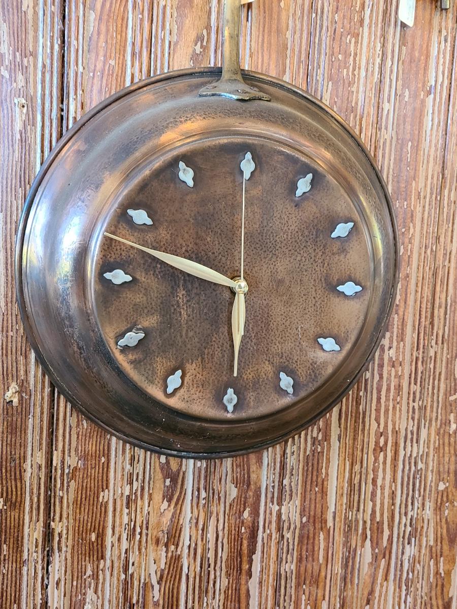 LOT 20C: Copper Pan Clock & Large Brass Keys on Ring