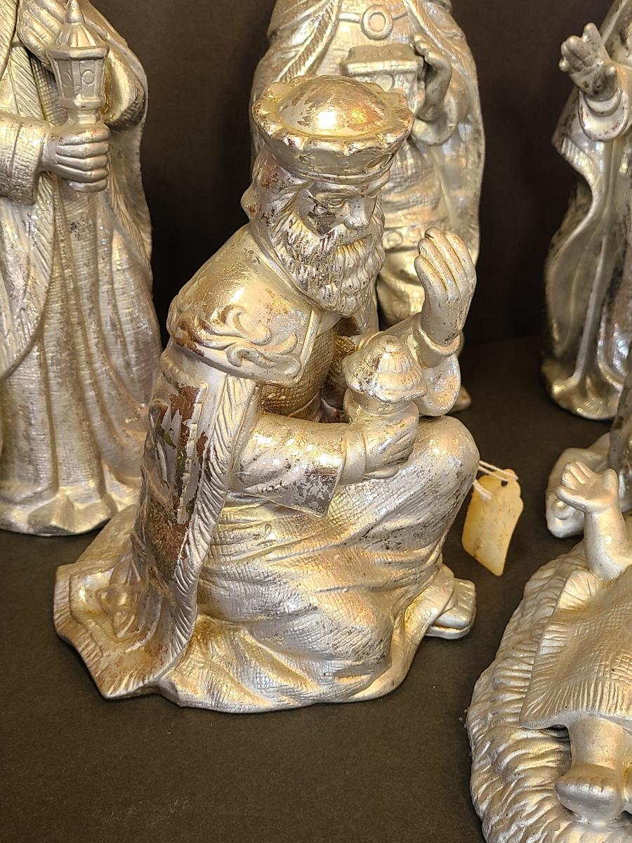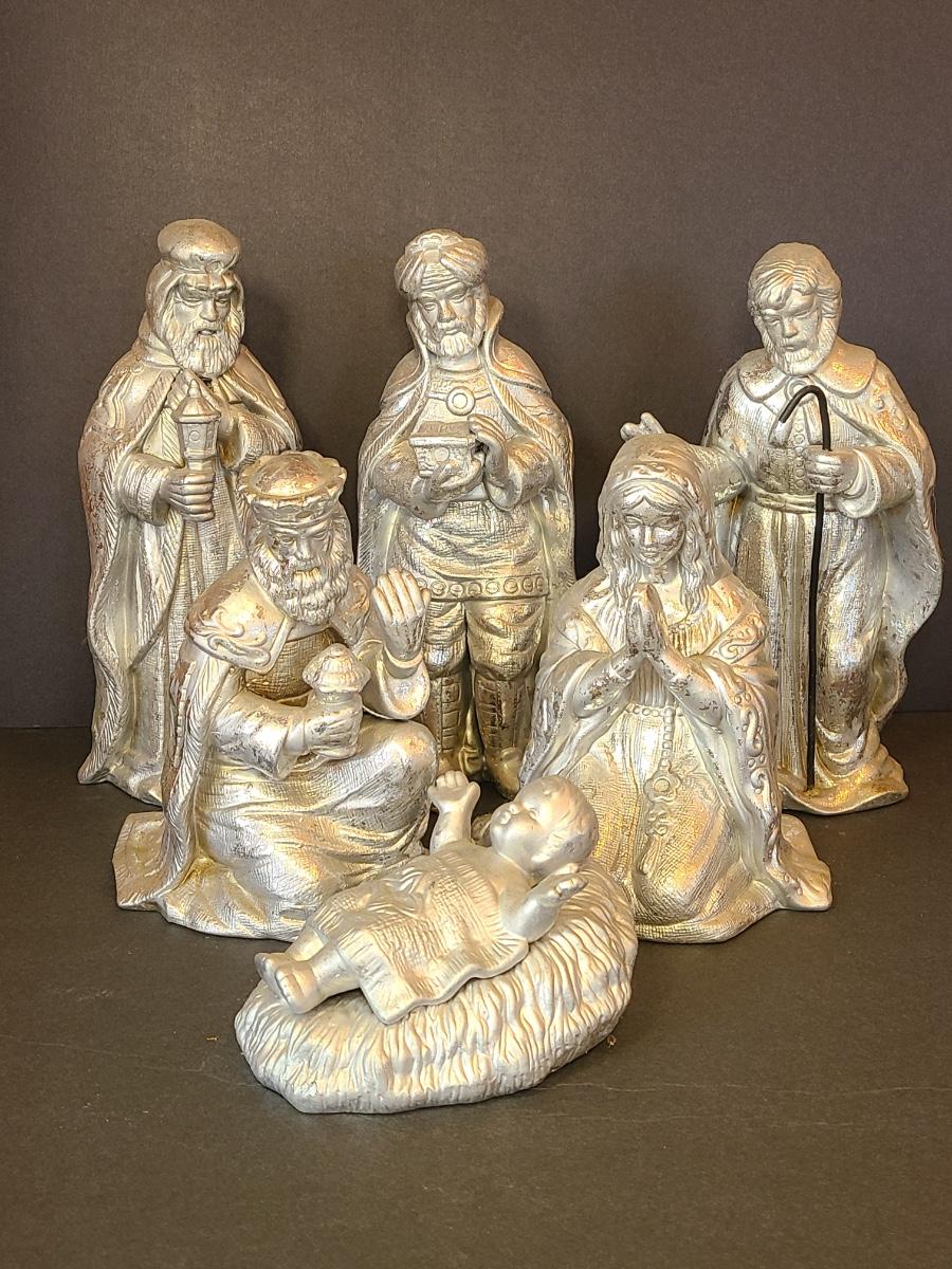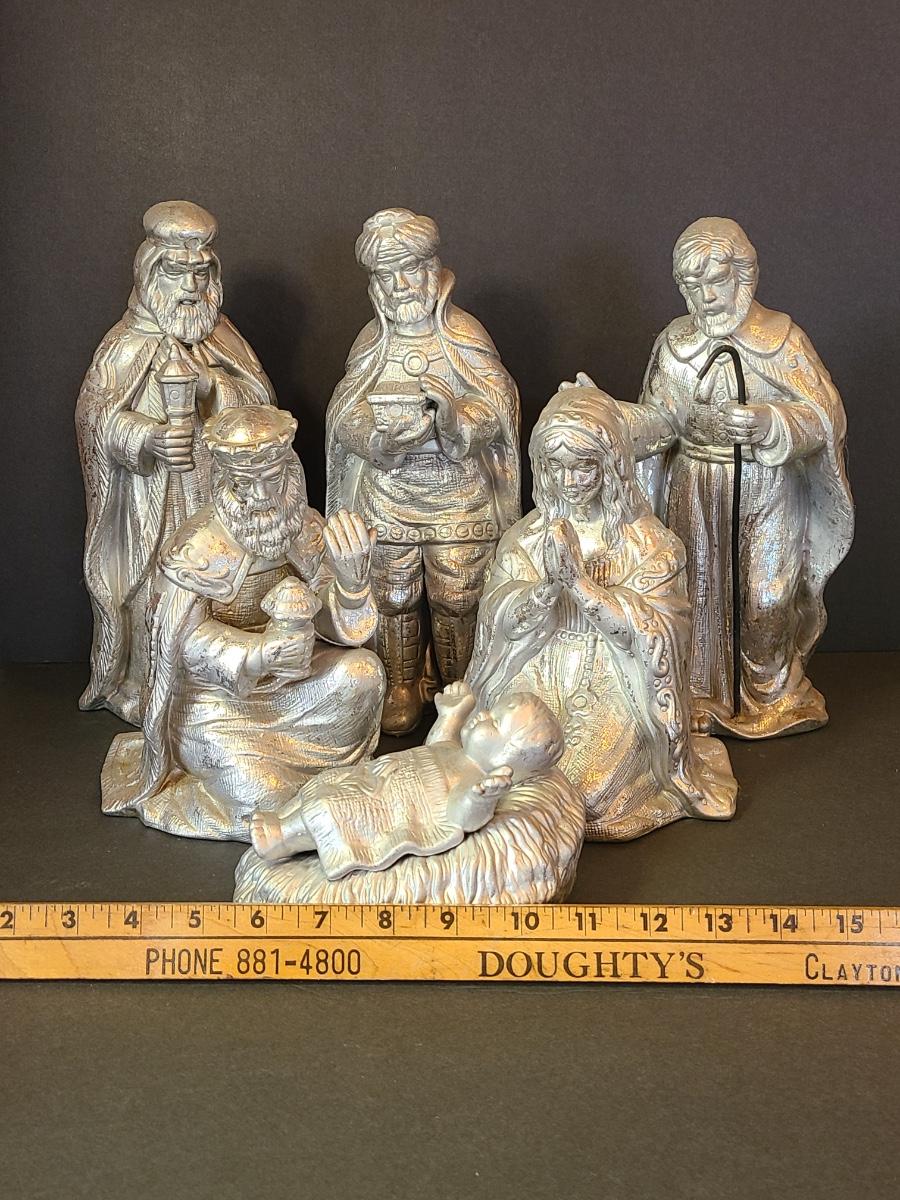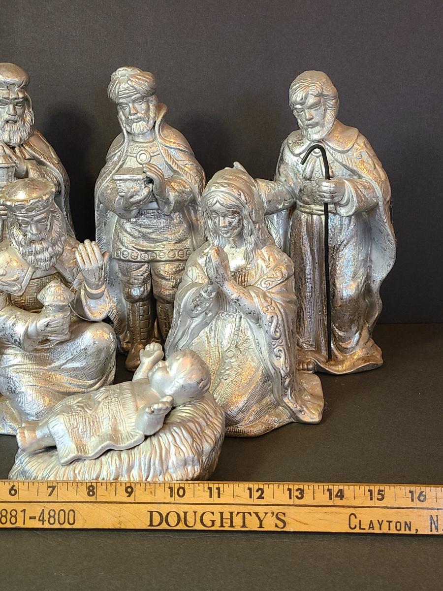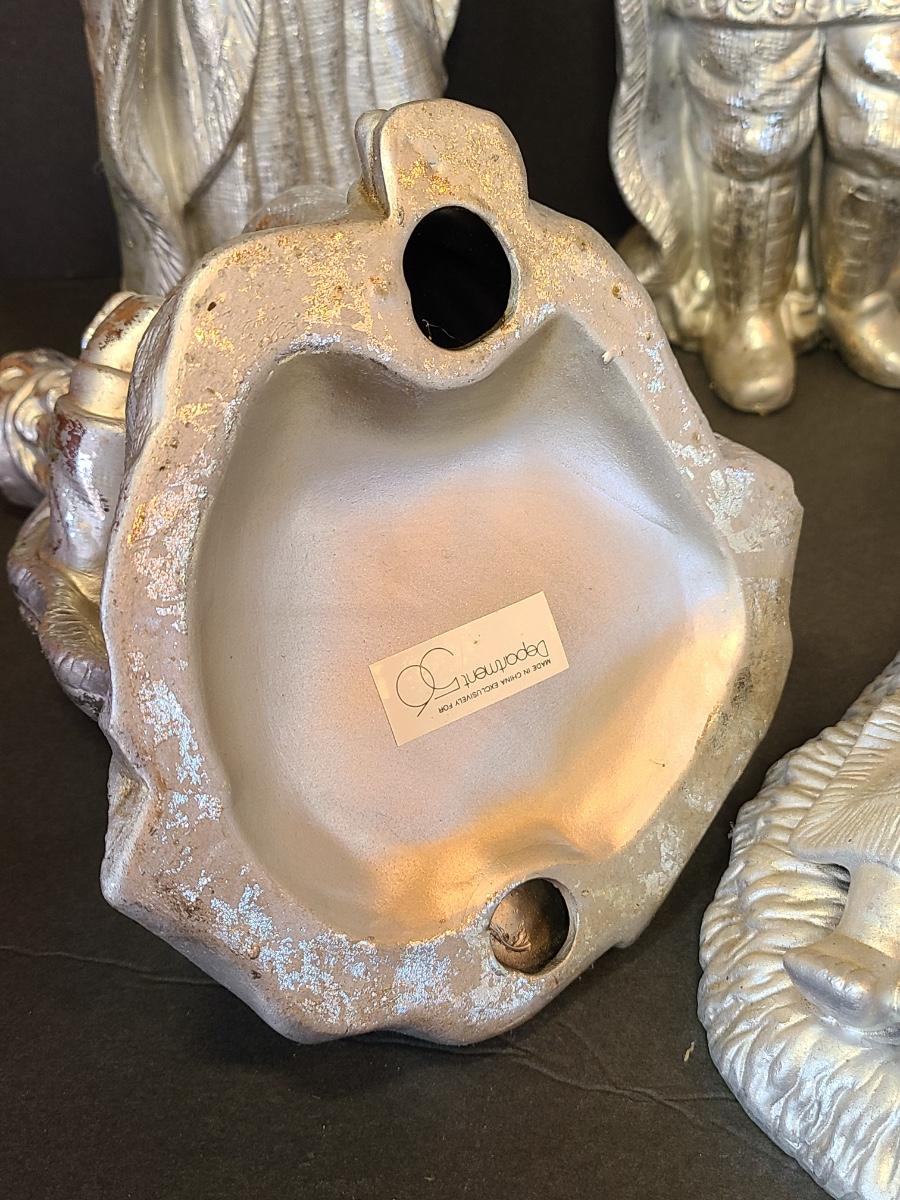 This is a lovely set by Department 56. This is silver in color and shines with a foil overlay in sections to give it dimension. It does not come with a box, if we do find one, we will add. Please see the measurements, it is larger than it appears. Please see all pictures as they are the best representation of the items. The pictures show condition, measurements if taken, and what is included in the lot. Due to the large amount that we photograph and the time frame, we are not always able to take measurements. All items unless noted, are pre-owned and have been used. If you purchased furniture, you must bring help. We do not allow one person to carry large furniture out on their own. Bring help, tools and a truck for the safety of our client’s homes, and your personal safety. Any damages that result to the property including walls, and floors due to moving of the furniture will be charged to the buyer. Company policy. Thank you.
