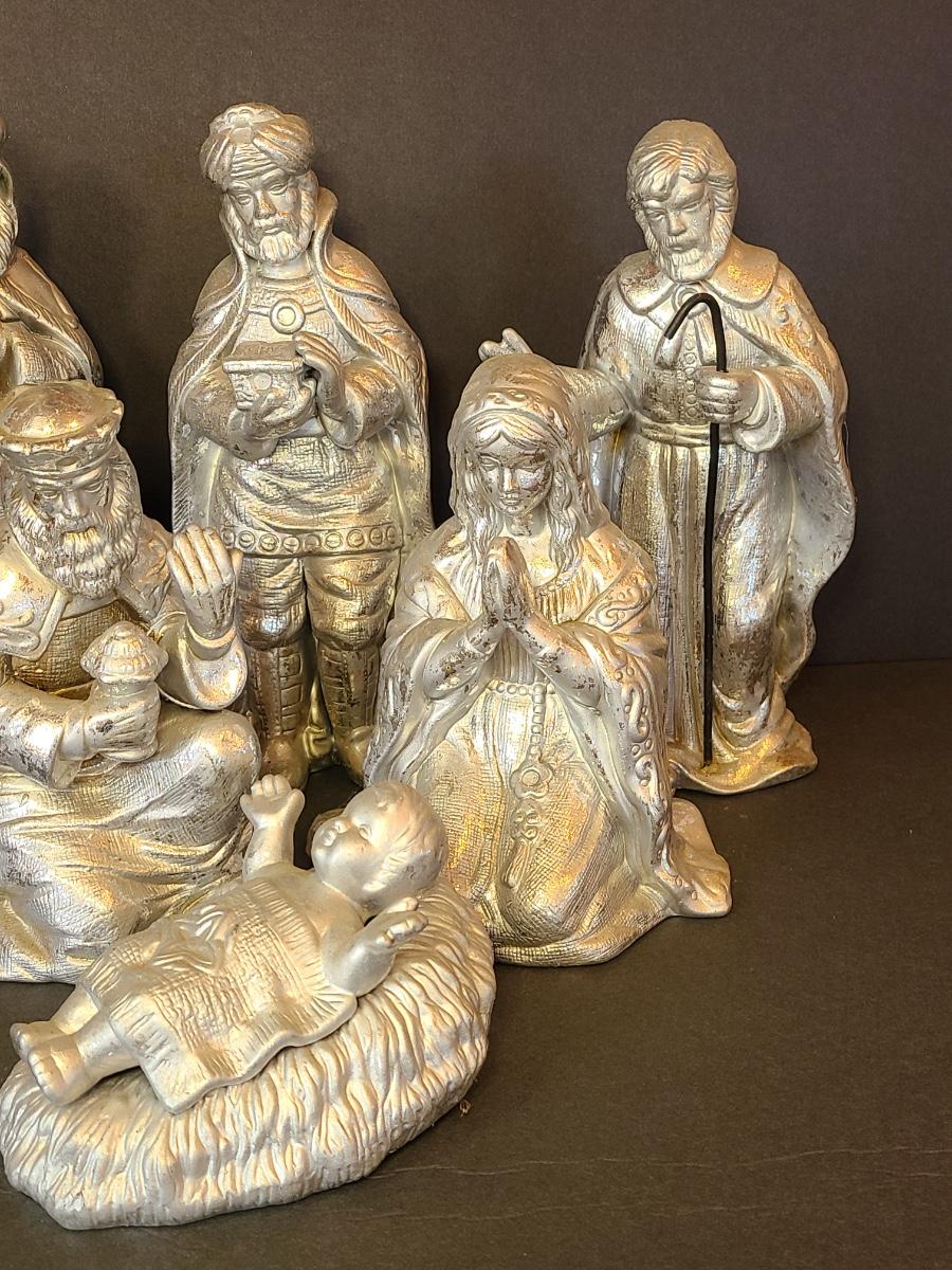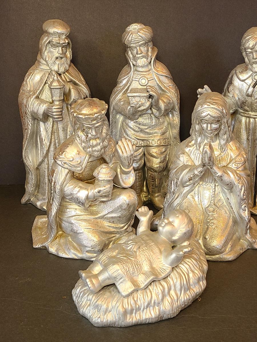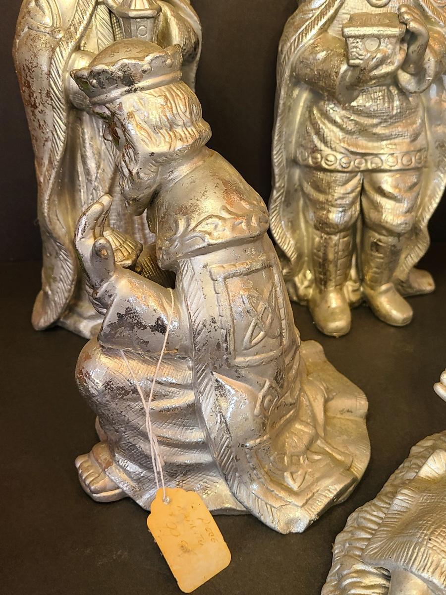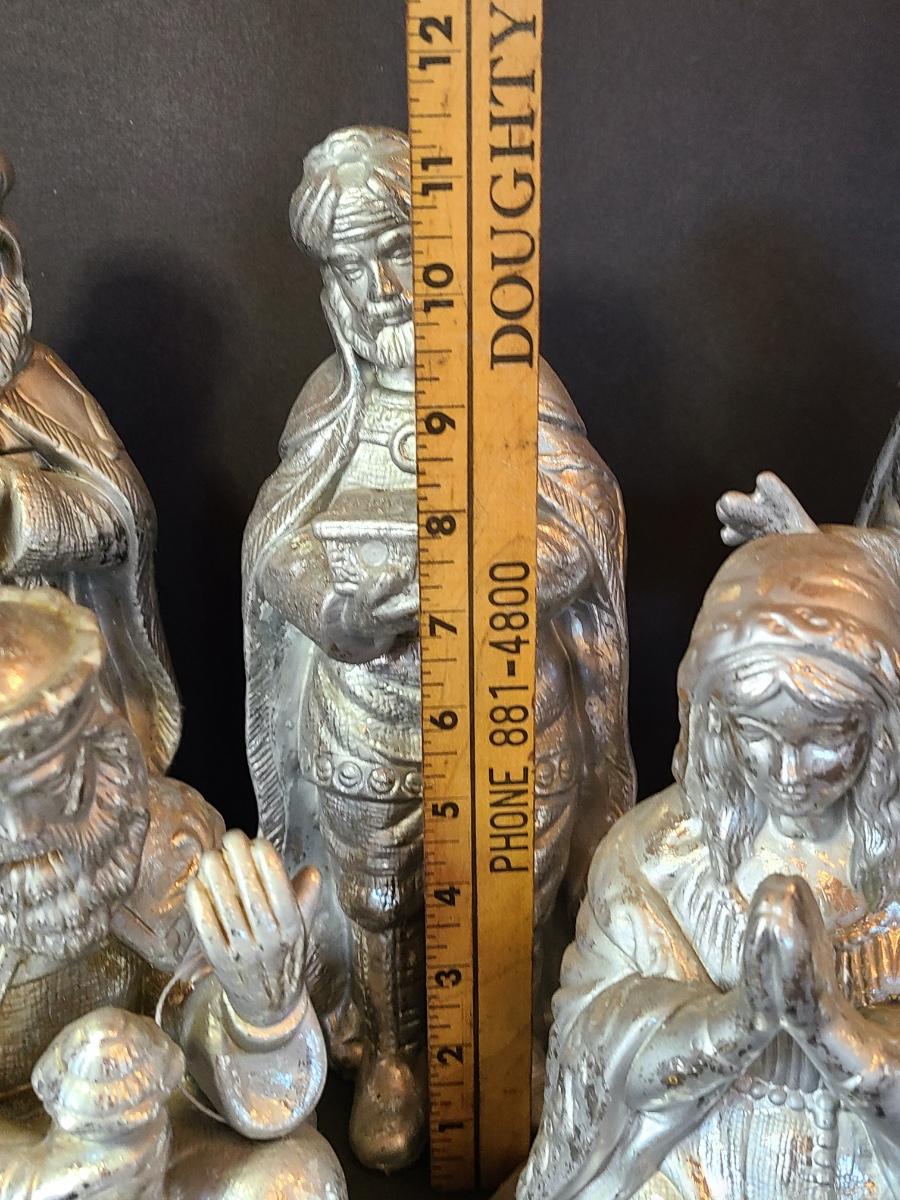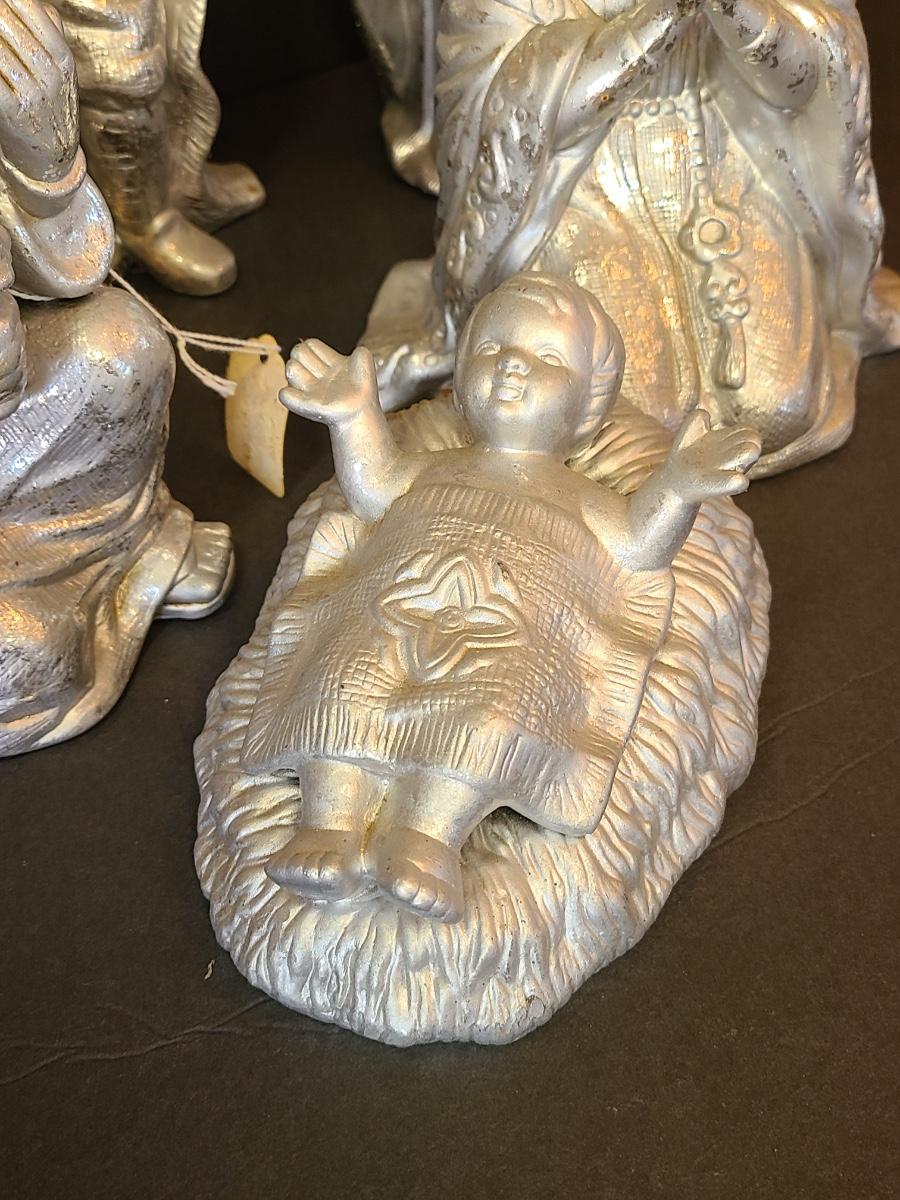 This is a lovely set by Department 56. This is silver in color and shines with a foil overlay in sections to give it dimension. It does not come with a box, if we do find one, we will add. Please see the measurements, it is larger than it appears. Please see all pictures as they are the best representation of the items. The pictures show condition, measurements if taken, and what is included in the lot. Due to the large amount that we photograph and the time frame, we are not always able to take measurements. All items unless noted, are pre-owned and have been used. If you purchased furniture, you must bring help. We do not allow one person to carry large furniture out on their own. Bring help, tools and a truck for the safety of our client’s homes, and your personal safety. Any damages that result to the property including walls, and floors due to moving of the furniture will be charged to the buyer. Company policy. Thank you.