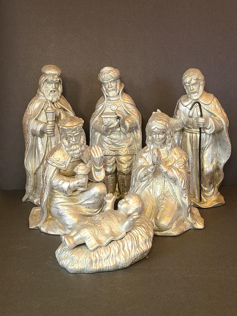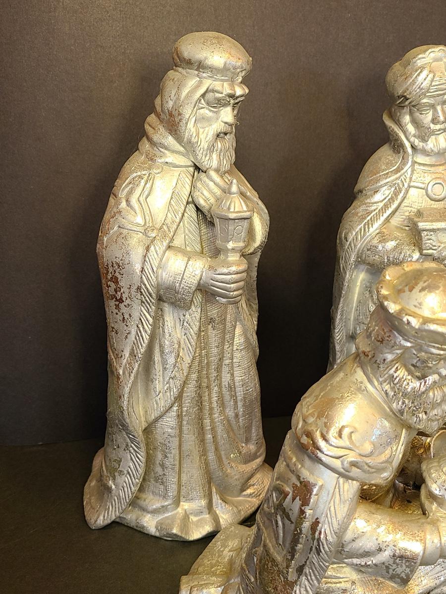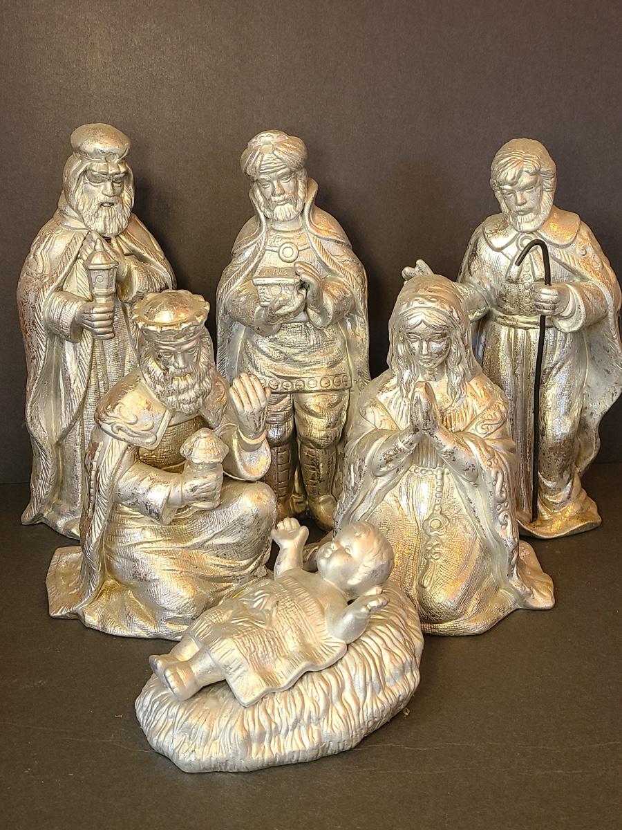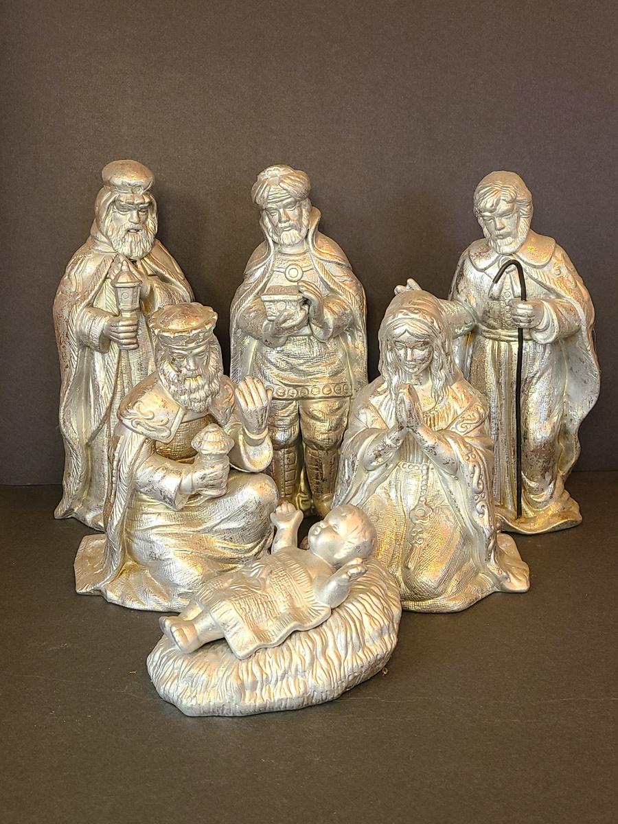 This is a lovely set by Department 56. This is silver in color and shines with a foil overlay in sections to give it dimension. It does not come with a box, if we do find one, we will add. Please see the measurements, it is larger than it appears. Please see all pictures as they are the best representation of the items. The pictures show condition, measurements if taken, and what is included in the lot. Due to the large amount that we photograph and the time frame, we are not always able to take measurements. All items unless noted, are pre-owned and have been used. If you purchased furniture, you must bring help. We do not allow one person to carry large furniture out on their own. Bring help, tools and a truck for the safety of our client’s homes, and your personal safety. Any damages that result to the property including walls, and floors due to moving of the furniture will be charged to the buyer. Company policy. Thank you.
