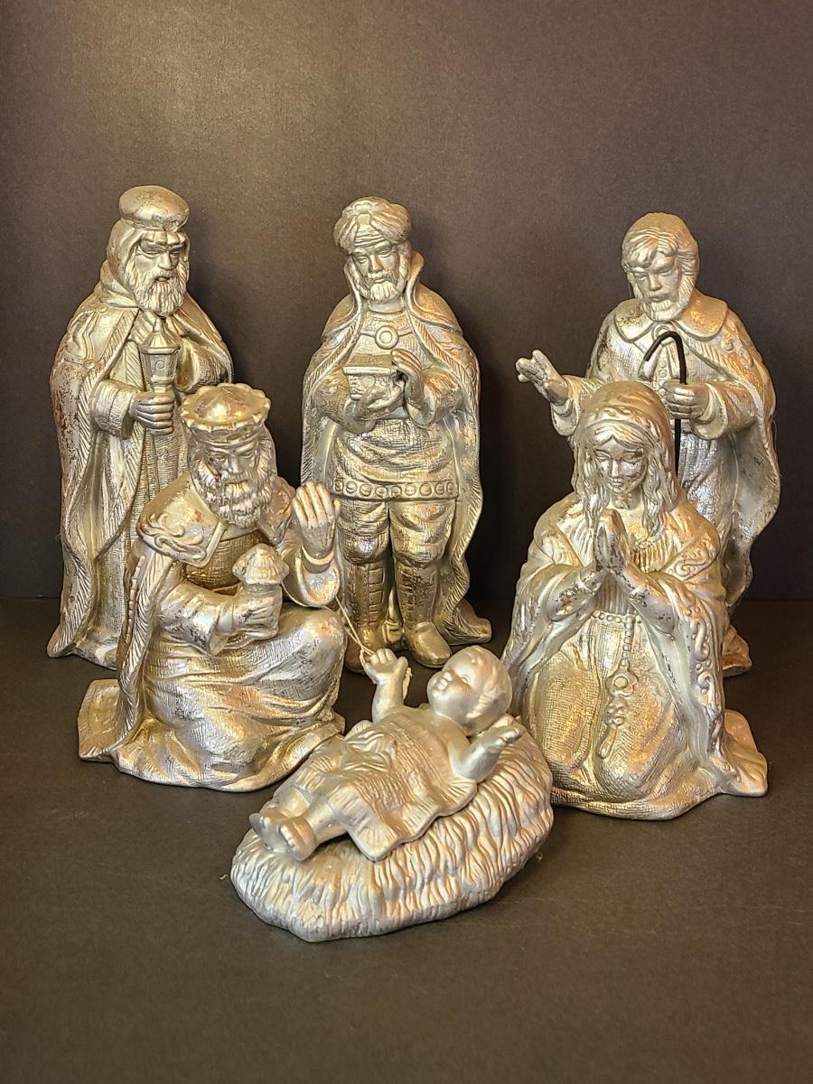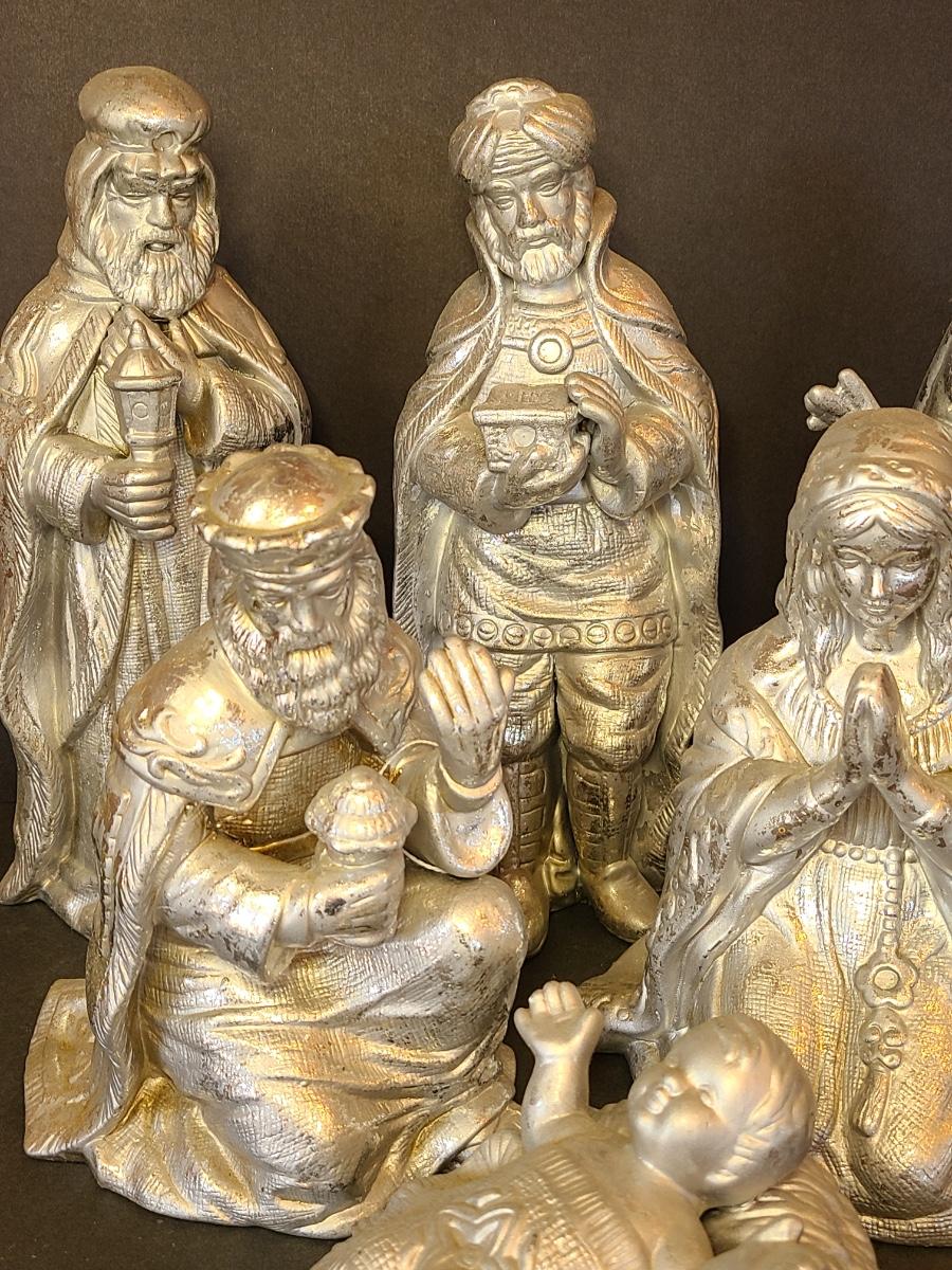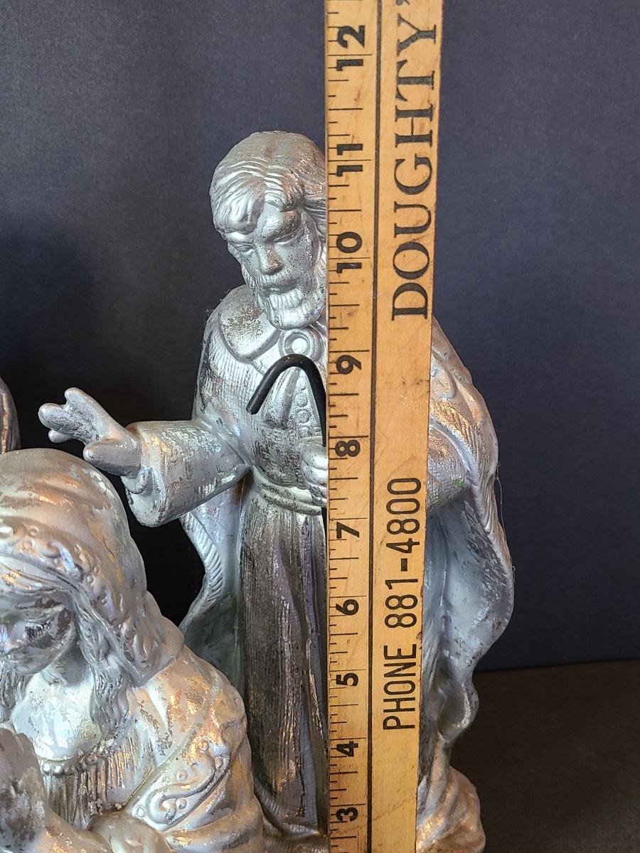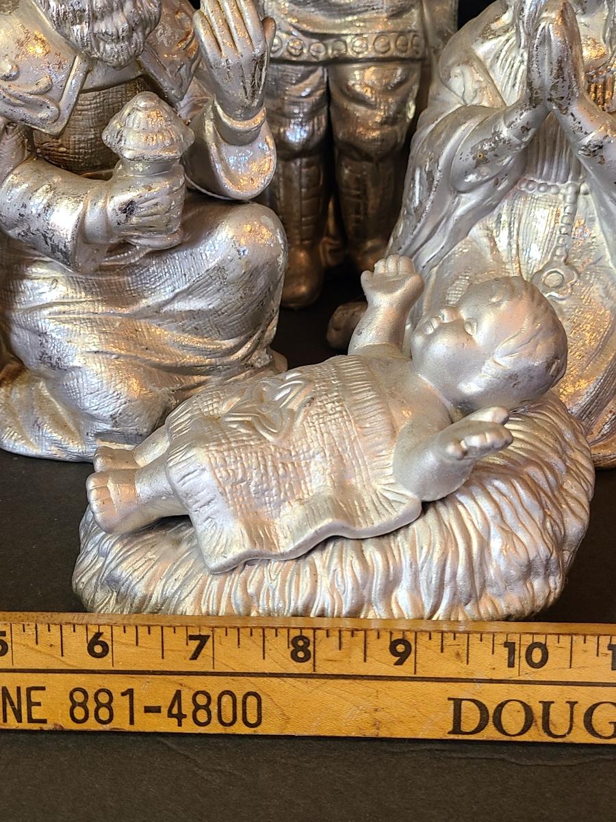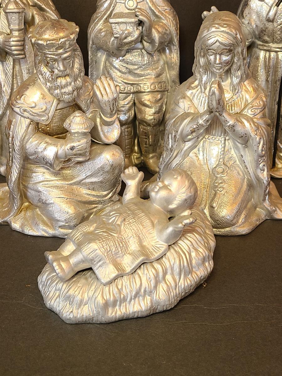 This is a lovely set by Department 56. This is silver in color and shines with a foil overlay in sections to give it dimension. It does not come with a box, if we do find one, we will add. Please see the measurements, it is larger than it appears. Please see all pictures as they are the best representation of the items. The pictures show condition, measurements if taken, and what is included in the lot. Due to the large amount that we photograph and the time frame, we are not always able to take measurements. All items unless noted, are pre-owned and have been used. If you purchased furniture, you must bring help. We do not allow one person to carry large furniture out on their own. Bring help, tools and a truck for the safety of our client’s homes, and your personal safety. Any damages that result to the property including walls, and floors due to moving of the furniture will be charged to the buyer. Company policy. Thank you.