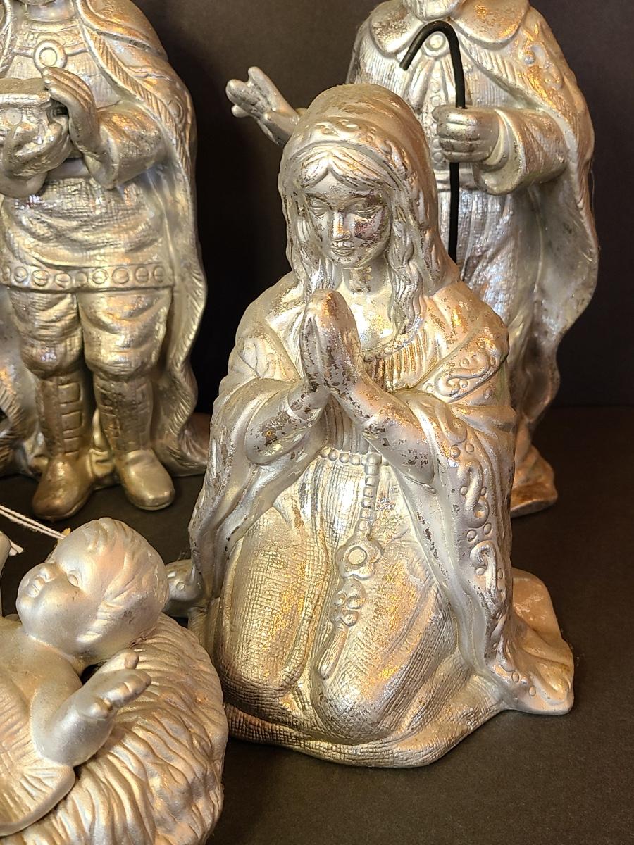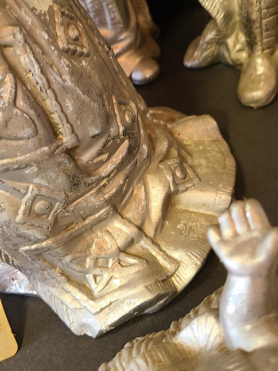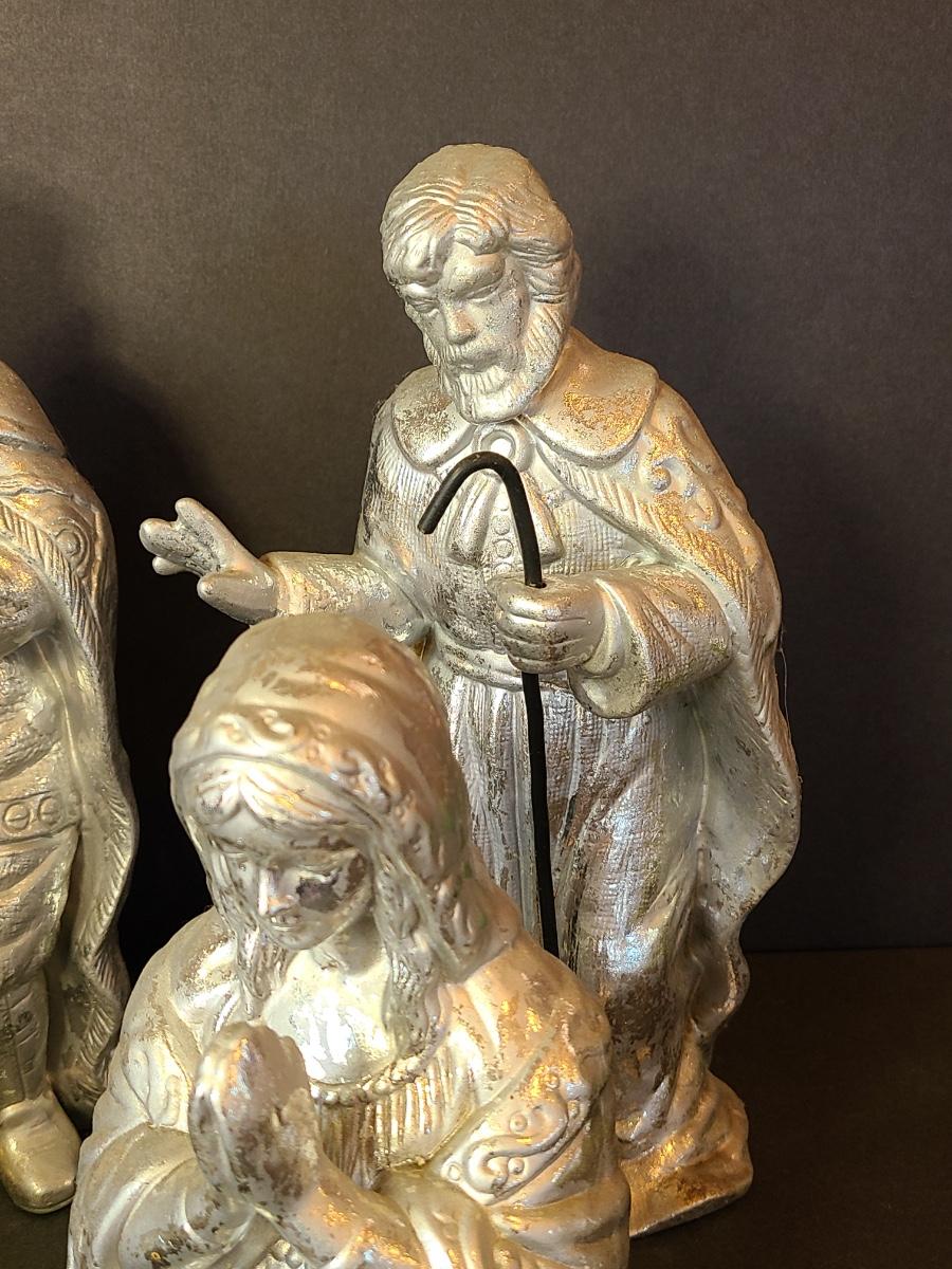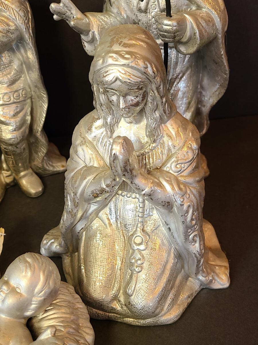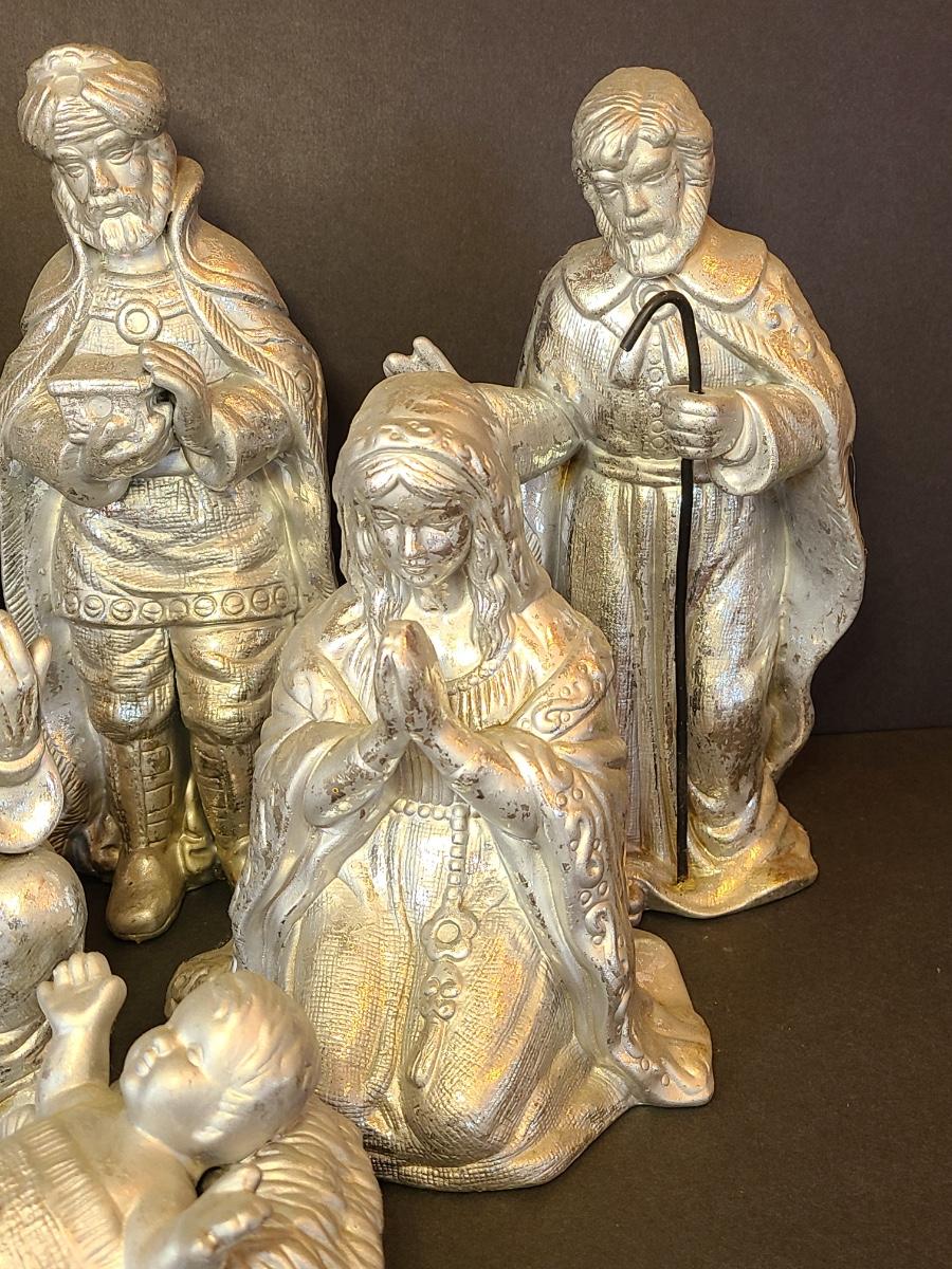 This is a lovely set by Department 56. This is silver in color and shines with a foil overlay in sections to give it dimension. It does not come with a box, if we do find one, we will add. Please see the measurements, it is larger than it appears. Please see all pictures as they are the best representation of the items. The pictures show condition, measurements if taken, and what is included in the lot. Due to the large amount that we photograph and the time frame, we are not always able to take measurements. All items unless noted, are pre-owned and have been used. If you purchased furniture, you must bring help. We do not allow one person to carry large furniture out on their own. Bring help, tools and a truck for the safety of our client’s homes, and your personal safety. Any damages that result to the property including walls, and floors due to moving of the furniture will be charged to the buyer. Company policy. Thank you.