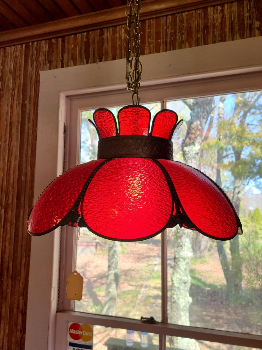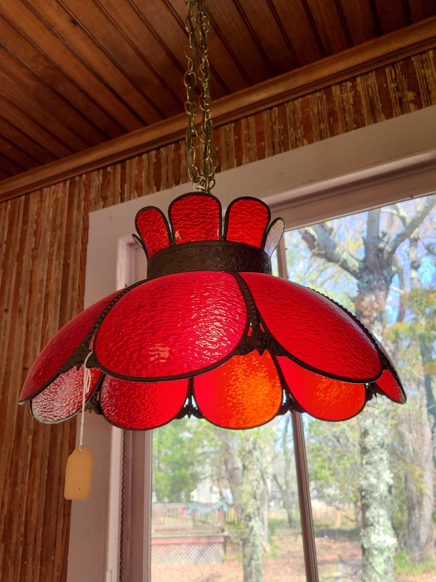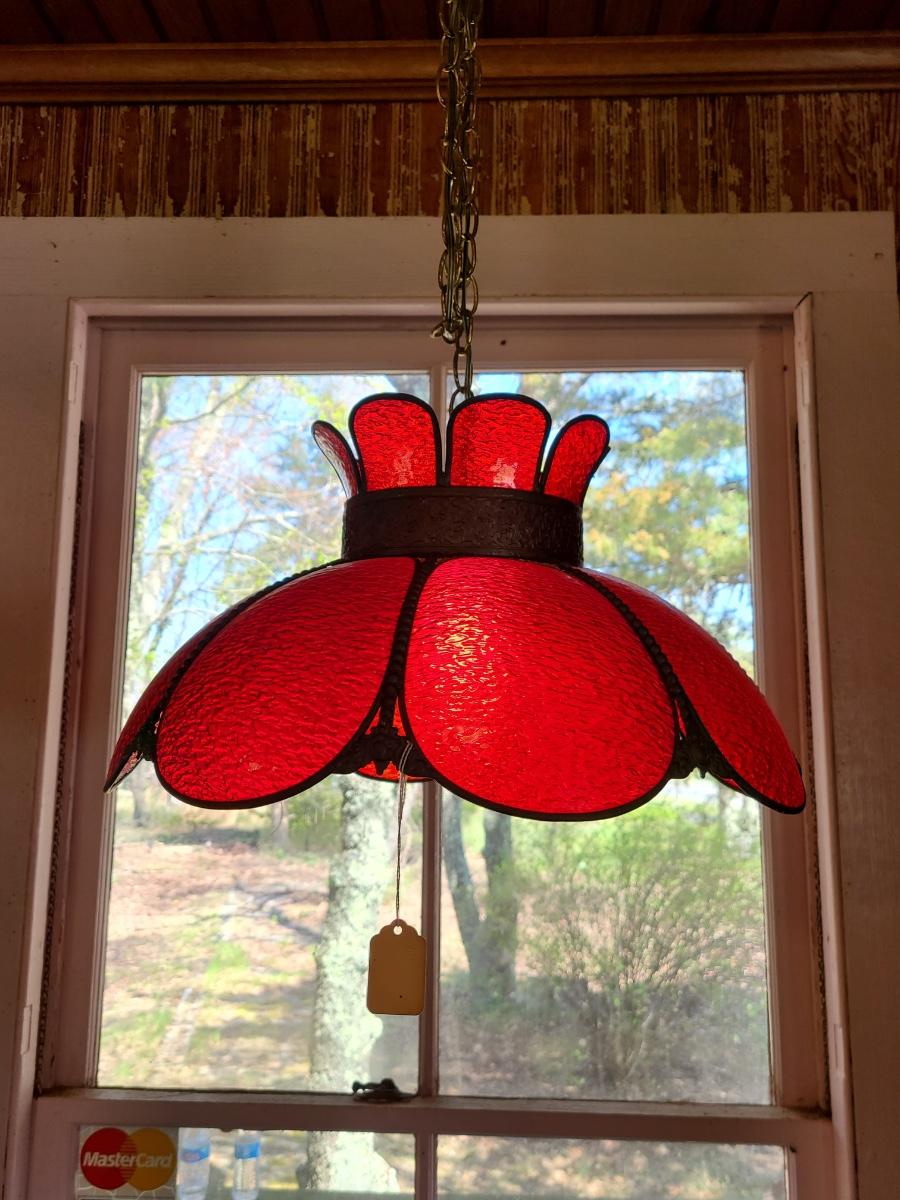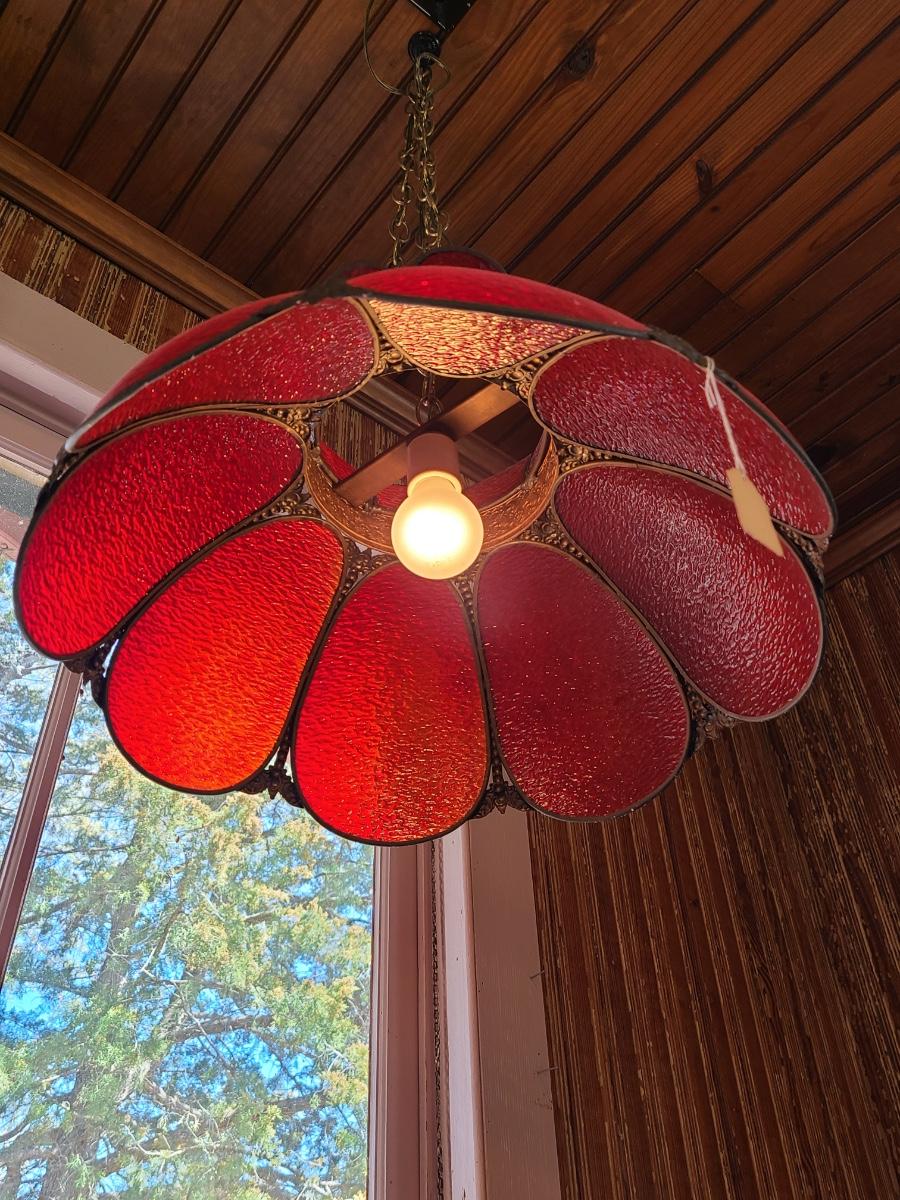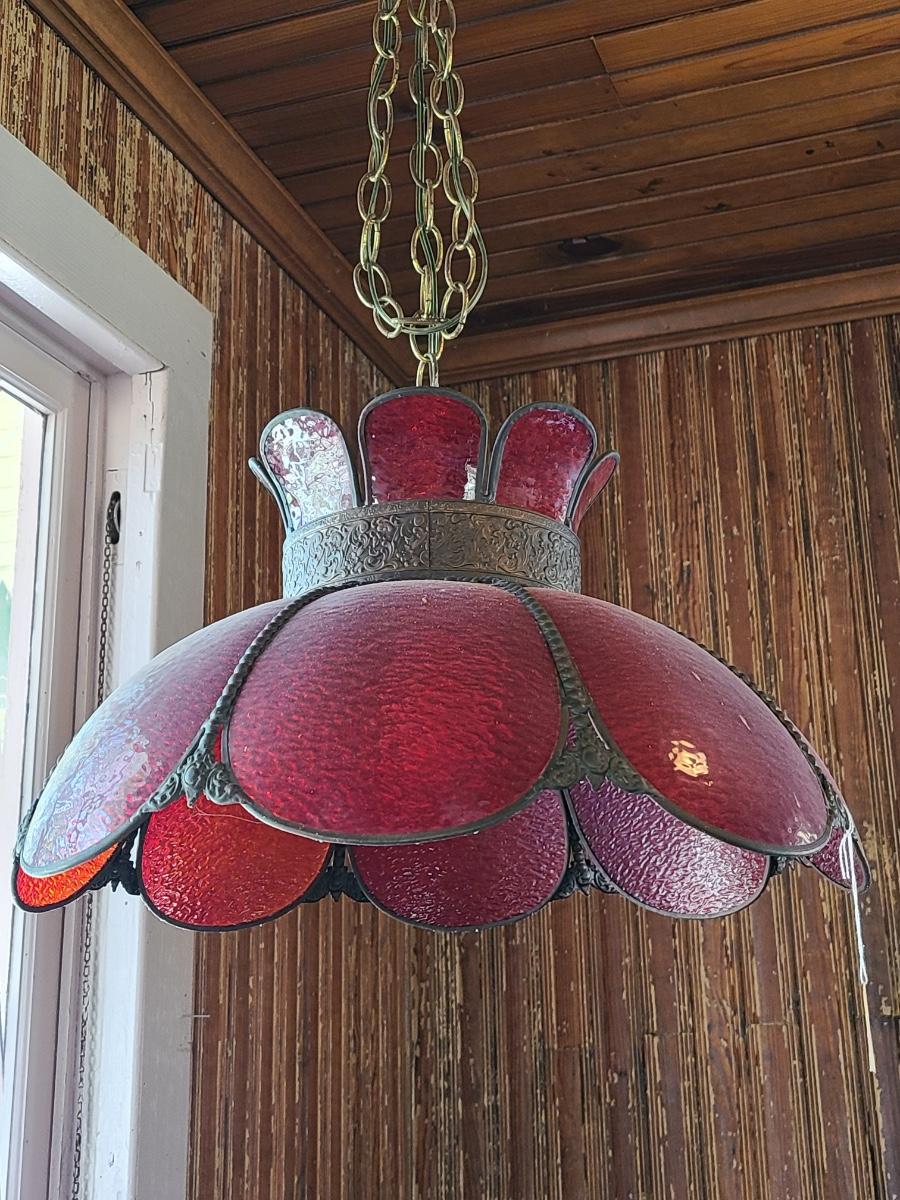 LOT 25: Vintage/MCM Red Hanging Swag Glass Parlor Light