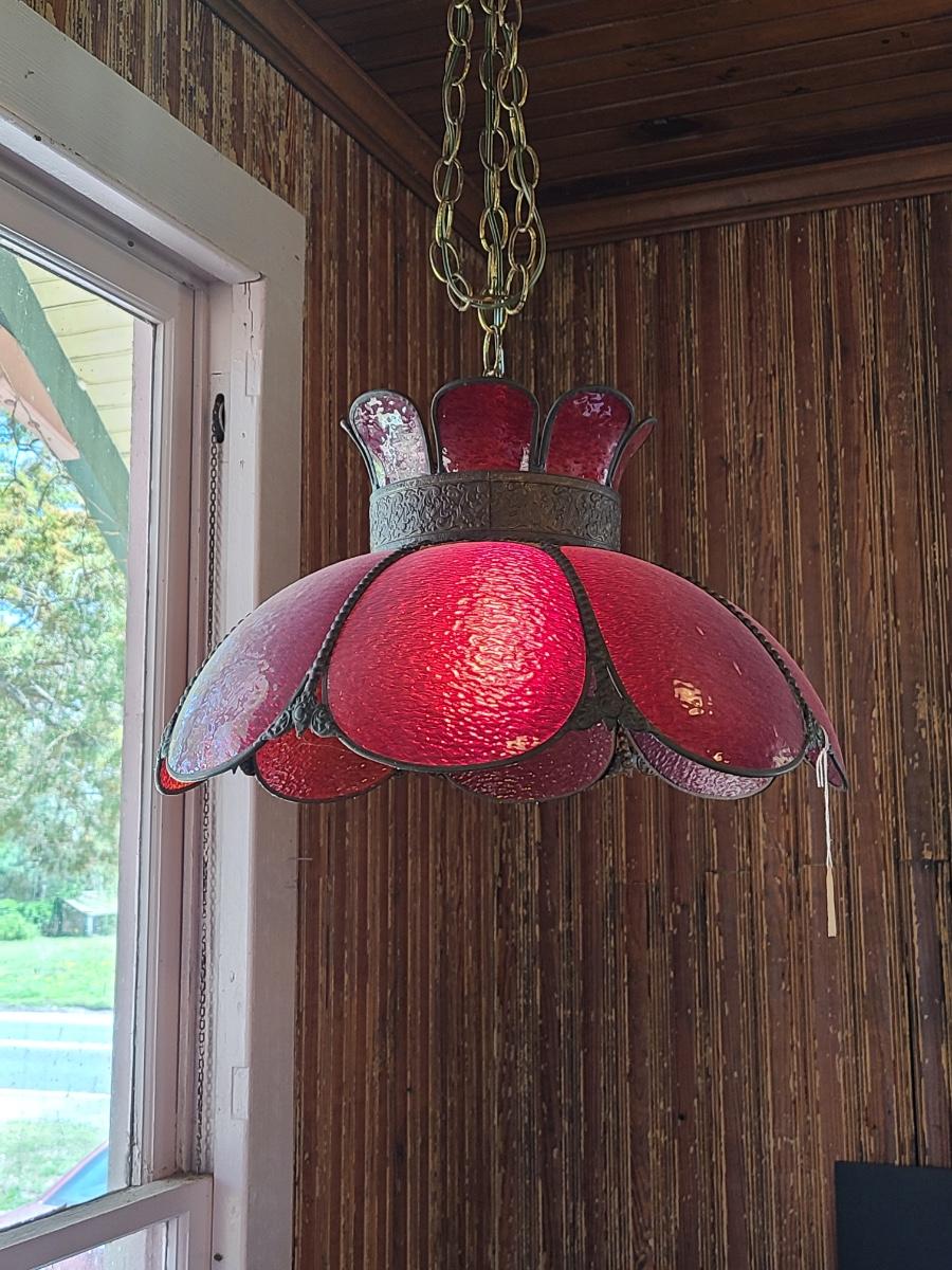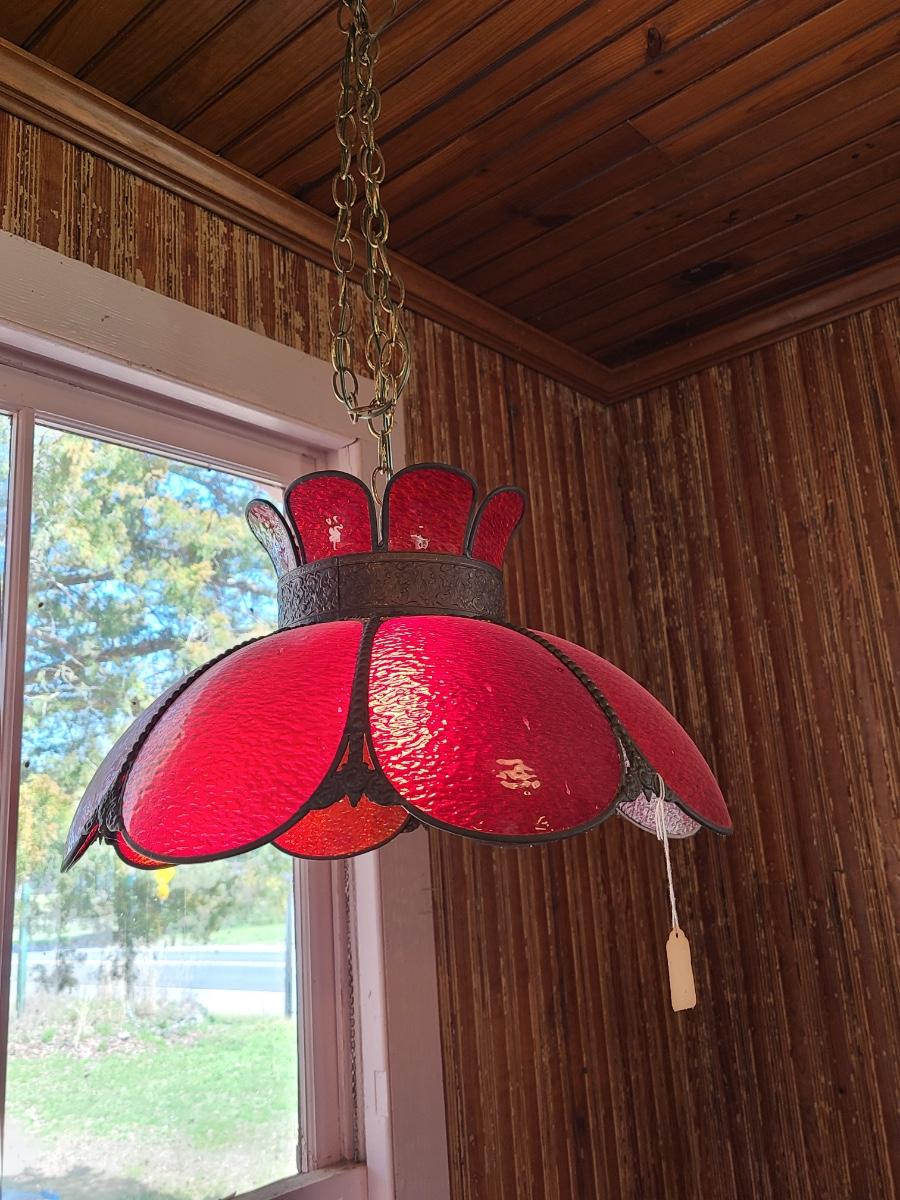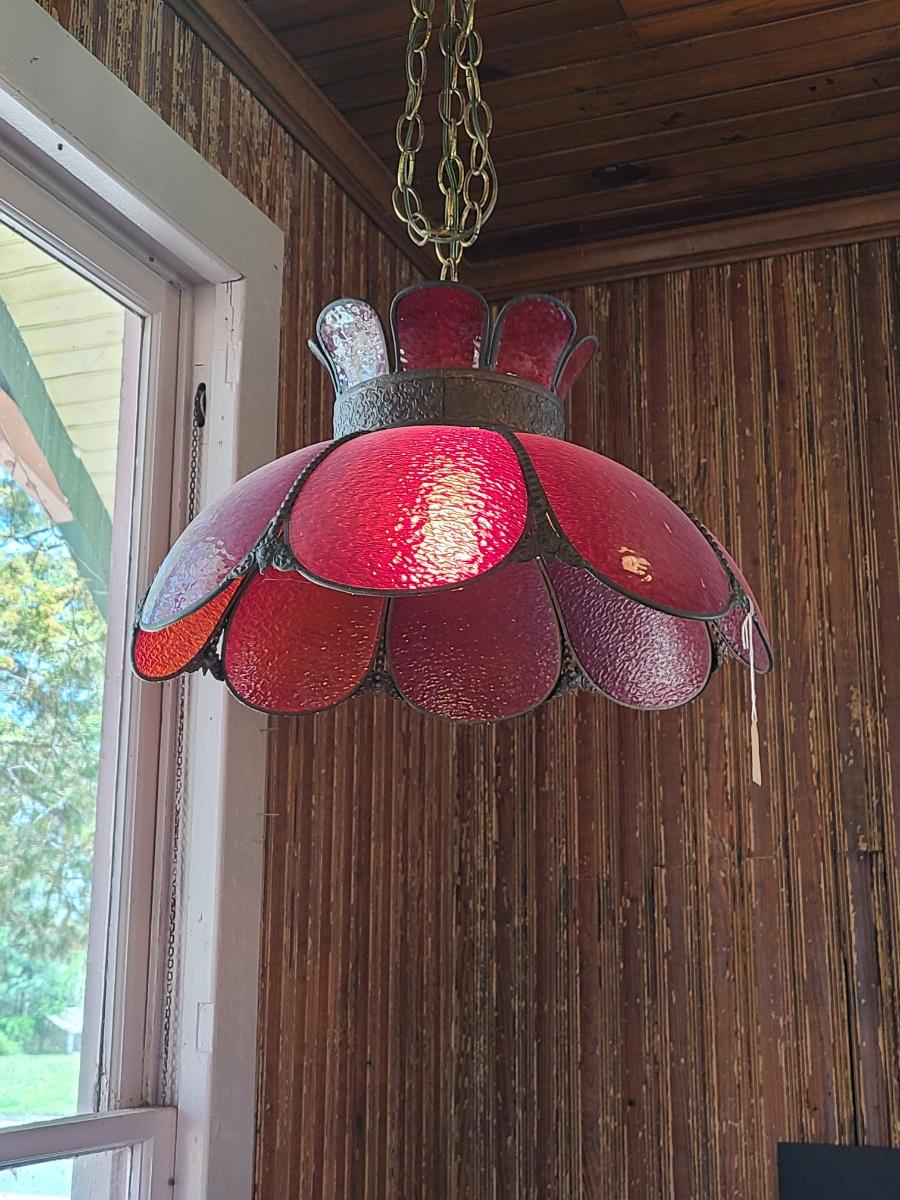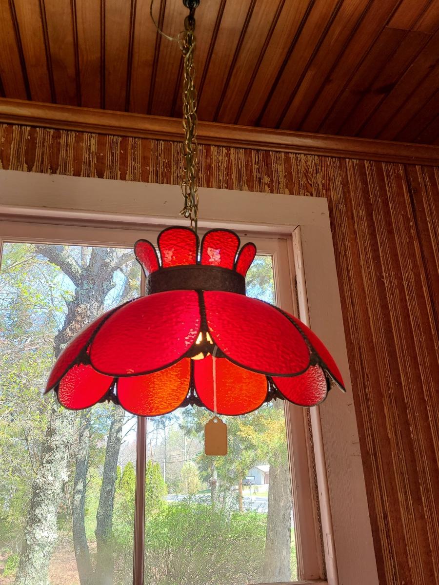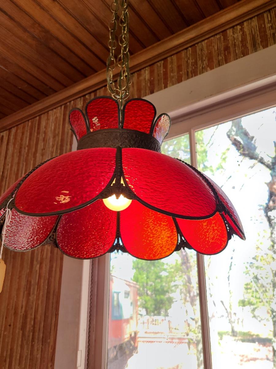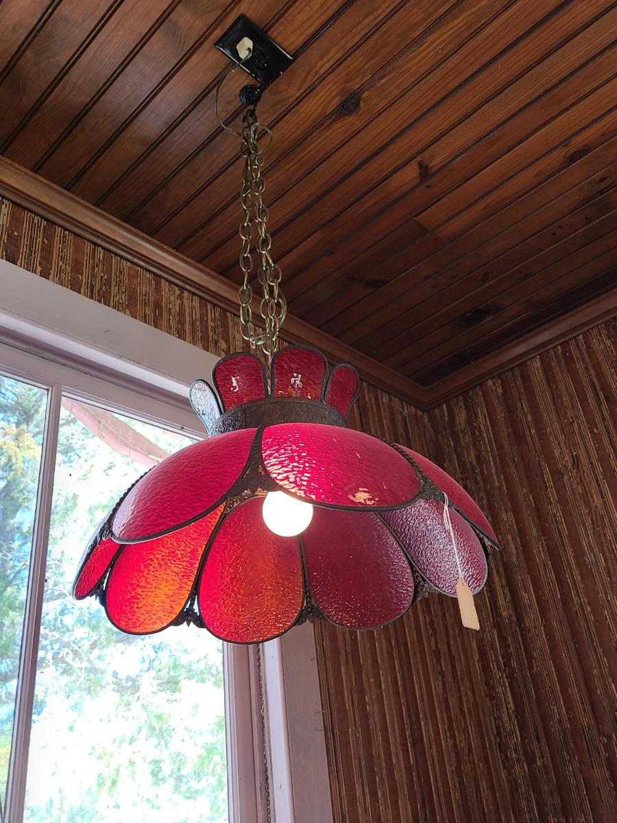 LOT 25: Vintage/MCM Red Hanging Swag Glass Parlor Light