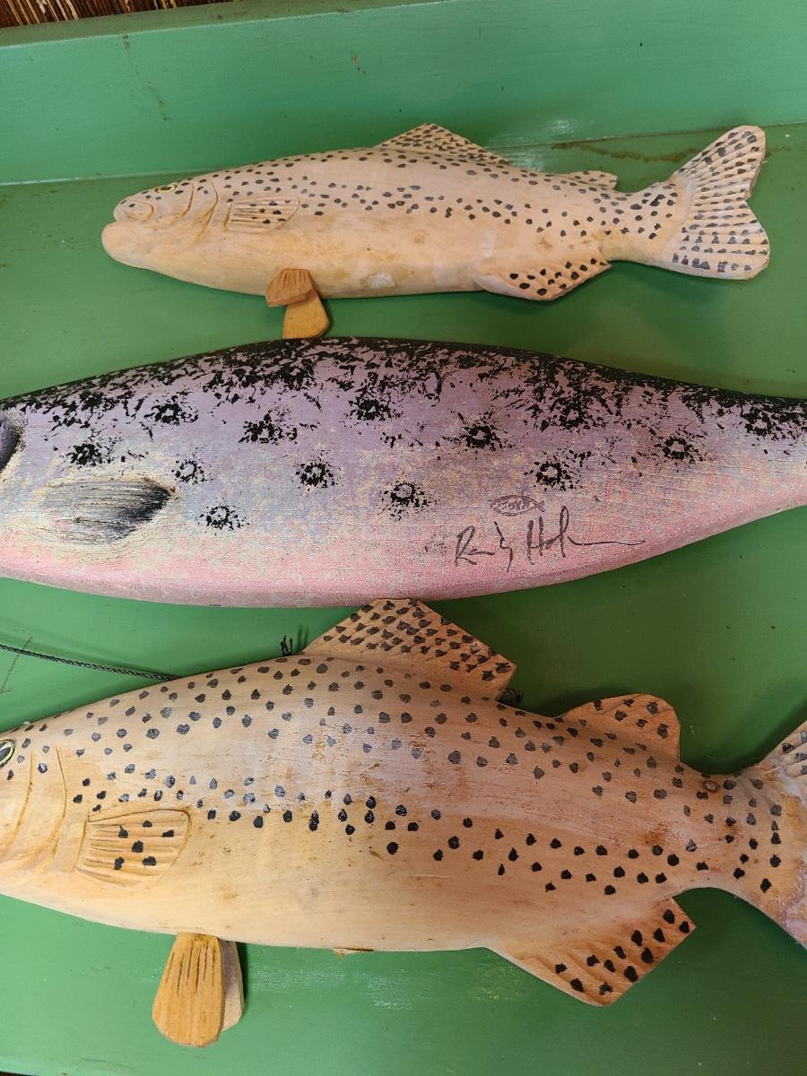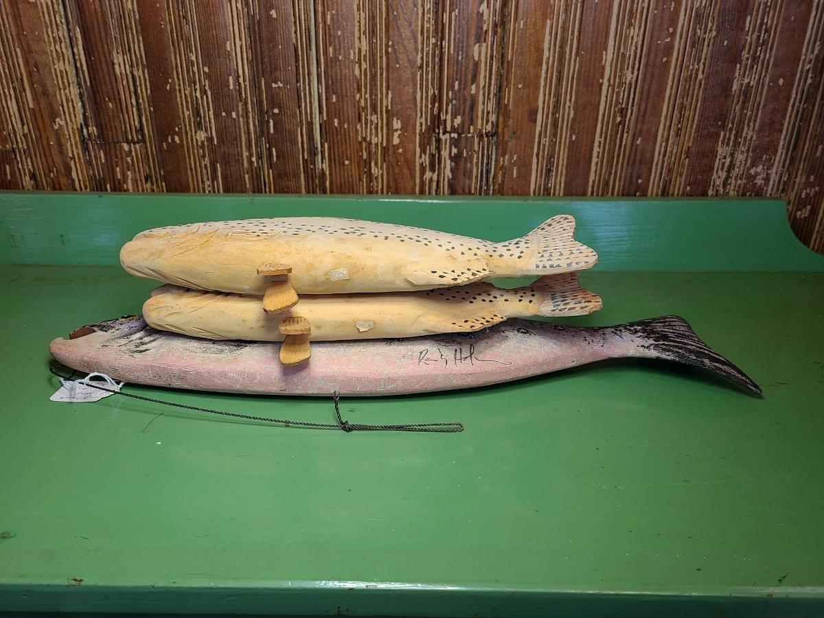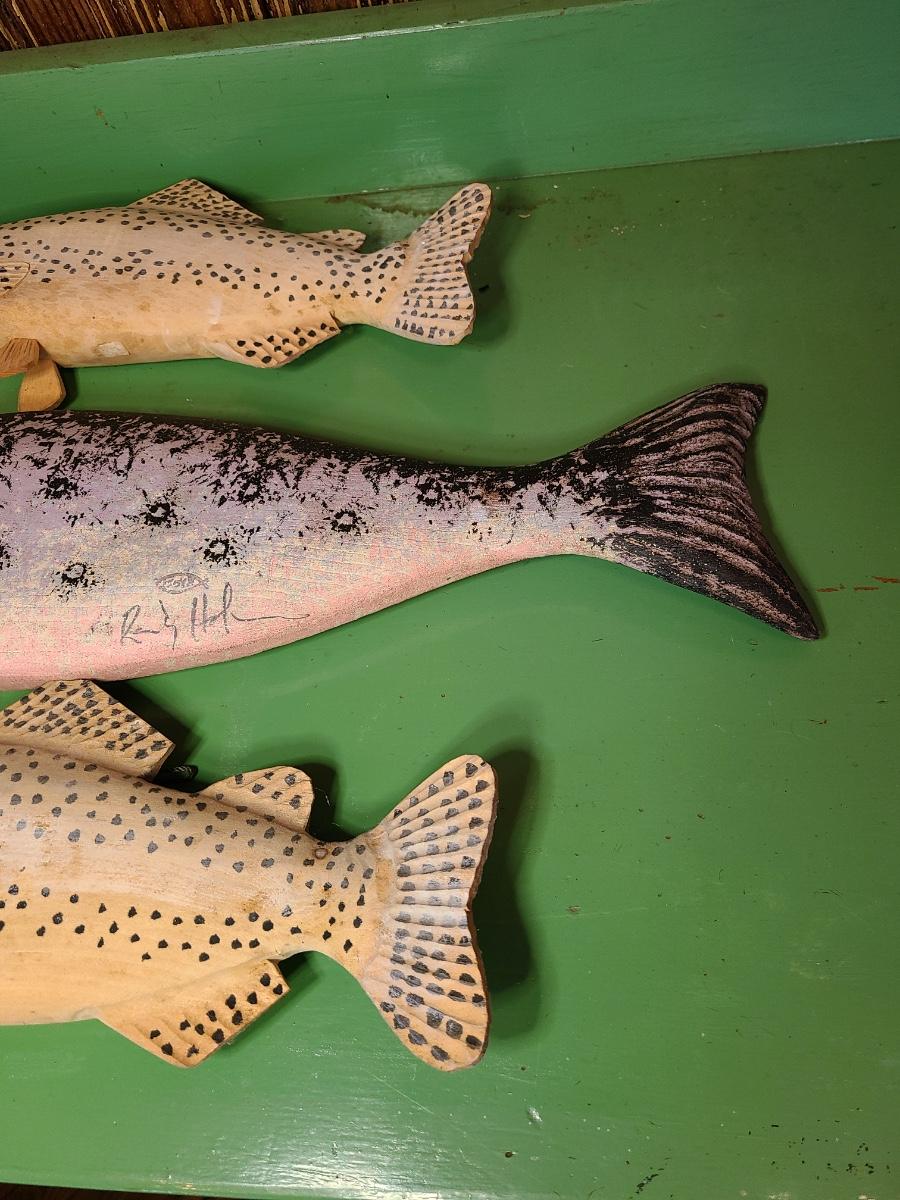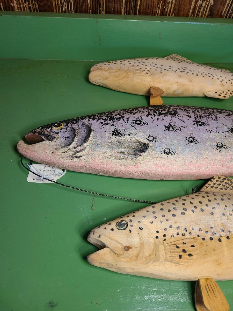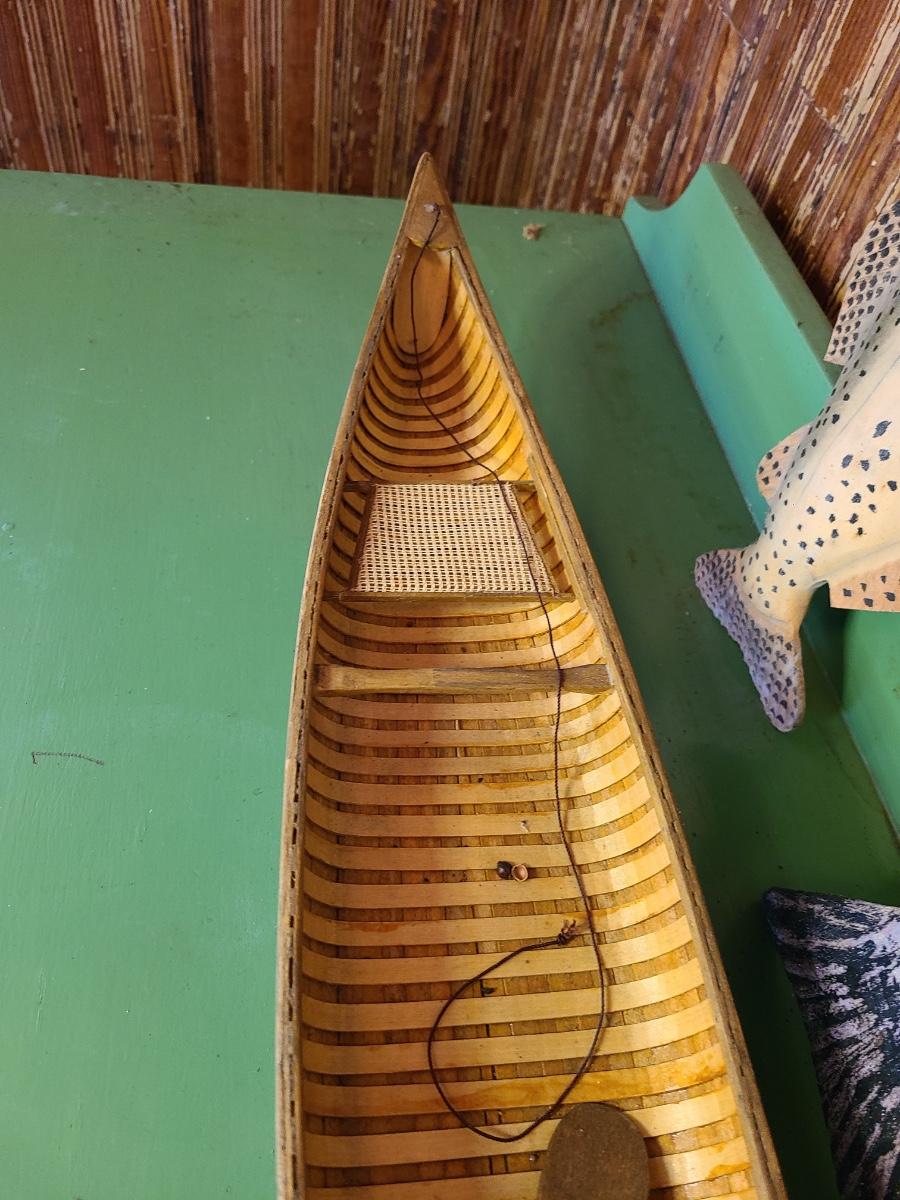 The craftsmanship on the canoe is amazing. Comes with two paddles and stand. The fish were hanging on the wall and looked so cool together. The larger fish is artist signed. It does not come with the paperwork that is shown, that is just to give you the details of the artist. That paperwork is attached to another of the same kind of fish in a different auction. Please see all pictures as they are the best representation of the items. The pictures show condition, measurements if taken, and what is included in the lot. Due to the large amount that we photograph and the time frame, we are not always able to take measurements. All items unless noted, are pre-owned and have been used. If you purchased furniture, you must bring help. We do not allow one person to carry large furniture out on their own. Bring help, tools and a truck for the safety of our client’s homes, and your personal safety. Any damages that result to the property including walls, and floors due to moving of the furniture will be charged to the buyer. Company policy. Thank you.