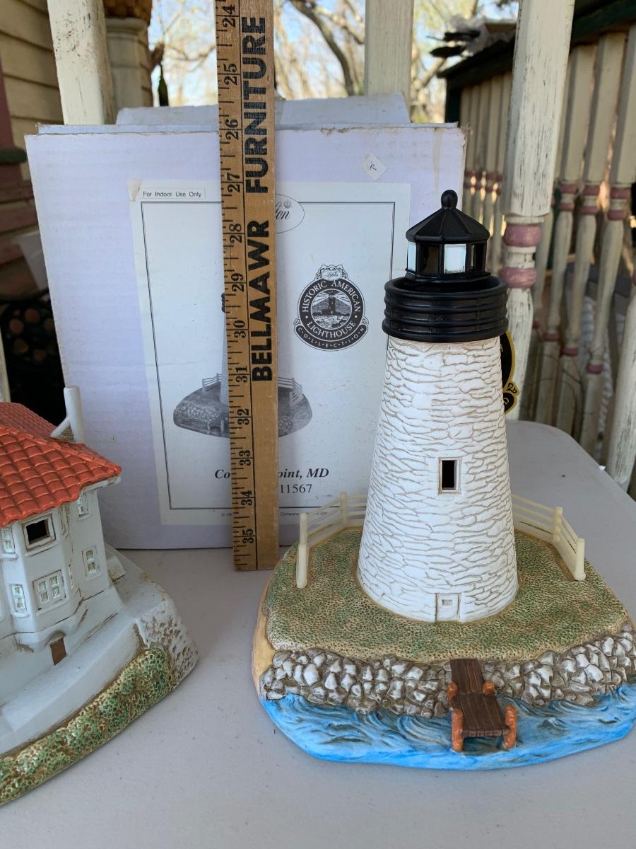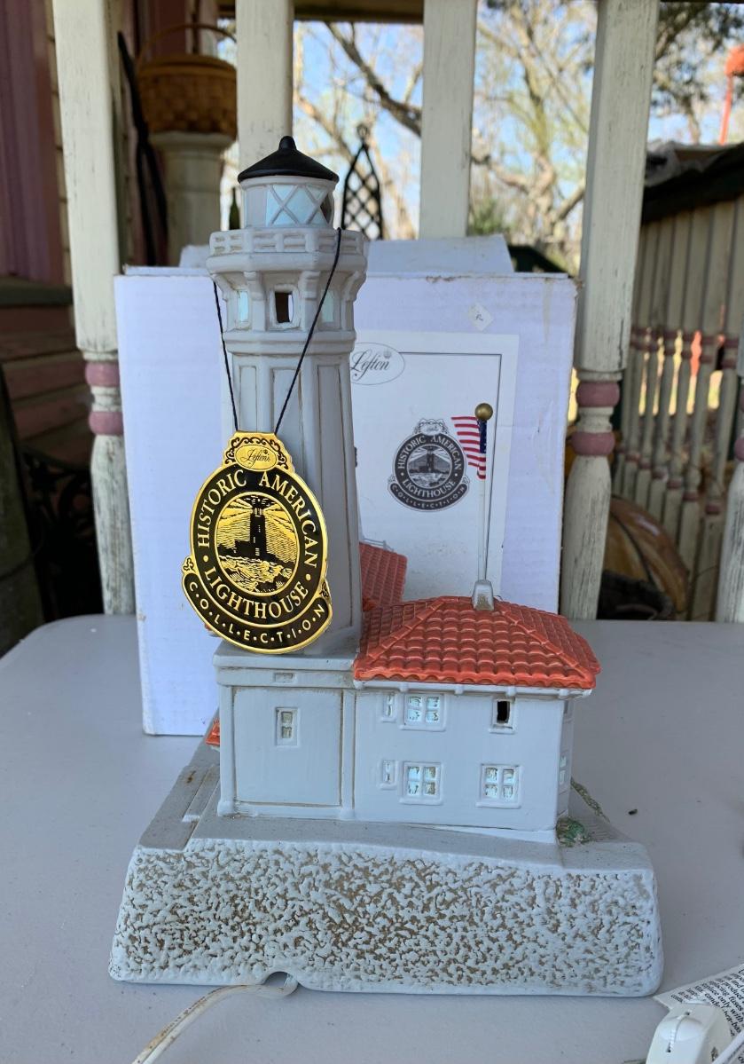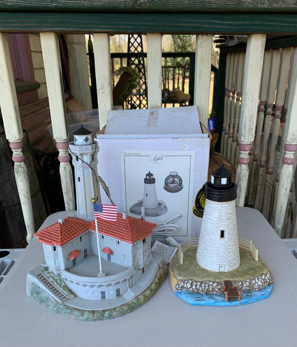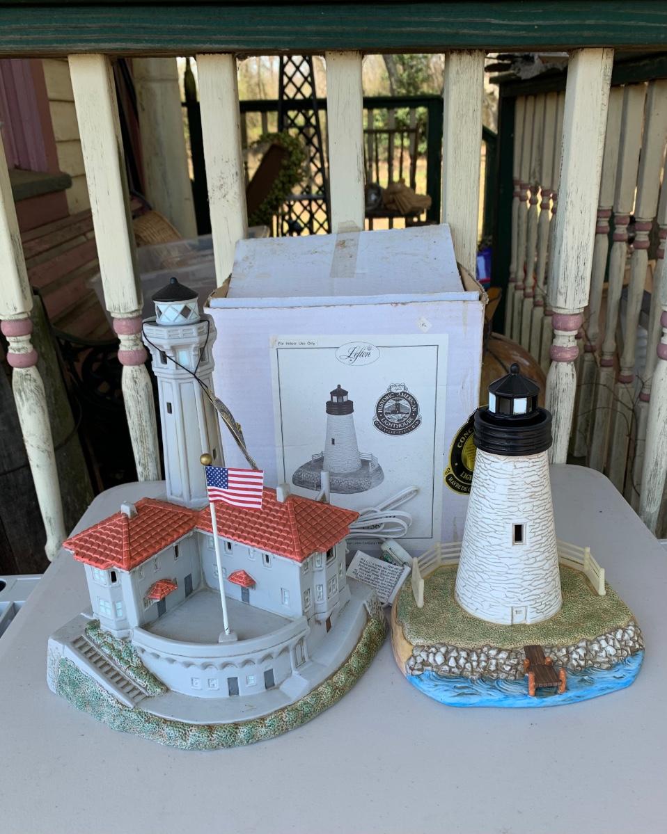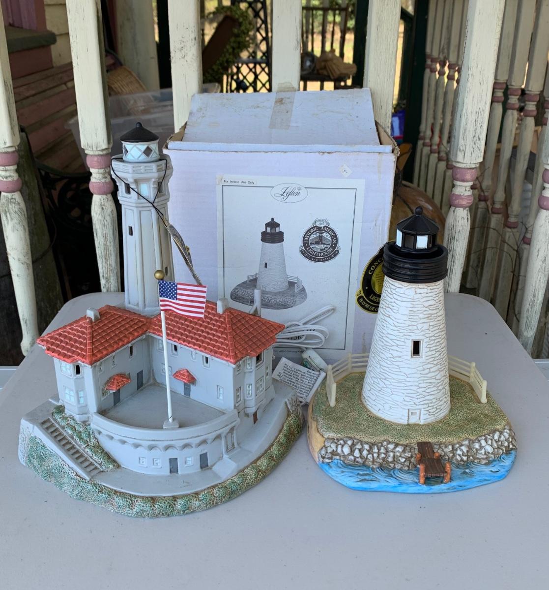 Collection of 2 Lefton Historic Light Houses one with box. All boxes show signs of long term storage and may/may not have conditon issues.