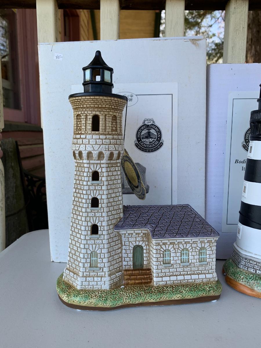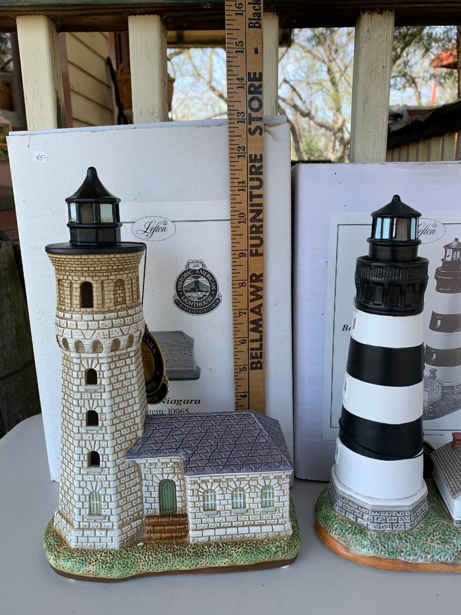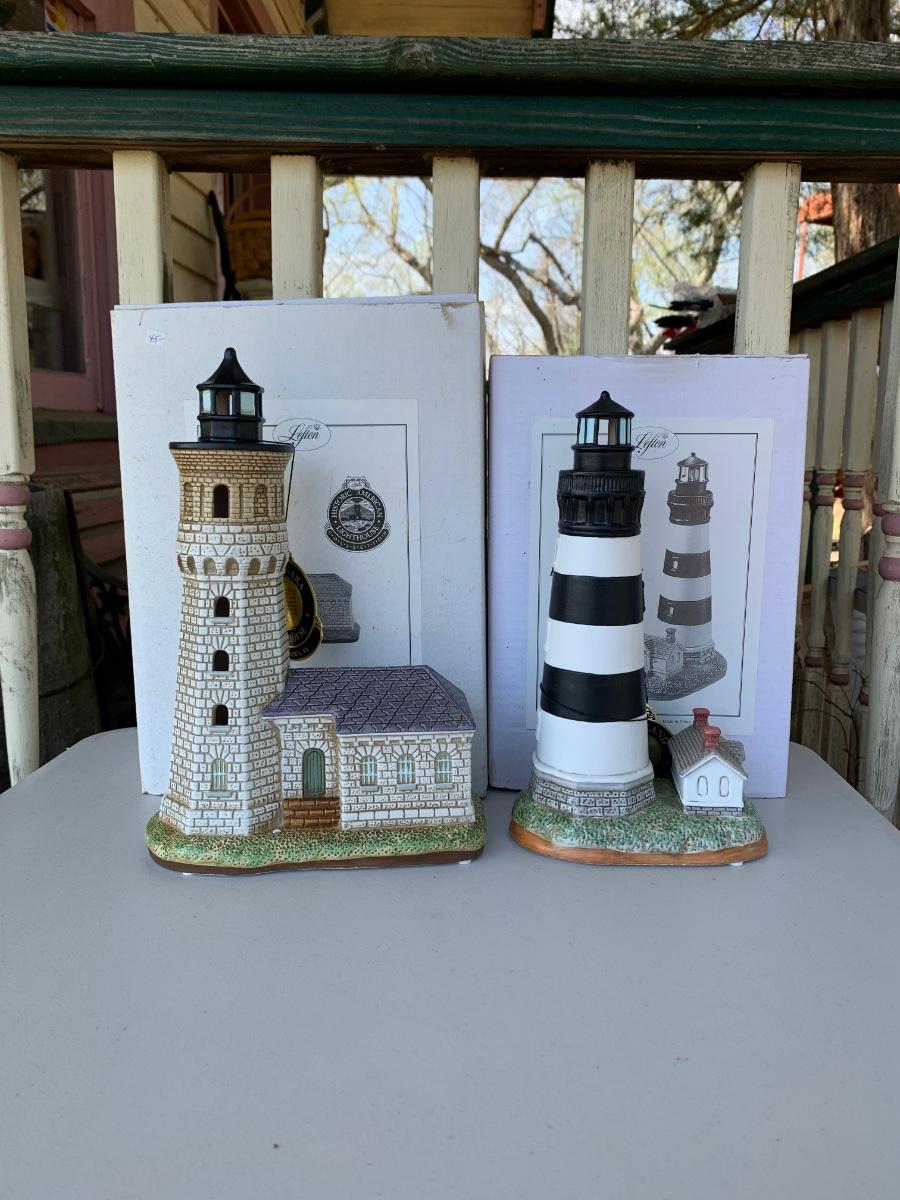 Collection of 2 Lefton Historic Light Houses with boxes. All boxes show signs of long term storage and may/may not have conditon issues.