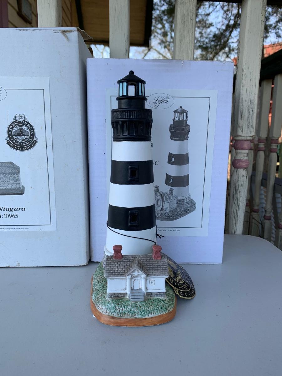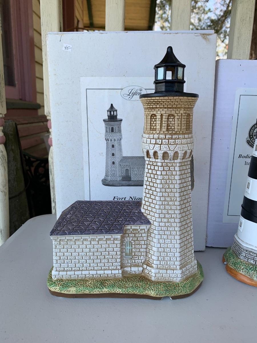 LOT 39R: Light-Up Lefton Historic Lighthouses:  Bodies Island, NC & Fort Niagara, NY (w/boxes)