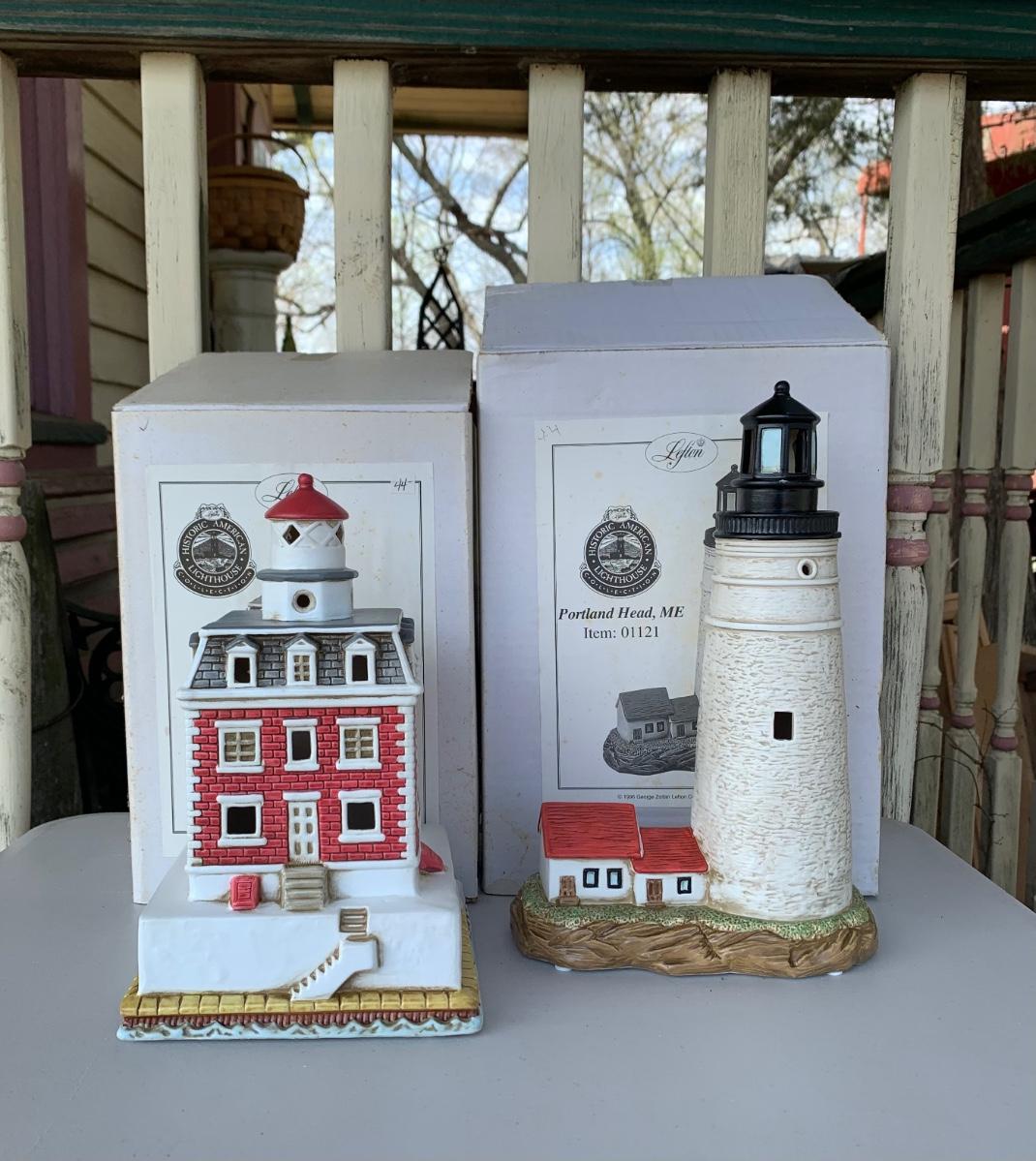 Collection of 2 Lefton Historic Light Houses with boxes. All boxes show signs of long term storage and may/may not have conditon issues. Please see all pictures as they are the best representation of the items. The pictures show condition, measurements if taken, and what is included in the lot. Due to the large amount that we photograph and the time frame, we are not always able to take measurements. All items unless noted, are pre-owned and have been used. If you purchased furniture, you must bring help. We do not allow one person to carry large furniture out on their own. Bring help, tools and a truck for the safety of our client’s homes, and your personal safety. Any damages that result to the property including walls, and floors due to moving of the furniture will be charged to the buyer. Company policy. Thank you.