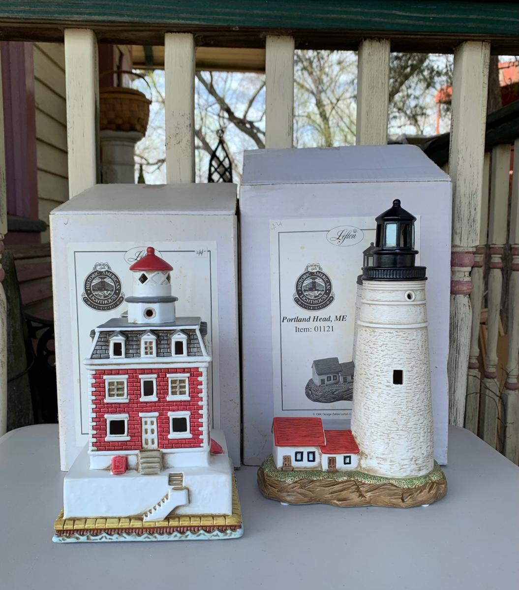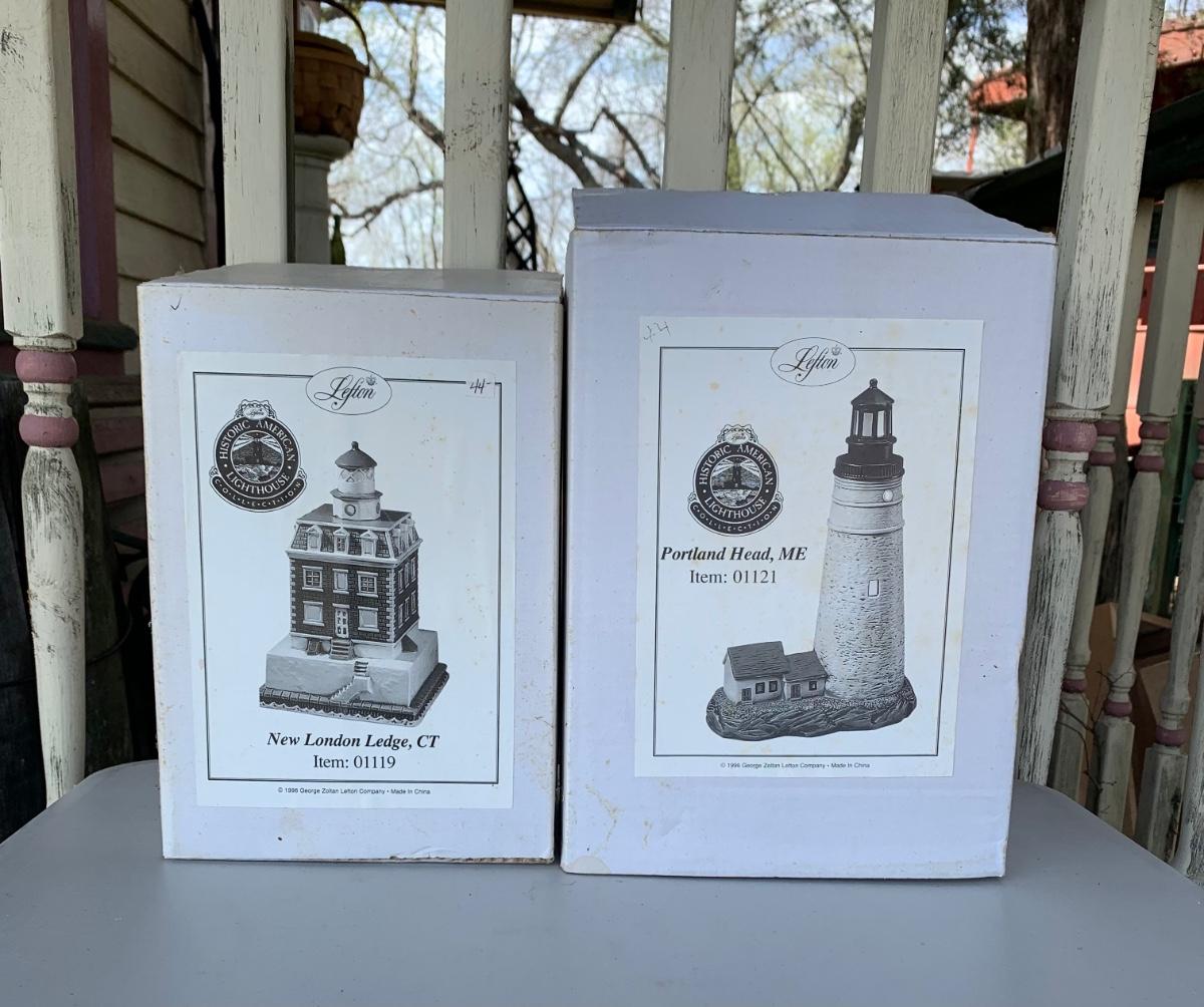 LOT 43R: Light-Up Lefton Historic Lighthouse Collection: New London Ledge, CT. &  Portland Head, ME
