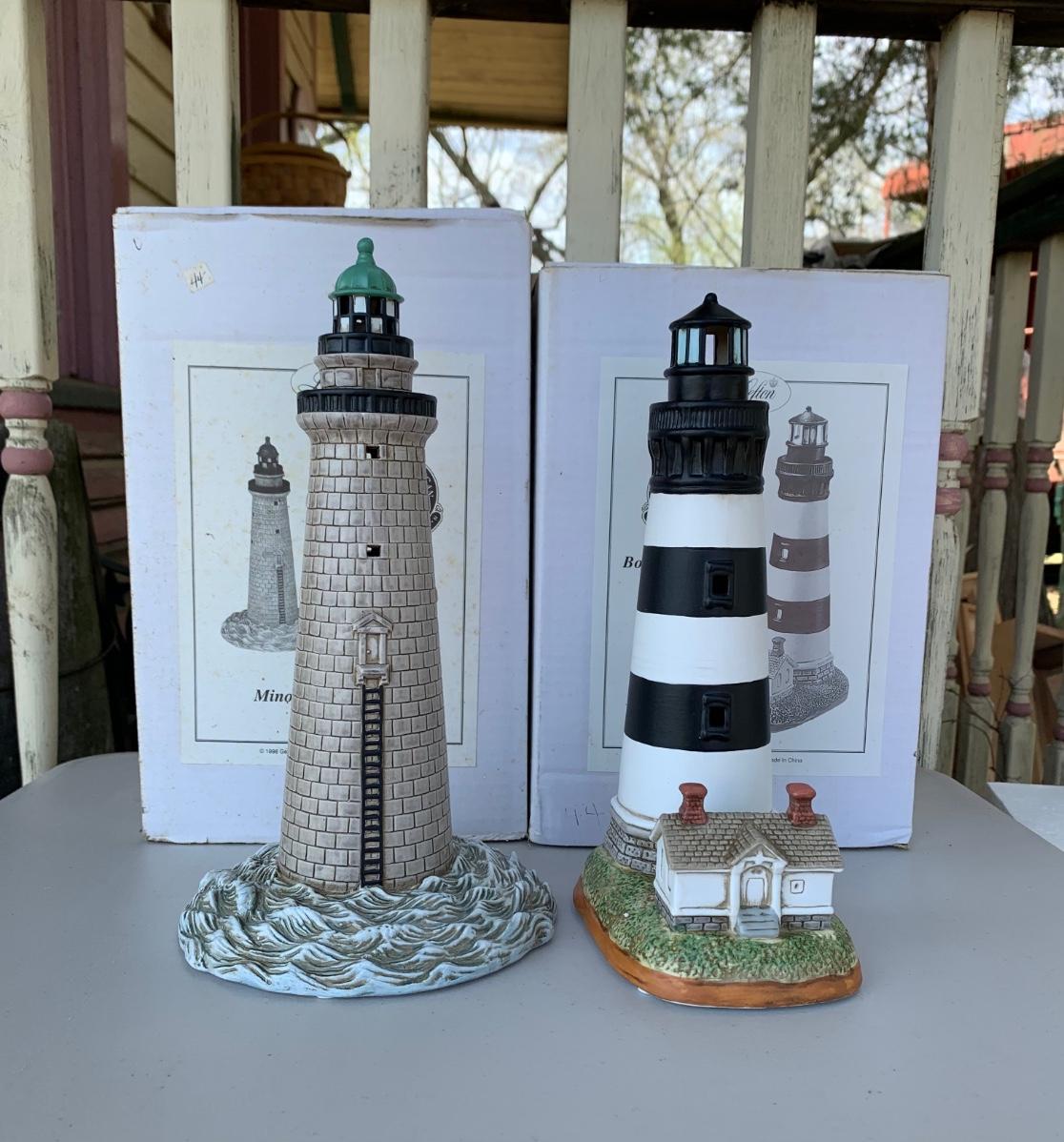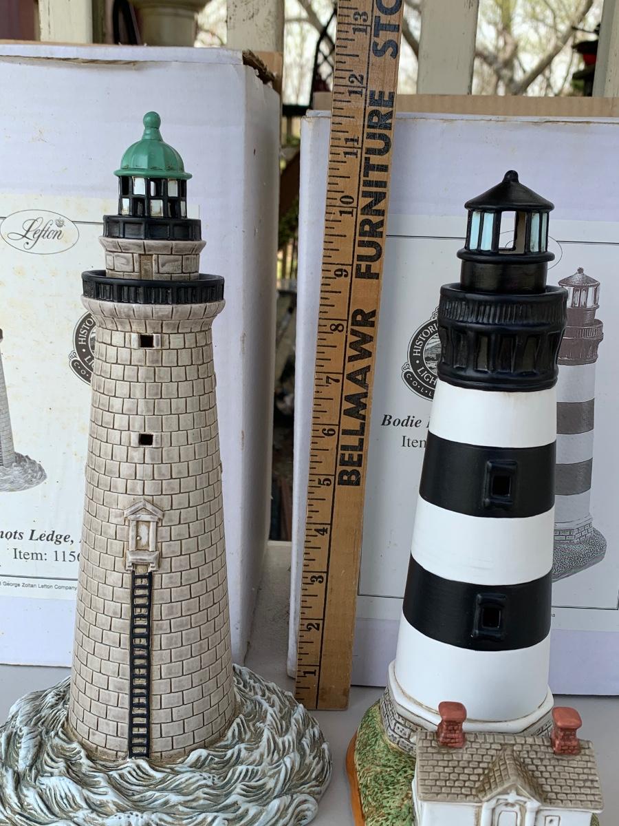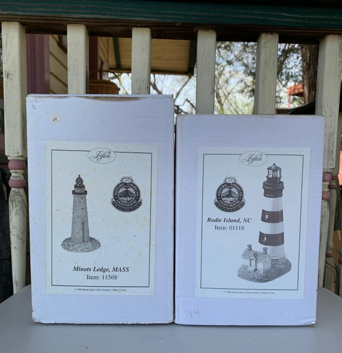 Collection of 2 Lefton Historic Light Houses with boxes. All boxes show signs of long term storage and may/may not have conditon issues.