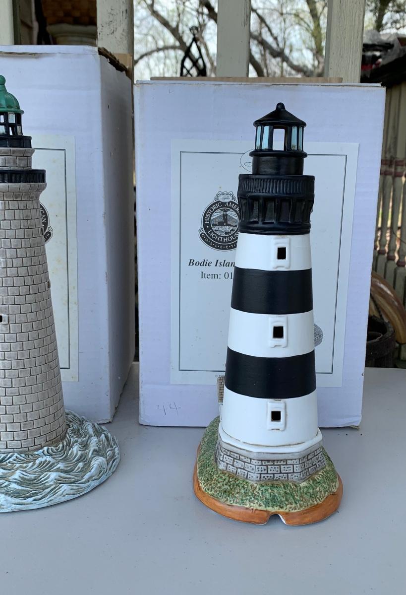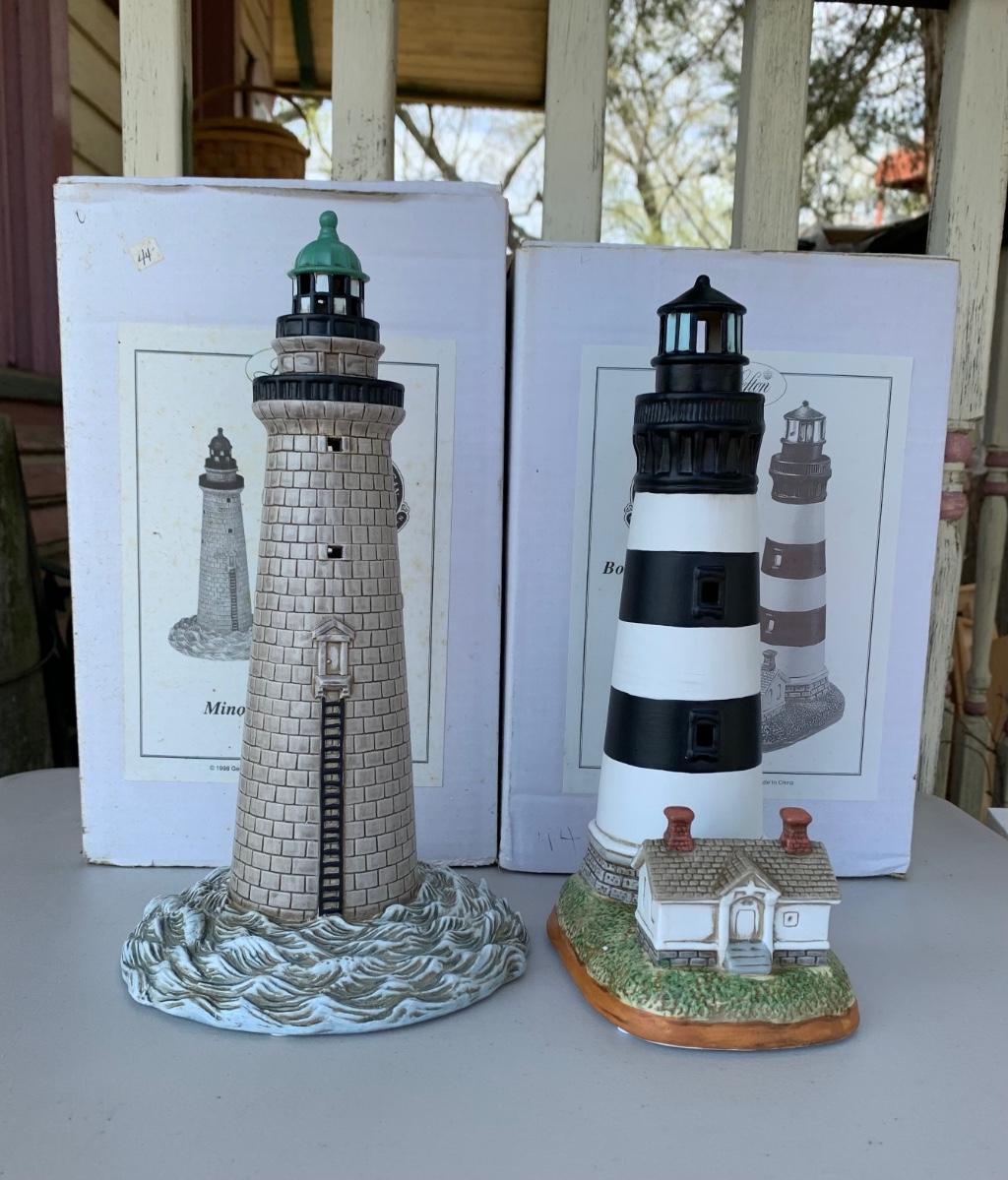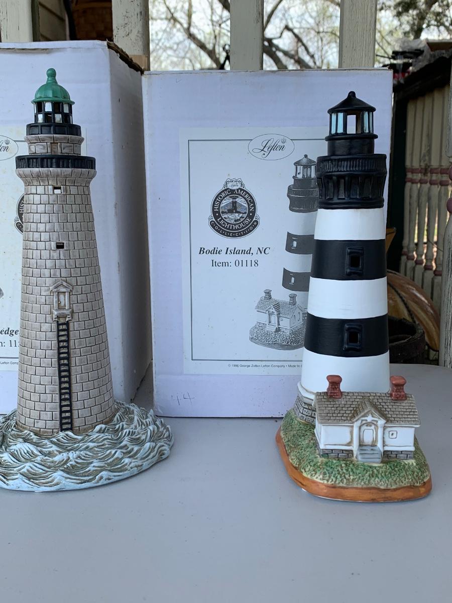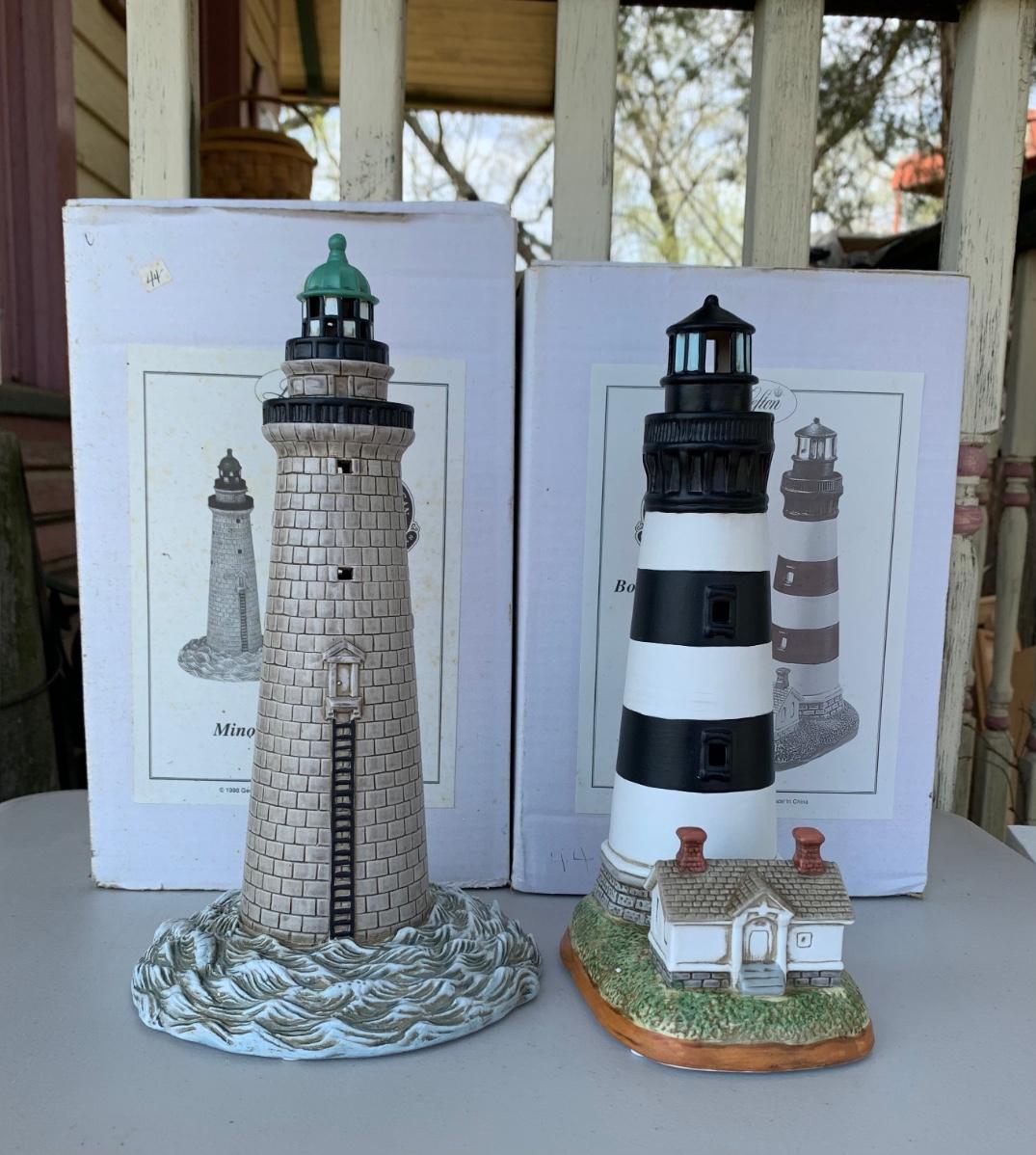 Collection of 2 Lefton Historic Light Houses with boxes. All boxes show signs of long term storage and may/may not have conditon issues.