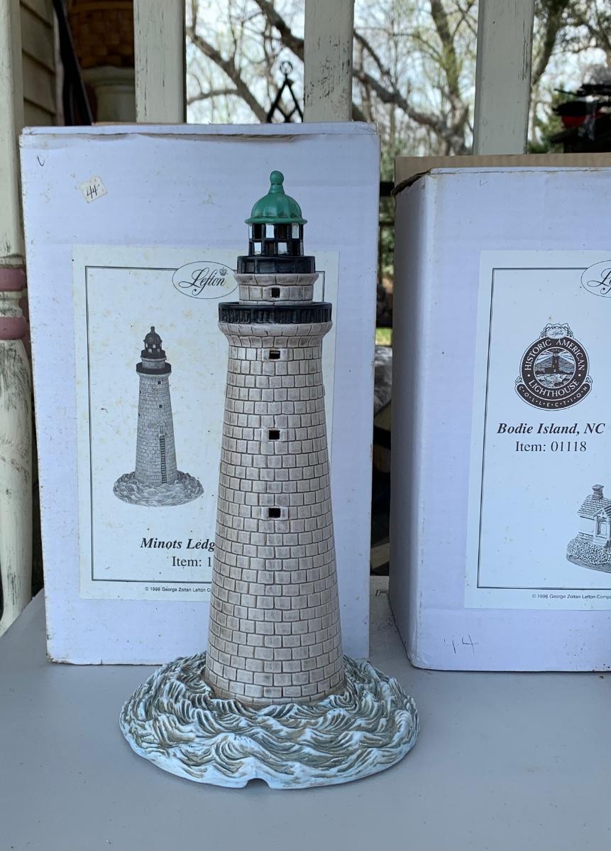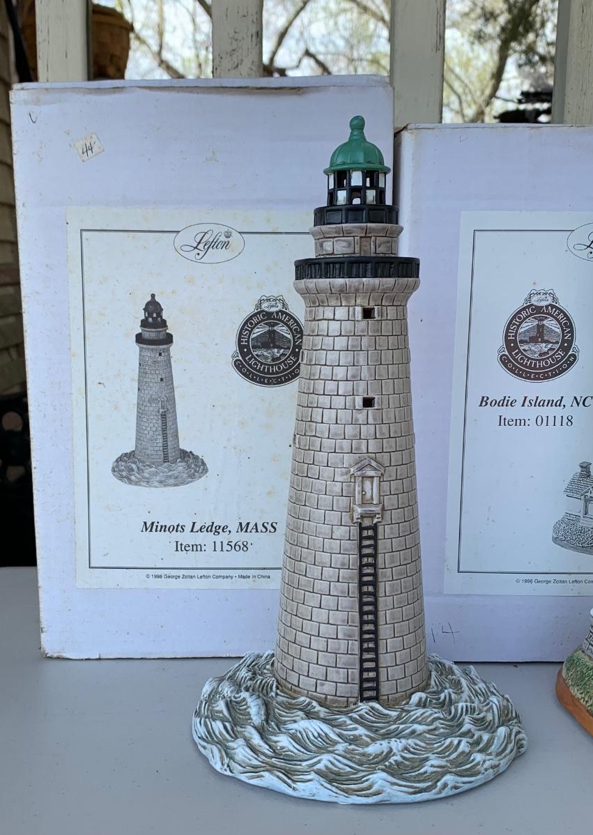LOT 44R: Light=Up Lefton Historic Lighthouse Collection: Minots Ledge, MASS & Bodie Island, NC
