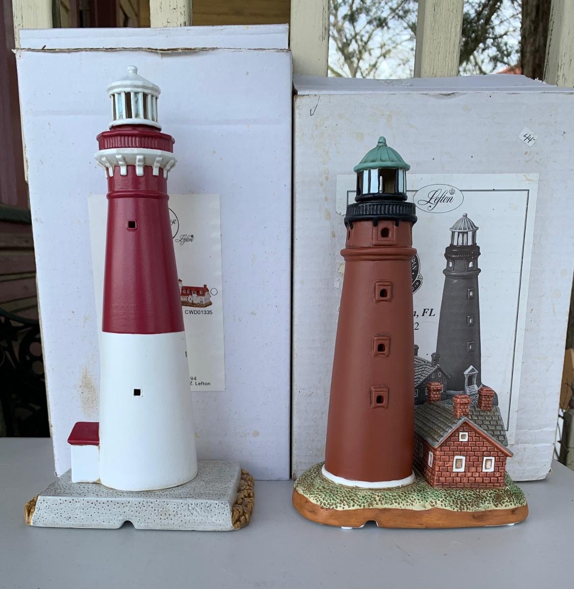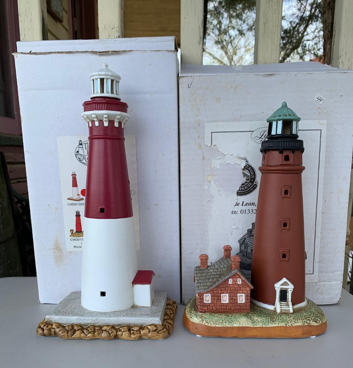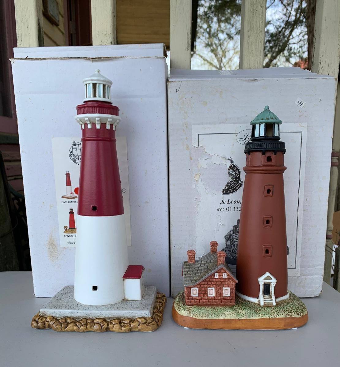 LOT 47R: Light-Up Lefton Lighthouse Collectibles: Ponce De Leon Inlet & Barnegat w/Boxes