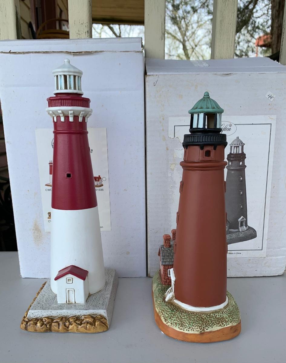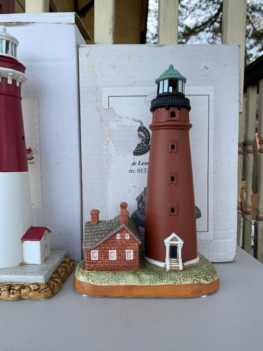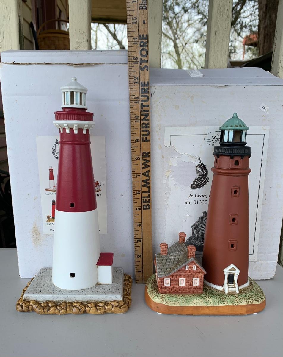LOT 47R: Light-Up Lefton Lighthouse Collectibles: Ponce De Leon Inlet & Barnegat  w/Boxes