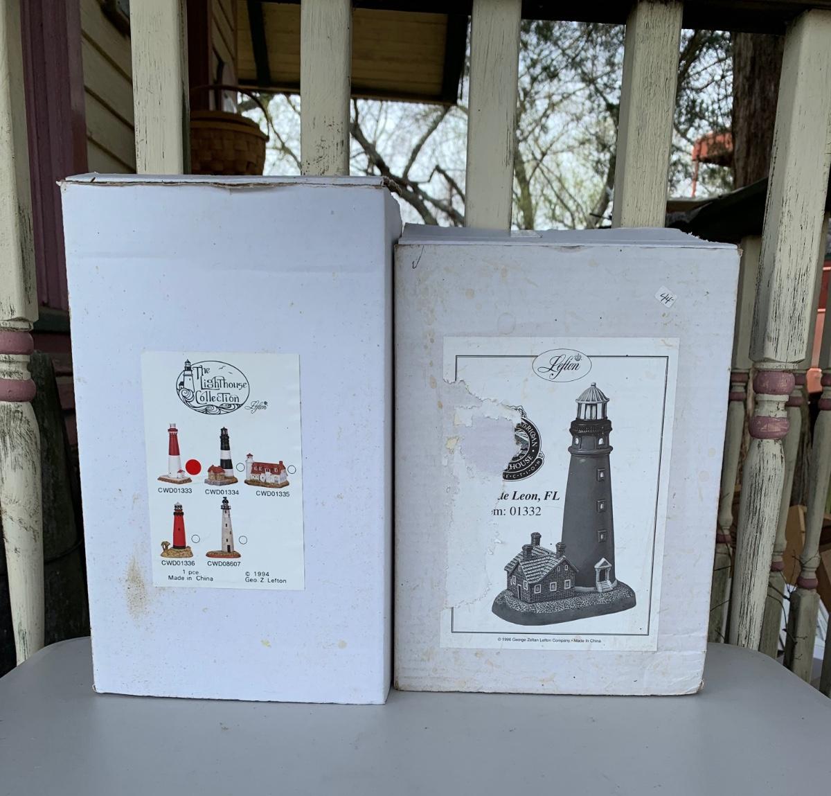 Collection of 2 Lefton Light Houses with boxes. All boxes show signs of long term storage and may/may not have conditon issues.